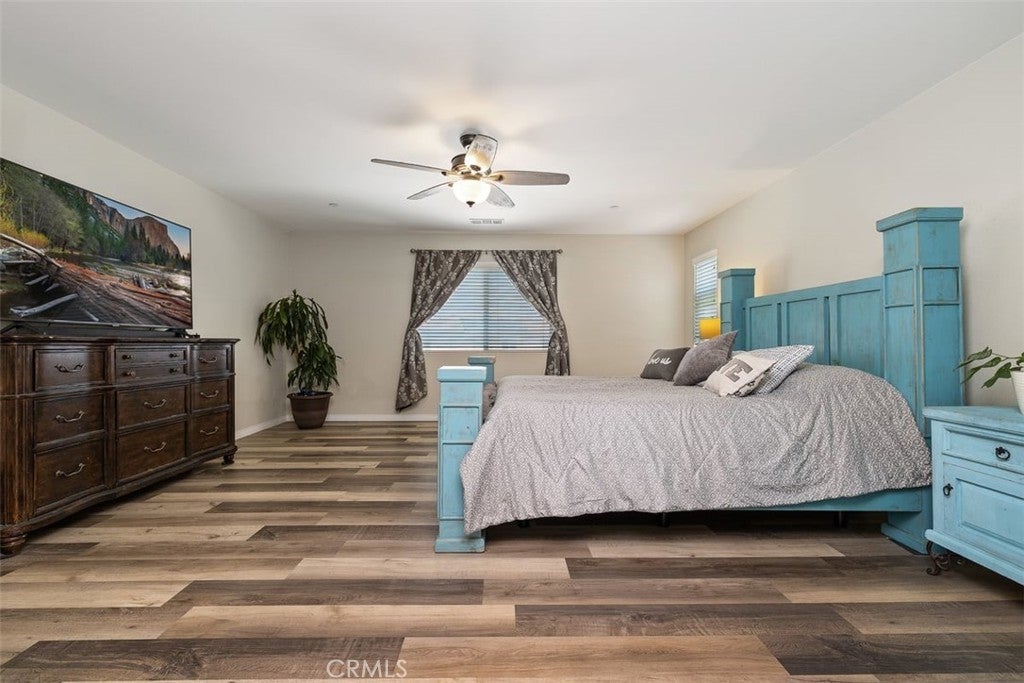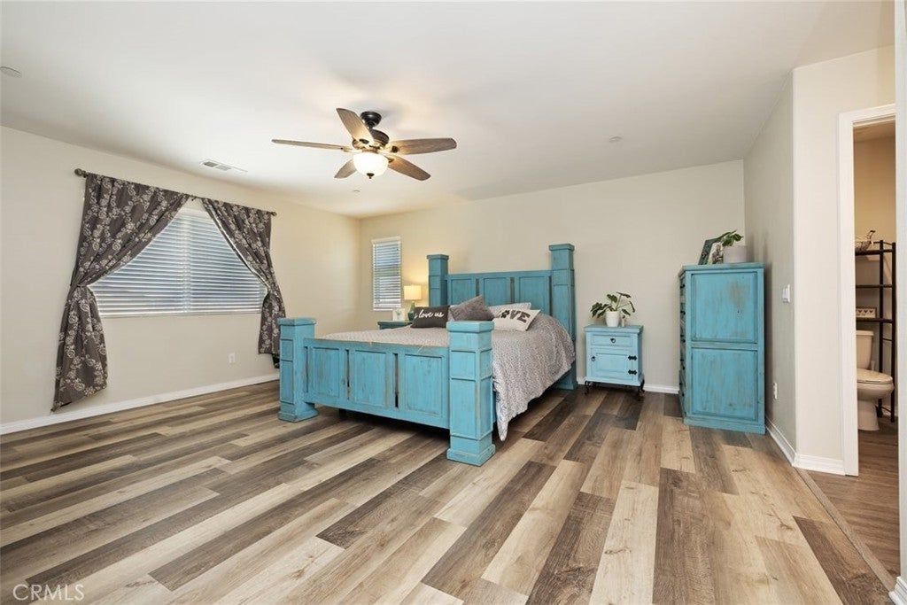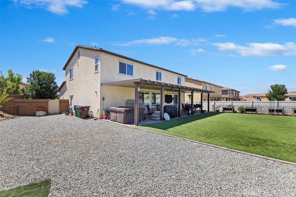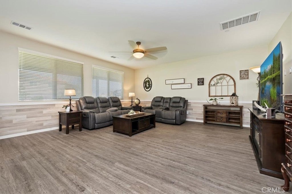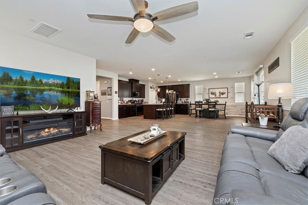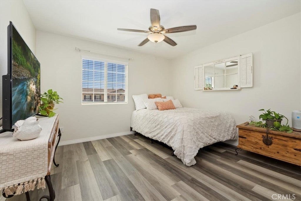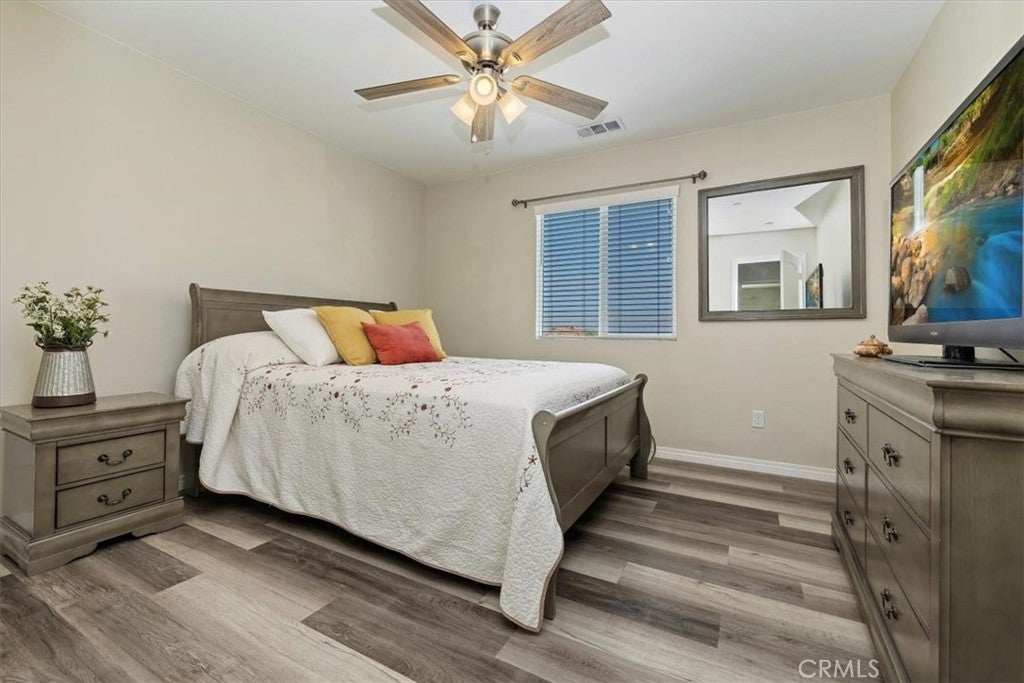 **Like a Model Home... this Wonderfully Upgraded 5 Bed/3 Bath Home is located on a quiet interior street within the Exclusive Gated Olivewood Community. *****FHA Loan is assumable and at a very low interest rate of 3.25%! Buyers may also qualify for a 15k down payment assistance loan that is forgivable over 5 years.***** The Most Desirable floorplan in the Neighborhood, this home features a Sought After First Floor Bedroom and Full Bath. Very Open Layout and High Ceilings and Natural Light create a comfortable space in the Family Room, Dining and Kitchen that feels Expansive! The Gorgeous Kitchen has been Upgraded with a Stunning Granite counter tops, Beautiful Stainless-Steel appliances, Walk-In Pantry and Large Island with Sink and additional Seating that Opens to the Family Room. Beautiful Laminate and Fresh Paint throughout the Home! Includes a Quiet Cool whole house fan that can dramatically reduce your A/C usage, plus fire sprinkler system and rain sensor sprinkler system cut-off. The spacious backyard is significantly larger than surrounding homes. It includes a Very Large Covered Alumawood Patio, Potential RV Parking, Tough Shed and High-End Hot Tub included. The Massive yard is lined with dozens of Fruit Trees, very large Artificial Grass space with built in drains... Perfect Space to Entertain all your Friends and Family! Olivewood Community features Amazing Amenities like Clubhouse, Pool, Gym, Parks, etc. Located minutes off the 10 & 60 FWY for and excellent commute location. Come Take a Look and Fall in Love!