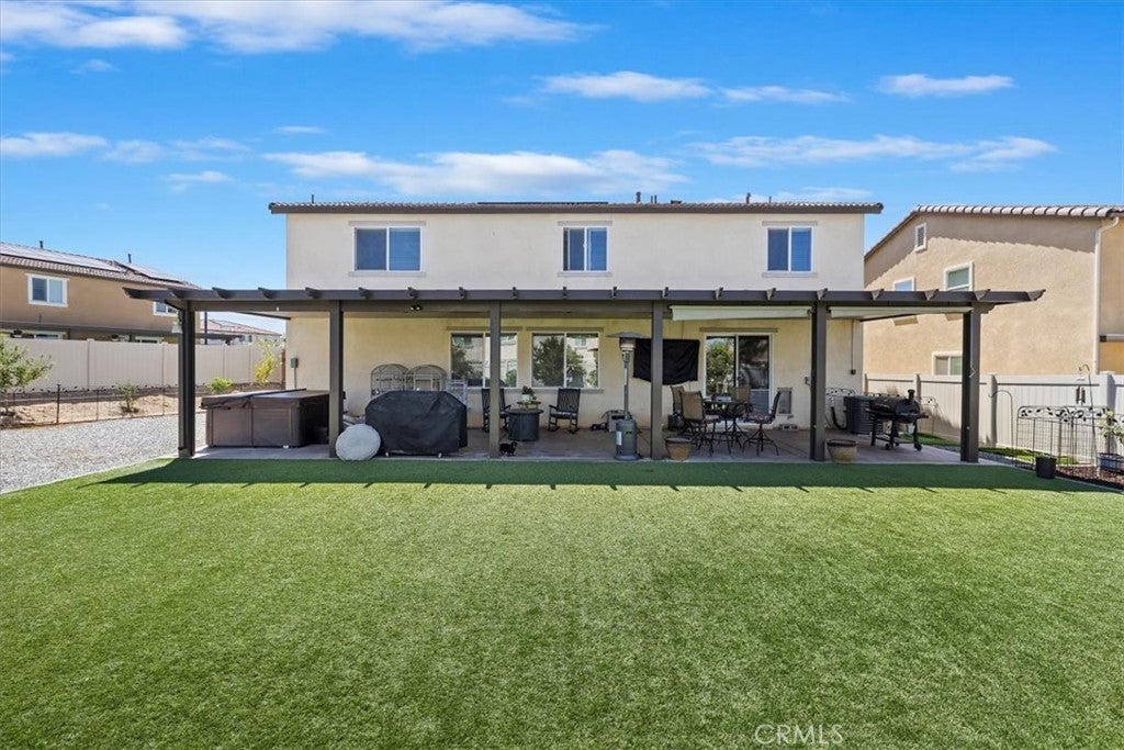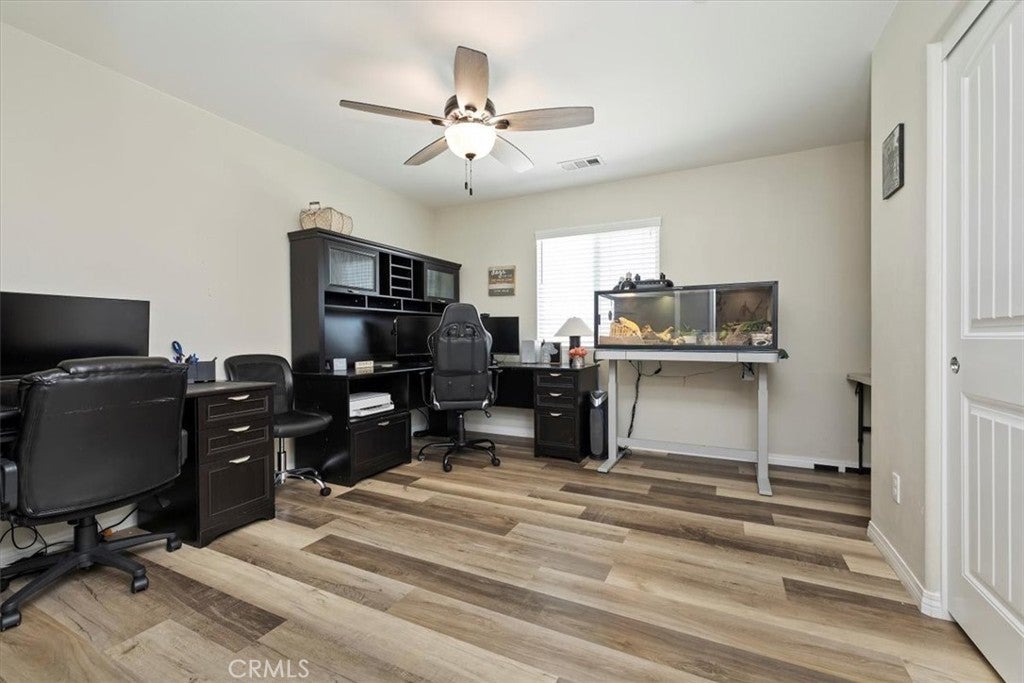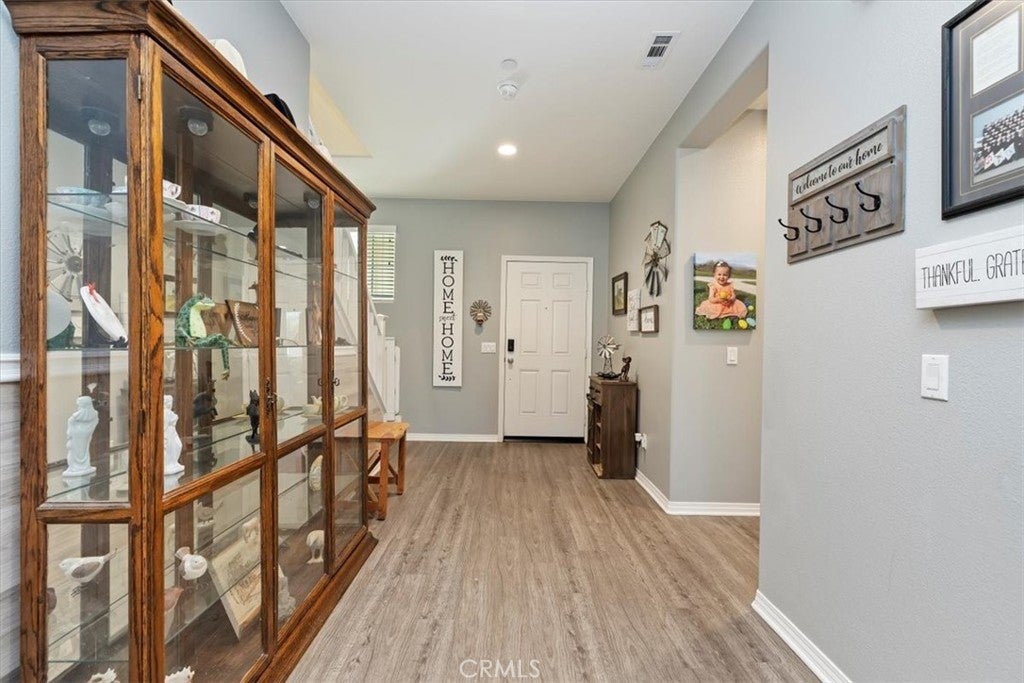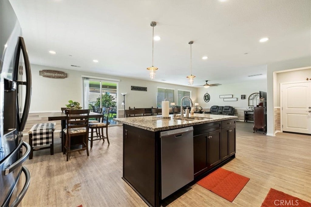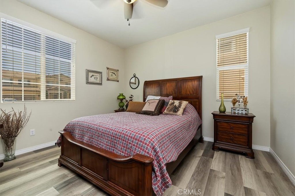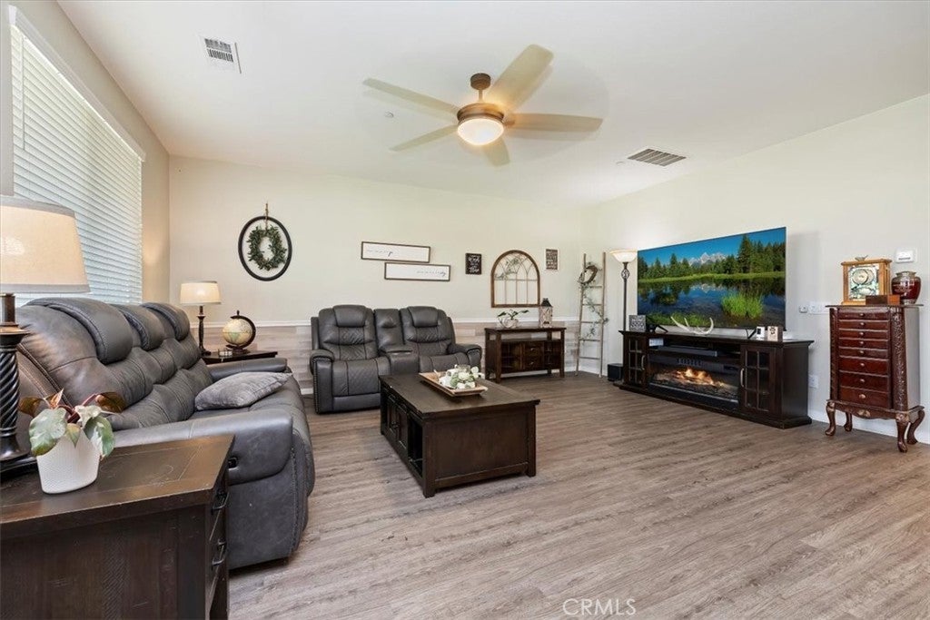 **Like a Model Home... this Wonderfully Upgraded 5 Bed/3 Bath Home is located on a quiet interior street within the Exclusive Gated Olivewood Community. *****FHA Loan is assumable and at a very low interest rate of 3.25%! Buyers may also qualify for a 15k down payment assistance loan that is forgivable over 5 years.***** The Most Desirable floorplan in the Neighborhood, this home features a Sought After First Floor Bedroom and Full Bath. Very Open Layout and High Ceilings and Natural Light create a comfortable space in the Family Room, Dining and Kitchen that feels Expansive! The Gorgeous Kitchen has been Upgraded with a Stunning Granite counter tops, Beautiful Stainless-Steel appliances, Walk-In Pantry and Large Island with Sink and additional Seating that Opens to the Family Room. Beautiful Laminate and Fresh Paint throughout the Home! Includes a Quiet Cool whole house fan that can dramatically reduce your A/C usage, plus fire sprinkler system and rain sensor sprinkler system cut-off. The spacious backyard is significantly larger than surrounding homes. It includes a Very Large Covered Alumawood Patio, Potential RV Parking, Tough Shed and High-End Hot Tub included. The Massive yard is lined with dozens of Fruit Trees, very large Artificial Grass space with built in drains... Perfect Space to Entertain all your Friends and Family! Olivewood Community features Amazing Amenities like Clubhouse, Pool, Gym, Parks, etc. Located minutes off the 10 & 60 FWY for and excellent commute location. Come Take a Look and Fall in Love!