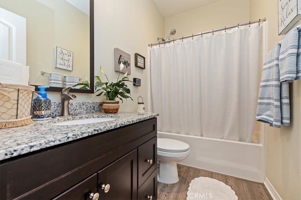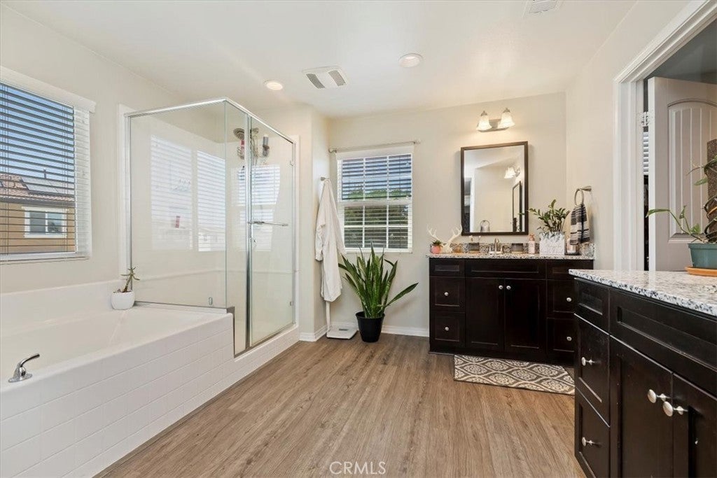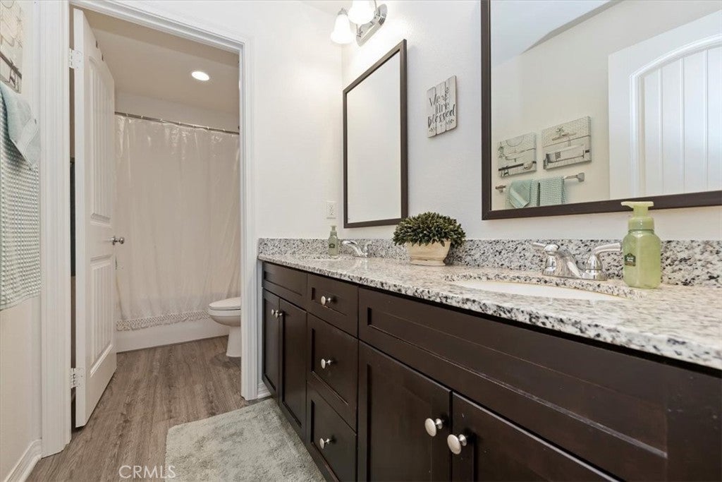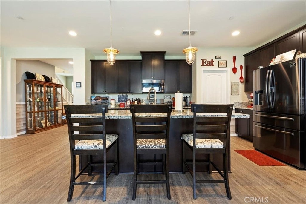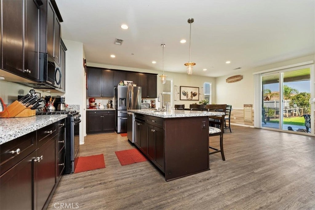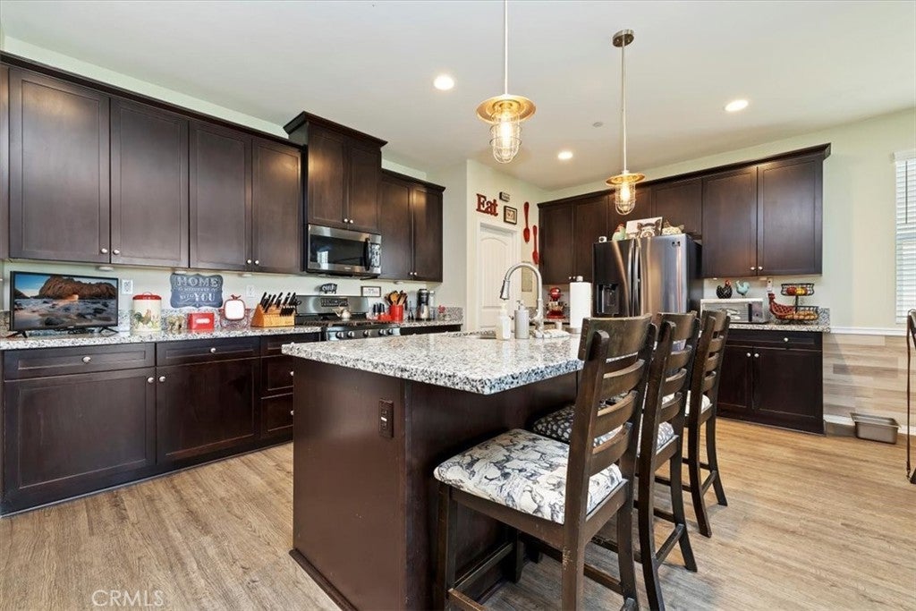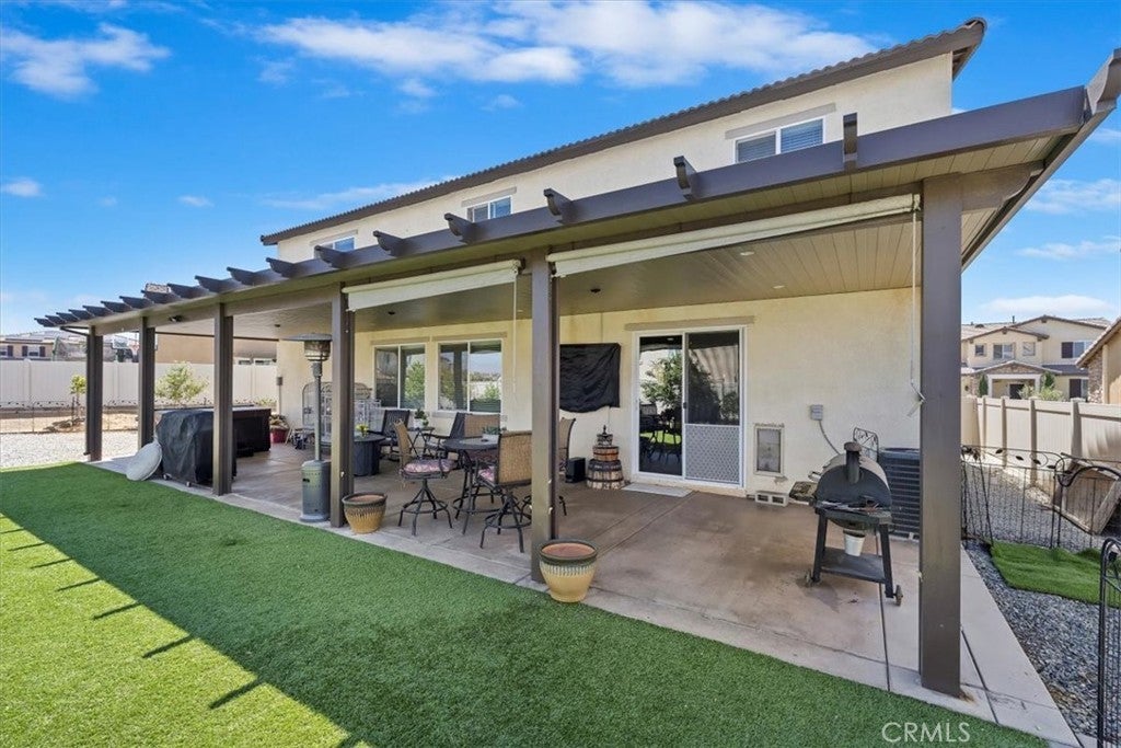 **Like a Model Home... this Wonderfully Upgraded 5 Bed/3 Bath Home is located on a quiet interior street within the Exclusive Gated Olivewood Community. *****FHA Loan is assumable and at a very low interest rate of 3.25%! Buyers may also qualify for a 15k down payment assistance loan that is forgivable over 5 years.***** The Most Desirable floorplan in the Neighborhood, this home features a Sought After First Floor Bedroom and Full Bath. Very Open Layout and High Ceilings and Natural Light create a comfortable space in the Family Room, Dining and Kitchen that feels Expansive! The Gorgeous Kitchen has been Upgraded with a Stunning Granite counter tops, Beautiful Stainless-Steel appliances, Walk-In Pantry and Large Island with Sink and additional Seating that Opens to the Family Room. Beautiful Laminate and Fresh Paint throughout the Home! Includes a Quiet Cool whole house fan that can dramatically reduce your A/C usage, plus fire sprinkler system and rain sensor sprinkler system cut-off. The spacious backyard is significantly larger than surrounding homes. It includes a Very Large Covered Alumawood Patio, Potential RV Parking, Tough Shed and High-End Hot Tub included. The Massive yard is lined with dozens of Fruit Trees, very large Artificial Grass space with built in drains... Perfect Space to Entertain all your Friends and Family! Olivewood Community features Amazing Amenities like Clubhouse, Pool, Gym, Parks, etc. Located minutes off the 10 & 60 FWY for and excellent commute location. Come Take a Look and Fall in Love!