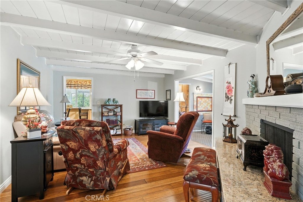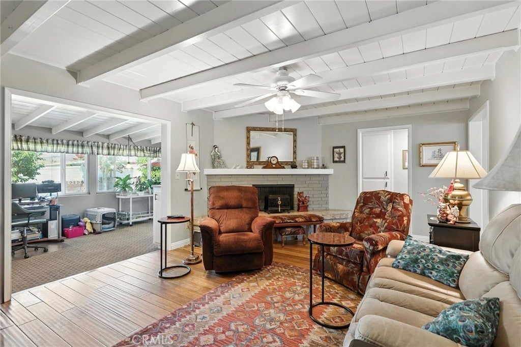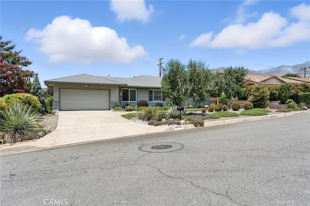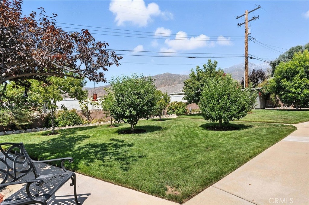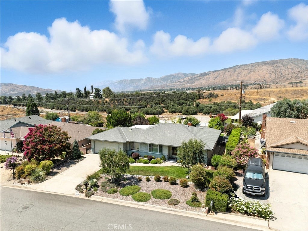 Seller will help with Buyers Closing Costs Charm Starts Here in This Immaculate “Mr. Clean” Home! Newly improved with new 30 year comp shingle roof, new 4 ton HVAC system, new 200 AMP electrical panel. This view home is now available. Nestled in the scenic hills of Yucaipa, this darling 1966-built home offers over 1,800 sq. ft. of pristine living space, two large bedrooms, and sweeping mountain views from an enchanting backyard oasis with fruit trees. Step inside to a spacious living room with a formal dining area framed by picture windows. The home has beautiful wood floors. The inviting family room features vaulted ceilings and a cozy fireplace, creating the perfect spot for gatherings. A versatile bonus room includes extra storage, making it ideal for a home office, craft room, or guest space. The remodeled kitchen boasts gorgeous granite counters, custom cabinetry, a convenient eat-on bar, and a charming dining nook. Both bedrooms are generously sized, with the main bath showcasing a separate shower and soaking tub — all beautifully redone in granite. Included in the bath are dual sinks and a vanity area. Outdoors, enjoy a large covered patio surrounded by mature fruit trees, perfect for relaxing or entertaining while taking in the stunning mountain views. The 2-car garage offers abundant storage and direct access into the home for convenience. Highlights: 2 spacious bedrooms, 2 full baths! Family room with vaulted ceilings & fireplace! Bonus room with vaulted ceilings, windows, and extra storage! Remodeled kitchen with granite counters, breakfast bar & dining nook! Main bath custom done with granite double sinks, vanity area and separate shower & soaking tub in granite! Large living room with wood floors, formal dining area & picture windows. Inside laundry with lots of storage and custom cabinets. Covered patio, fruit trees & sweeping mountain views 2-car garage with storage & direct access Located in the desirable hills of Yucaipa AND THE GATEWAY TO OAK GLEN AND THE NEW WINERY'S HOMES IN THIS NEIGHBORHOOD RARELY COME ON THE MARKET This home is perfect for those seeking charm, pristine condition, and spacious living in a peaceful, scenic setting.