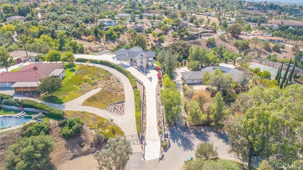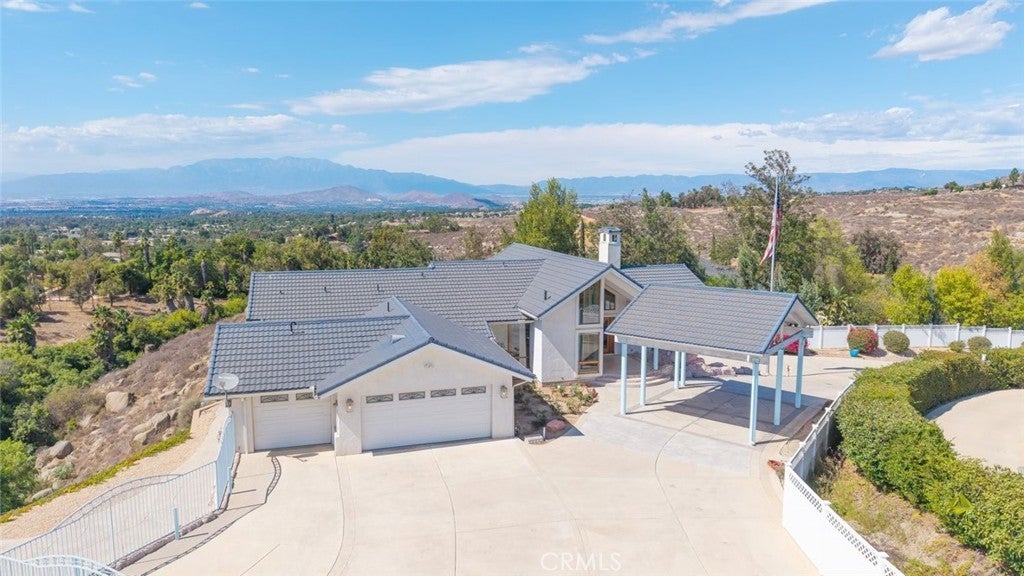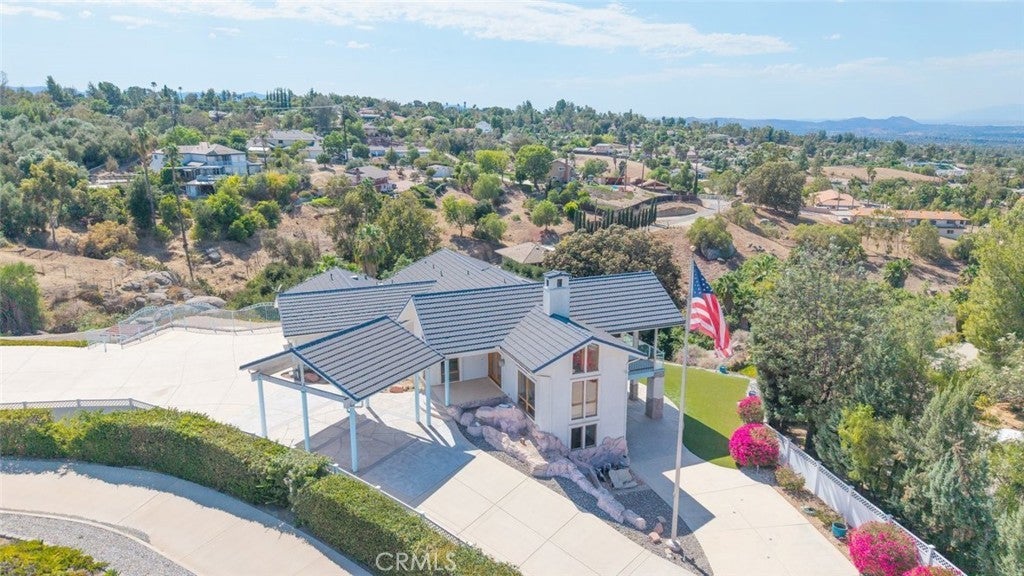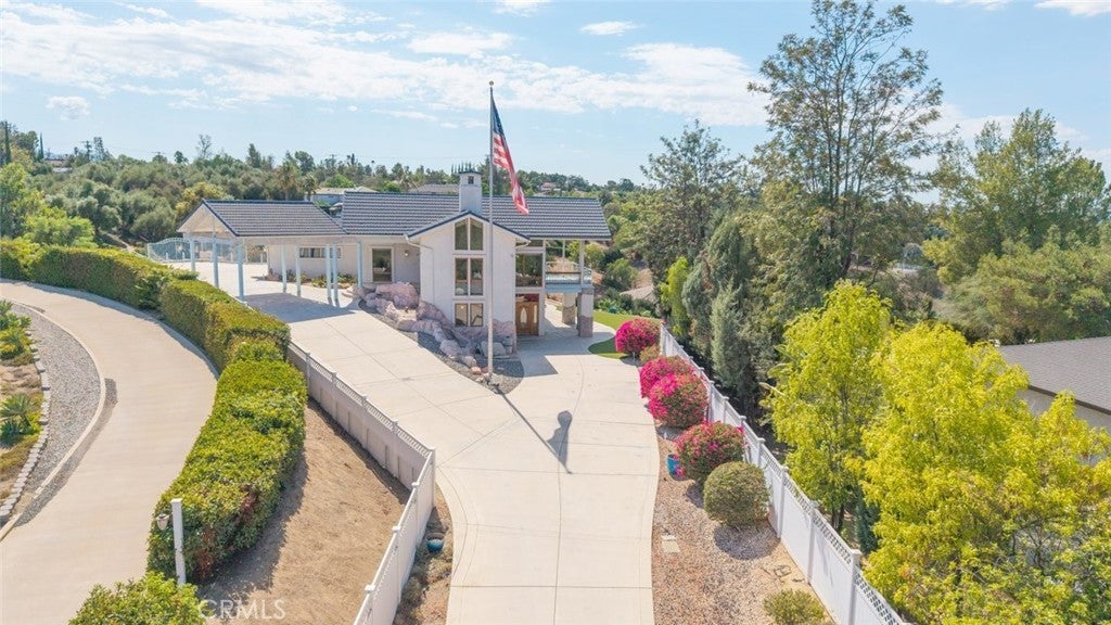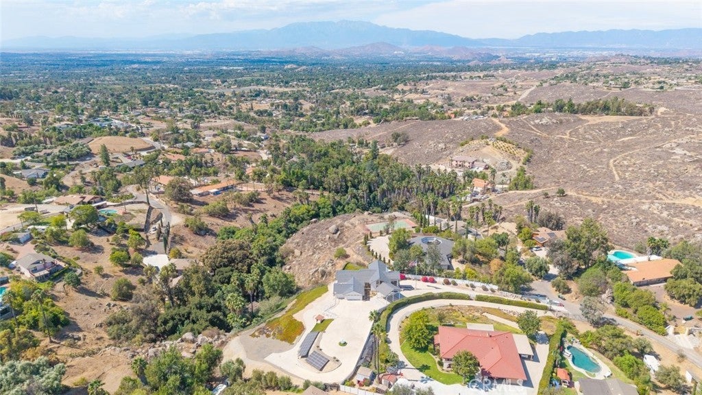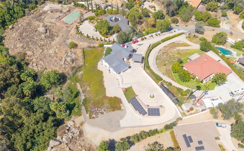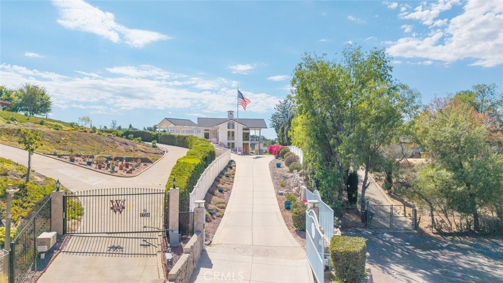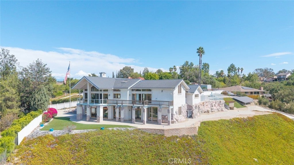 Welcome to 17338 Ranchero Road, a fully custom masterpiece tucked away in the highly desirable Woodcrest community of Riverside. Perched on a sprawling one-acre lot, this residence was thoughtfully designed to maximize both comfort and grandeur while capturing the most breathtaking views you’ll find in the city. From the moment you arrive, the private gated entry welcomes you into a world of serenity and exclusivity, where rolling hills meet the valley below and the mountains stand tall in the distance. Whether bathed in morning sunlight or glowing in the golden hour, the vistas here are nothing short of spectacular. Inside, every detail has been carefully considered to blend luxury with livability. Upstairs, the primary suite offers a peaceful escape with a spacious bedroom, spa-inspired bathroom, and direct access to those sweeping views. A convenient half bath and an elevator connecting both levels make everyday living effortless. Just outside, an expansive open deck spans the rear of the home—perfect for savoring your morning coffee, hosting unforgettable gatherings, or simply soaking in the ever-changing scenery. The lower level expands your living possibilities with a dedicated office or optional bedroom, a large open living area, and a built-in bar that’s ready for entertaining. Three additional bedrooms, each generously sized and positioned to capture the surrounding landscape, offer comfort and privacy for family or guests. For those who value multi-generational living or private accommodations, the attached guest or mother-in-law suite is a true standout. Complete with its own bedroom, bathroom, kitchen, and living area, this space functions as an independent retreat while still being part of the home. Outside, the grounds are as versatile as they are beautiful. There’s ample space for RV parking, room for outdoor recreation, and potential to customize the landscape to suit your vision. With 56 paid-off solar panels, you’ll enjoy the benefits of energy efficiency without the burden of monthly solar payments. This is more than just a property—it’s a lifestyle. Homes of this caliber and setting are a rare find in Riverside, combining privacy, unmatched views, and a flexible floor plan designed for the way you live today. From sunrise to sunset, 17338 Ranchero Road delivers an experience you’ll want to savor every single day. This is truly a home you must see to believe.