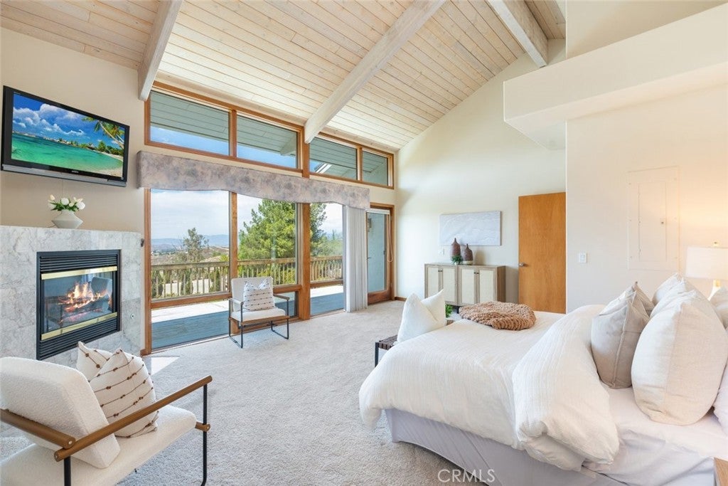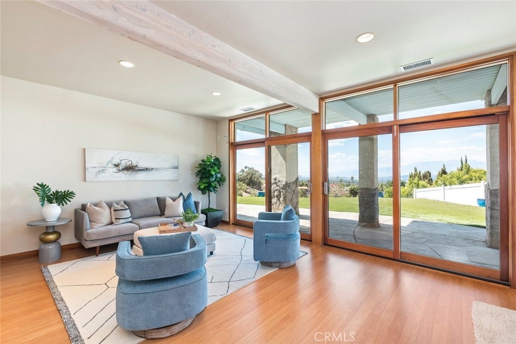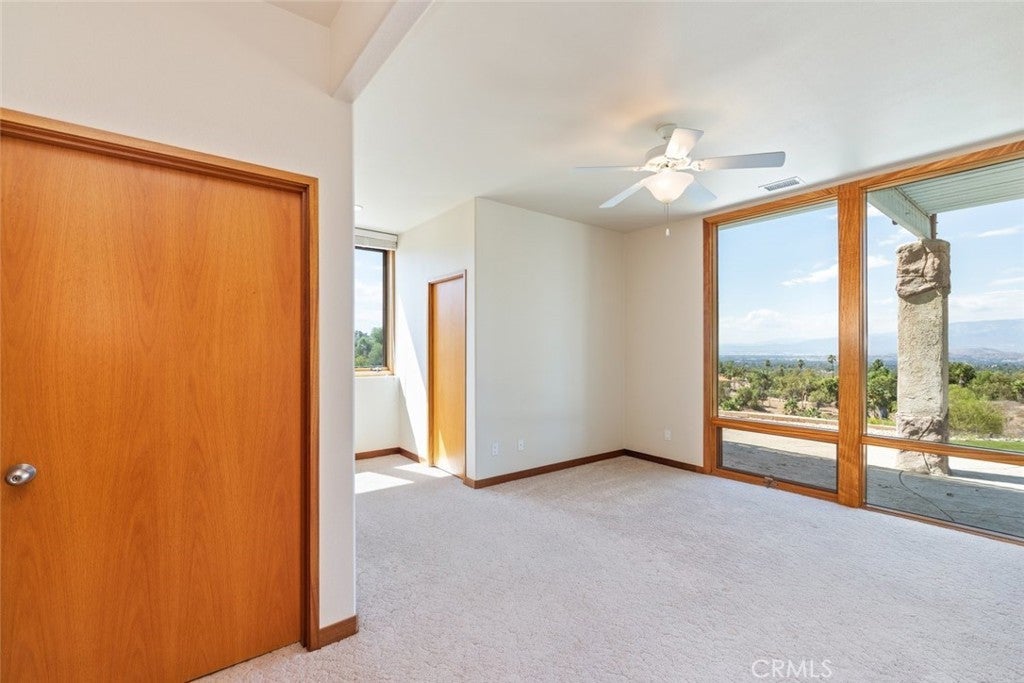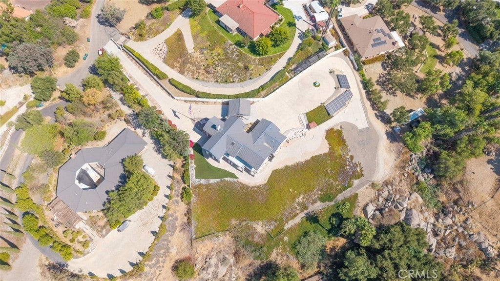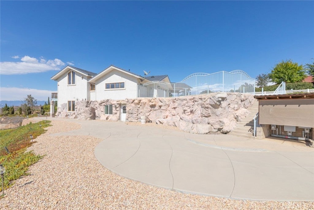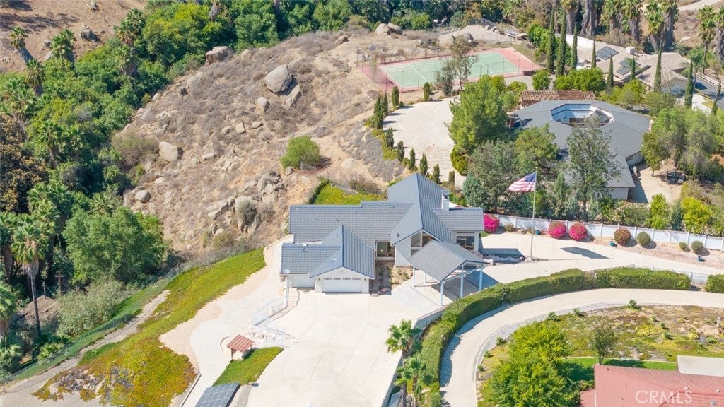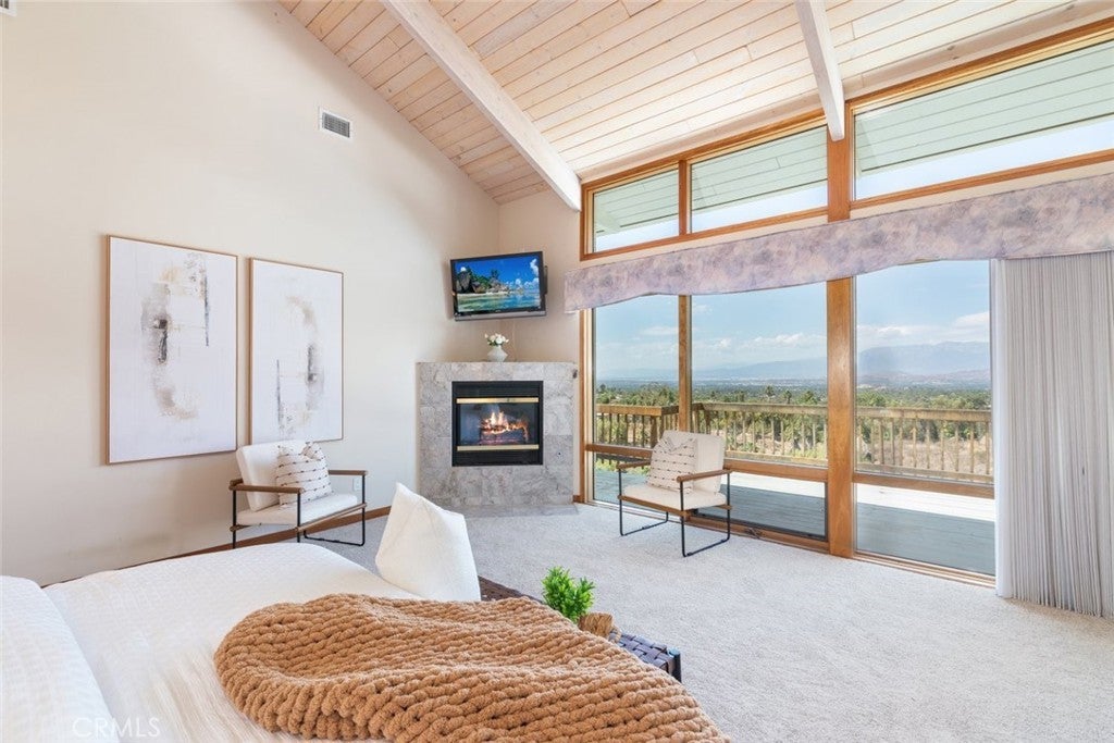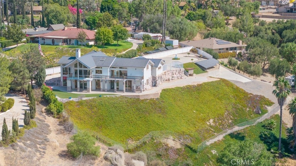 Welcome to 17338 Ranchero Road, a fully custom masterpiece tucked away in the highly desirable Woodcrest community of Riverside. Perched on a sprawling one-acre lot, this residence was thoughtfully designed to maximize both comfort and grandeur while capturing the most breathtaking views you’ll find in the city. From the moment you arrive, the private gated entry welcomes you into a world of serenity and exclusivity, where rolling hills meet the valley below and the mountains stand tall in the distance. Whether bathed in morning sunlight or glowing in the golden hour, the vistas here are nothing short of spectacular. Inside, every detail has been carefully considered to blend luxury with livability. Upstairs, the primary suite offers a peaceful escape with a spacious bedroom, spa-inspired bathroom, and direct access to those sweeping views. A convenient half bath and an elevator connecting both levels make everyday living effortless. Just outside, an expansive open deck spans the rear of the home—perfect for savoring your morning coffee, hosting unforgettable gatherings, or simply soaking in the ever-changing scenery. The lower level expands your living possibilities with a dedicated office or optional bedroom, a large open living area, and a built-in bar that’s ready for entertaining. Three additional bedrooms, each generously sized and positioned to capture the surrounding landscape, offer comfort and privacy for family or guests. For those who value multi-generational living or private accommodations, the attached guest or mother-in-law suite is a true standout. Complete with its own bedroom, bathroom, kitchen, and living area, this space functions as an independent retreat while still being part of the home. Outside, the grounds are as versatile as they are beautiful. There’s ample space for RV parking, room for outdoor recreation, and potential to customize the landscape to suit your vision. With 56 paid-off solar panels, you’ll enjoy the benefits of energy efficiency without the burden of monthly solar payments. This is more than just a property—it’s a lifestyle. Homes of this caliber and setting are a rare find in Riverside, combining privacy, unmatched views, and a flexible floor plan designed for the way you live today. From sunrise to sunset, 17338 Ranchero Road delivers an experience you’ll want to savor every single day. This is truly a home you must see to believe.