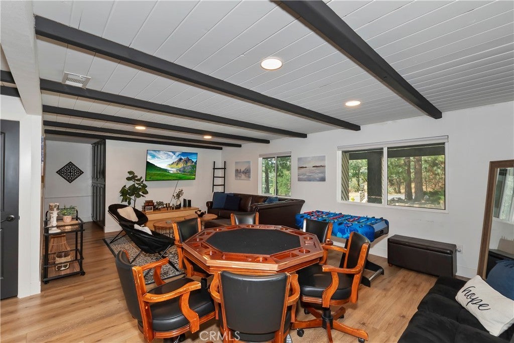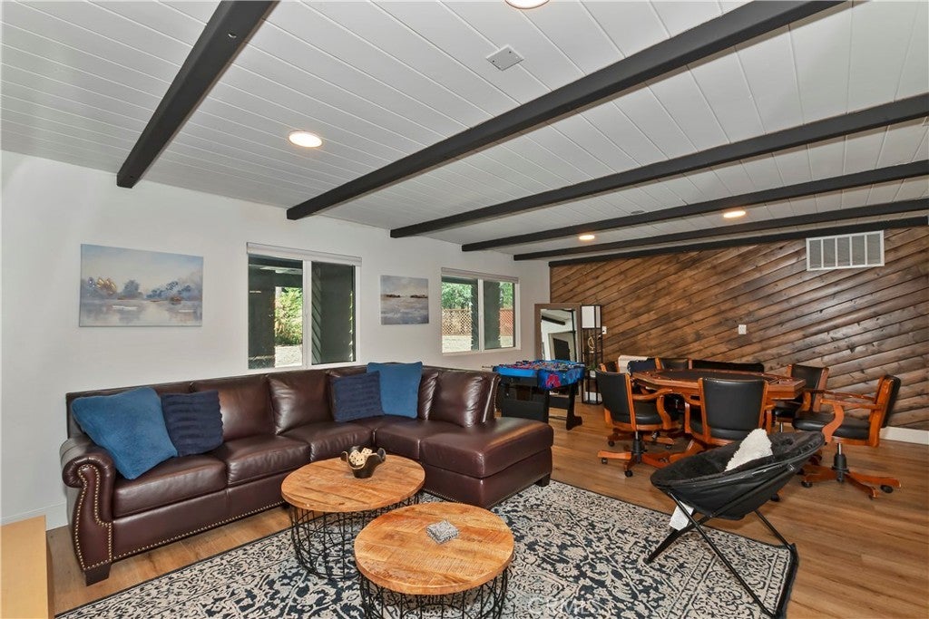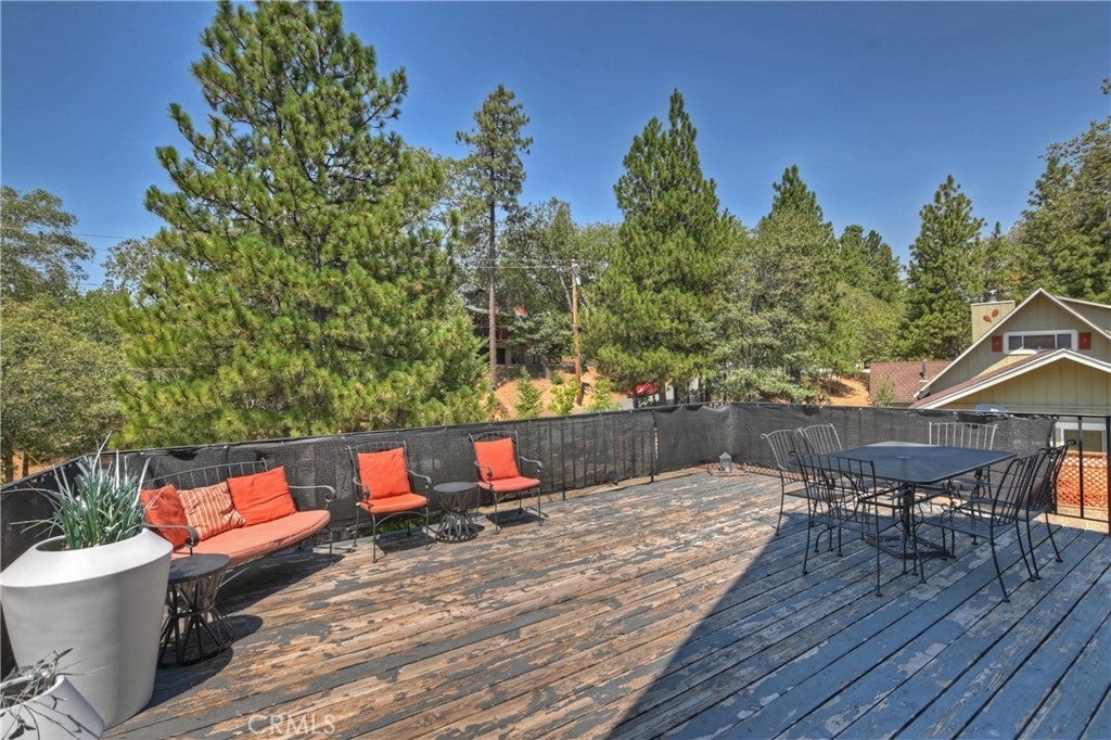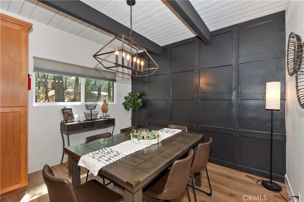 Located in the desirable Tavern Bay area of Lake Arrowhead, just moments from the lake and Tavern Bay beach club, this beautifully remodeled contemporary mountain home offers the perfect blend of style, comfort, and convenience. Featuring four bedrooms and three bathrooms, the open floor plan in the living room creates an inviting atmosphere highlighted by vaulted ceilings cozy fireplace and luxury vinyl plank flooring. Gorgeous kitchen remodel along with bathrooms home was designed with modern living in mind. One bedroom and bath on main floor , 2 large bedrooms upstairs and downstairs a large family /game room , home also offers the comfort of air conditioning & nest thermostat Situated on a generous-sized level lot, the property includes a spacious three-car garage along with plenty of additional parking for an RV or boat, making it ideal for mountain compound for family and friends to enjoy the Lake Arrowhead lifestyle. . Could come fully furnished turn key it has been a successful air BB rental located in Arrowhead Woods with full lake rights .