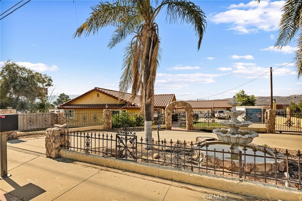 This stunning Spanish-style home, spanning 1,670 square feet, exudes timeless elegance and modern comfort. With 3 bedrooms and 3 bathrooms, this residence is designed for both relaxation and entertaining. The exterior boasts classic stucco walls, a red-tiled roof, and arched doorways, capturing the essence of Mediterranean charm. Step inside to an open-concept living area with exposed wooden beams, warm laminate flooring, and abundant natural light. The gourmet kitchen features granite countertops,, and a center island, perfect for culinary creations. The master suite offers a private oasis with a luxurious en-suite bathroom, complete with a tub and walk-in shower. Each of the two additional bedrooms is generously sized, with ample closet space and easy access to well-appointed bathrooms. The highlight of this property is the charming casita, a versatile space ideal for guests, a home office, or a private studio, complete with its own bathroom and kitchenette. Outside, a beautifully landscaped courtyard with a fountain invites al fresco dining, while the backyard offers a tranquil retreat.. This Spanish-style gem blends classic architecture with modern amenities, creating a perfect haven for your lifestyle.