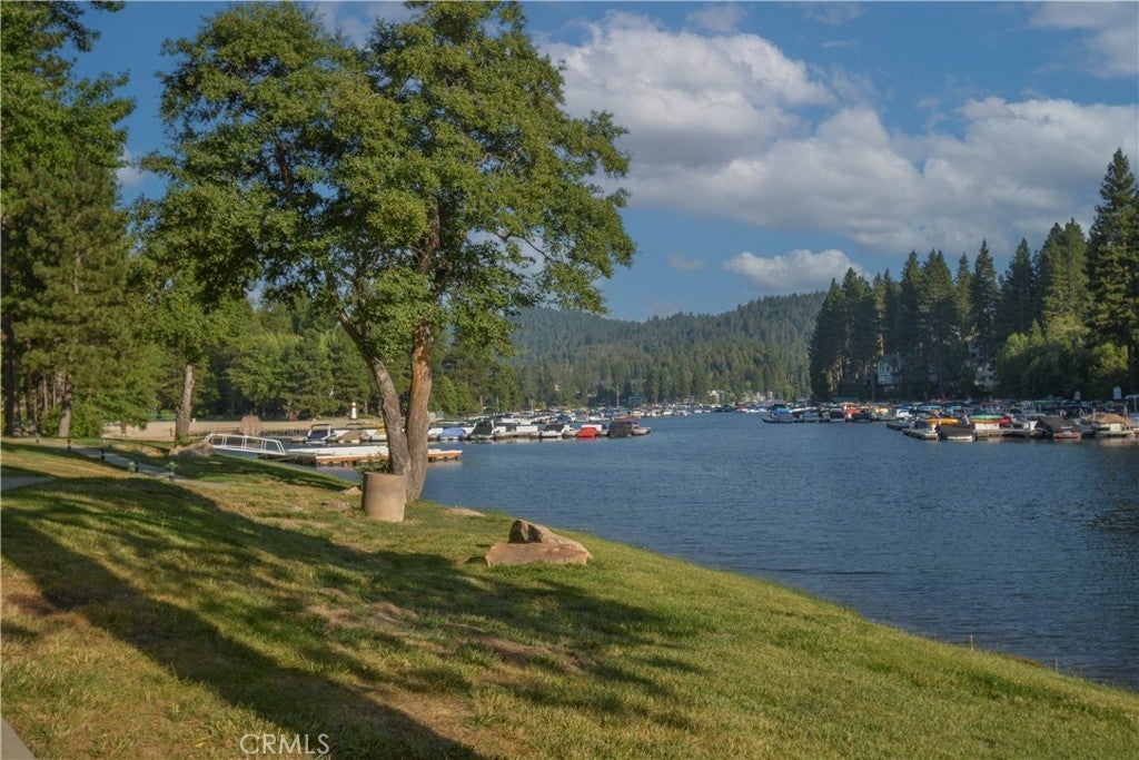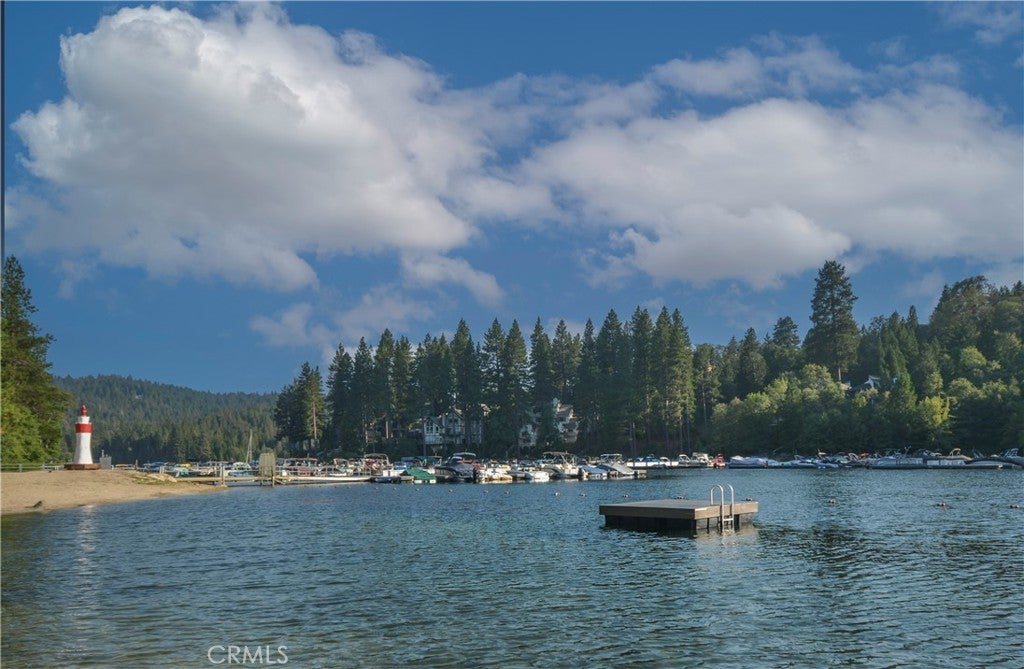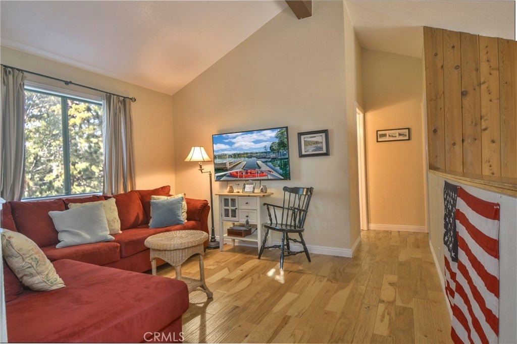 The ease of life is here in the gated community of Meadow Bay North. This townhome has been lovingly maintained and is ready for its next chapter of family and friends. There is so much to enjoy in this furnished 4 bedroom, 3 bath home featuring a split-level floor plan providing privacy and flexibility. The main level has wood touches keeping the mountain appeal with a wood-burning fireplace and an adjoining deck to enjoy the mountain air. The kitchen has been upgraded with granite counters and self-closing and pull-out cabinetry. The dining area is large enough to host everyone for Thanksgiving and other events. The primary en suite bedroom is very spacious and comfortable, the upper loft bedroom is also en suite. The lowest level has two additional bedrooms with shared a bathroom. Beautiful hardwood flooring and stone enhance the home. The ultimate lifestyle awaits in this community of 17 acres featuring a private beach just for homeowners and their guests. Don't miss the storage area under the unit for beach toys. The HOA that covers the roof, decks and exterior maintenance of the structure as well as the beach and common areas providing you with the relaxing Lake Arrowhead lifestyle of being able to enjoy your home without all the chores of home ownership. Enjoy the winter season too with snow removal provided by the HOA in the common areas. If you are looking to offset some expenses, both long and short-term rentals are allowed with a six-day minimum and a county permit. There is also a dock available for additional money just a short stroll away completing the package. This home blends luxury, functionality, and community living, making it ideal for families, seasonal residents, or those seeking a maintenance-free mountain retreat.