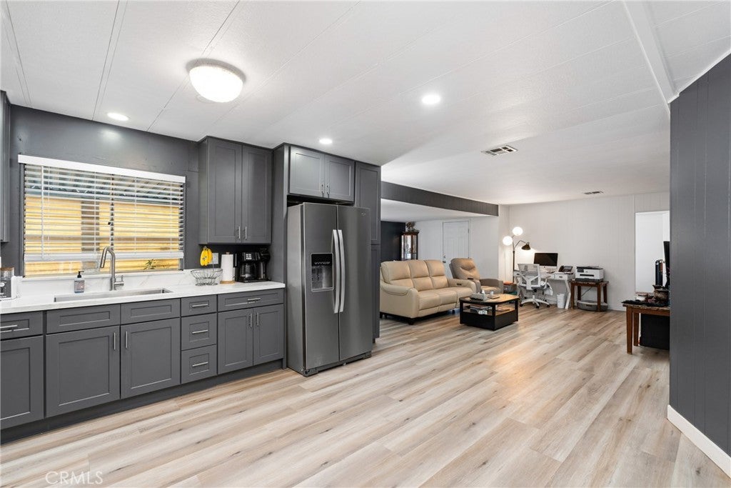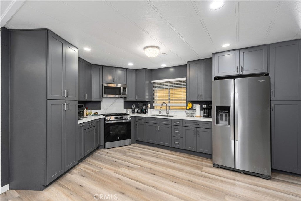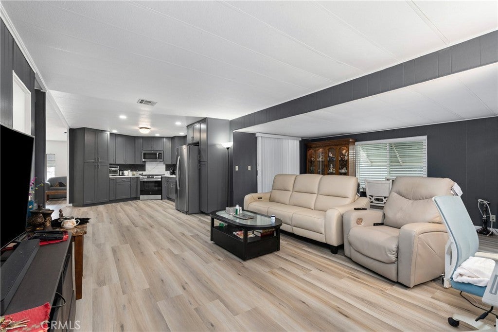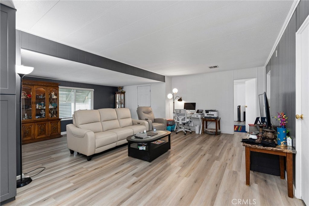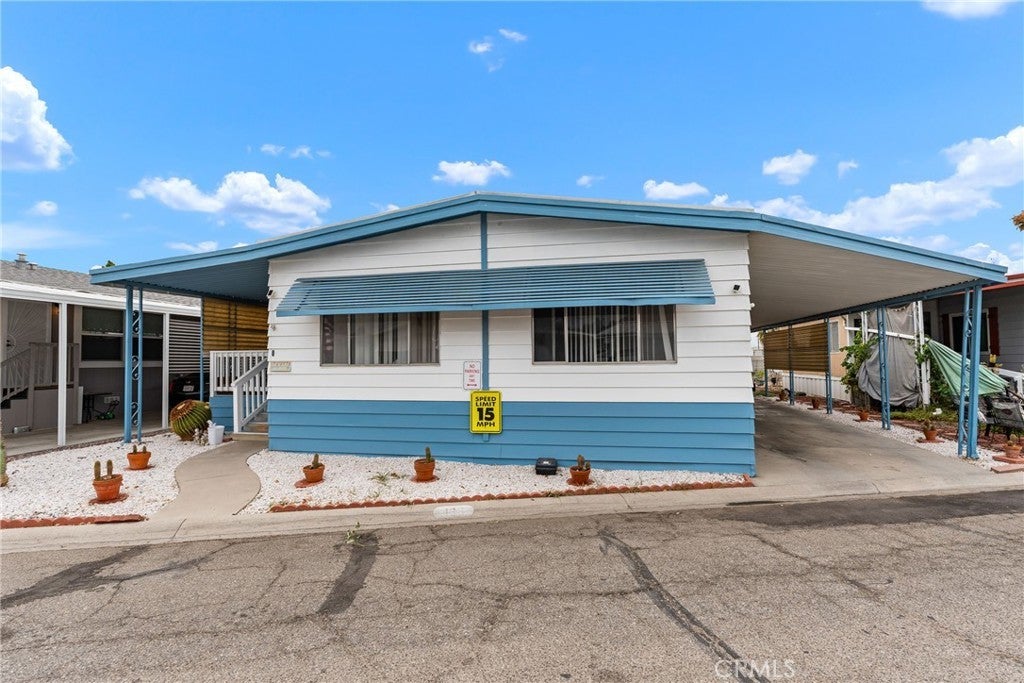 What a fantastic buy. This manufactured home is down the street from LLUMC / VA Hospital, Hospitality Lane and 215/10 Freeways. This is the only current 3 bedroom 2 full bathroom manufactured home available in the community. It comes with a new upgraded kitchen with quartz counter tops and new cabinets. New appliances. All upgraded beautiful HDF hardwood flooring. It has a nice sized dining area. Along with a living room that overlooks the kitchen and dining area. Plus a family room. All 3 bedrooms are well sized rooms. The 2 bathrooms are full bathrooms. You have an indoor laundry room. Plus a large carport where you can fit 2-3 vehicles. It has great curb appeal. Plus a large front porch and a nice sized back porch for more privacy & star gazing at night. This is a must see unit. The furniture is negotiable as well.