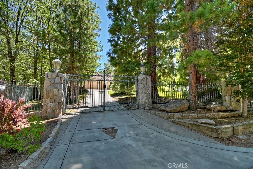 Over an ACRE, behind privacy gates, the utmost in privacy, yet, just a short stroll to the private Tavern Bay Beach Club. This Lake Arrowhead estate, with Lake Rights, unfolds like a love letter to mountain living. Lushly landscaped, forested, & level grounds, this home is not just a residence but a sanctuary—where nature, romance, & luxury harmonize. From the moment you arrive, the automated entry gate opens to reveal sprawling lawns adorned with flowers and the whimsical beauty of the “Three Sisters” sequoias —kissed by alpine breezes. Outdoors, every gathering becomes a memory. The bocce ball & expansive sport court invite laughter and competition—transforming easily into a dance floor under the stars. The custom bar and grill beckon for twilight feasts, while the above-ground spa bubbles beside twinkling landscape lighting, wrapping evenings in romance. Whether entertaining dozens or enjoying quiet solitude, this property is designed for joy. Inside, craftsmanship meets warmth. Stone and wood floors, wainscoting, cove moldings, and solid wood interior doors create a home rich with character. The oversized living room fireplace glows with welcoming grandeur, while the chef’s kitchen is a culinary dream: six-burner gas cooktop, convection double ovens, walk-in pantry with wine cooler & 2nd beverage fridge, & a commercial-grade stainless refrigerator & freezer. Every meal here feels celebratory. The primary suite, on the main level with 2nd fireplace and direct access to the back yard & spa, is a true retreat, offering a luxurious “Mr. Steam” shower that turns each morning into a spa ritual. With five bedrooms & five baths, + separate family room, each space balances privacy with connection, perfect for hosting loved ones in comfort. Thoughtful upgrades ensure ease and peace of mind—two air conditioners, four heater units with Nest controls, a whole-house generator, a private well with 5-stage filtration & 2,500-gallon storage tank, plus phone-app-enabled gates & heated three-car garage. Even parking welcomes guests graciously, with space for 12+ cars incl. a 40+ foot RV area with 50-amp hookup. Romantic, rare, & timeless, this estate is more than a home—it is a stage for life’s sweetest moments. Whether walking to the shores of Tavern Bay, sipping wine beneath your cherry tree in bloom, or dancing barefoot on the sports court by moonlight, you’ll find that this property was created for memories that last forever. Could come mostly furnished.