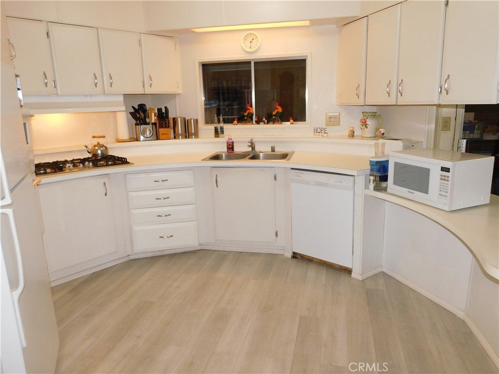 ~Gorgeous home in Banning’s highly desirable 55+ community, Sunrise Estates!~Pride of ownership shows throughout!~Recent upgrades include re-coated metal roof in 2024, new water heater in 2024, new HVAC system in 2020, freshly painted exterior in 2025, and new vinyl flooring in kitchen, both bathrooms, and guest bedroom in 2023 and 2024!~HUGE bright living room!~Updated kitchen with new gas cooktop, stainless steel sink, new dishwasher, breakfast bar, and plenty of storage space with new cabinet handles!~Fridge included!~Separate family room with China Hutch, ceiling fan, and sliding glass doors to California room perfect for office, hobby room or gym!~Primary bedroom is king size offering plenty of storage space with full size closet plus built-ins!~Primary bath with beautifully upgraded vanity, walk-in shower with enclosure, and separate garden tub!~2nd bedroom is queen size with built-ins with adjoining guest bathroom!~2nd bathroom with new walk-in shower with enclosure, plus updated vanity!~Separate laundry room with included washer/dryer!~Brinks security system included!~Beautifully maintained backyard with orange and lemon tree, plenty of privacy with backyard brick wall, and concrete back patio!~2 sheds included!~Carport with extenders can fit 2-3 vehicles!~Beautifully maintained front yard and concrete front patio offers great curb appeal and beautiful views of surrounding area!~Call for a tour today, you will definitely be impressed!~