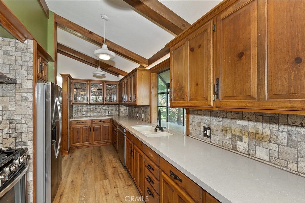 Come Fall in Love at 501 Wellsley Drive! Nestled in the heart of Arrowhead Villas, this light-filled mountain retreat blends rustic charm with modern comfort across 1,824?sq?ft of thoughtfully designed space. With 3 bedrooms and 2 baths, this home is made for connection—from cozy evenings to lively gatherings. Why This Home Shines: • Breathtaking, filtered views of Lake Arrowhead set the tone from the moment you step inside. The vaulted ceilings and expansive great room bathe the home in natural light and invite you to unwind by the fireplace. • Seamless indoor-outdoor living with a spacious deck that overlooks towering trees—and catches glimpses of the lake—perfect for morning coffee or evening stargazing. • Stylish, updated spaces: The kitchen and baths feature elegant quartz countertops. Stainless steel appliances and a garden window add both practicality and charm. • Thoughtful layout for every lifestyle: The main-level primary suite offers its own bath, walk-in closet, and convenient Murphy bed. Downstairs, find a serene second bedroom with its own deck and another flexible space ideal for an office or den—plus, plenty of storage! • Smart, worry-free upgrades: Enjoy year-round comfort with a new HVAC ducting installed in 2022, a durable roof from 2019, and peace of mind thanks to a whole-house generator that keeps power—and Wi-Fi—running during outages. • Ideal location & lifestyle: Minutes from Lake Arrowhead Village and Highway 18, this home checks the box for commuters and mountain lovers alike. It’s also just 20 minutes from Snow Valley Ski Resort and close to SkyPark at Santa’s Village—perfect for year-round adventure. • A mountain community with perks: Arrowhead Villas is steeped in history—and known for its scenic charm. HOA dues are just $280 per quarter and cover snow removal, water, and trash to simplify your life.