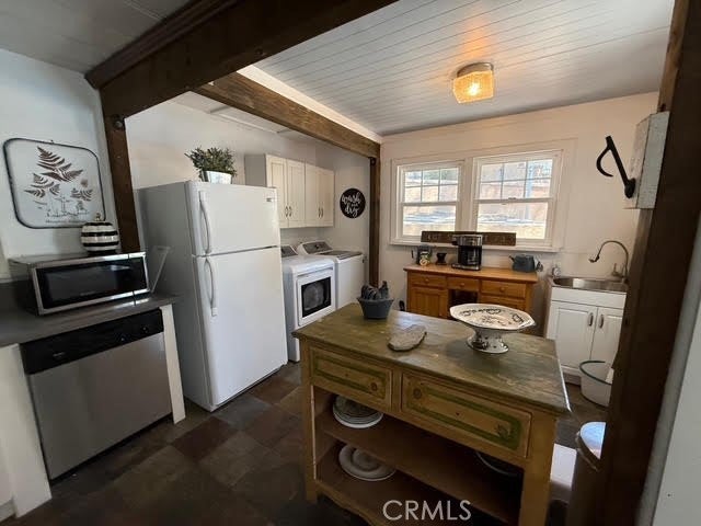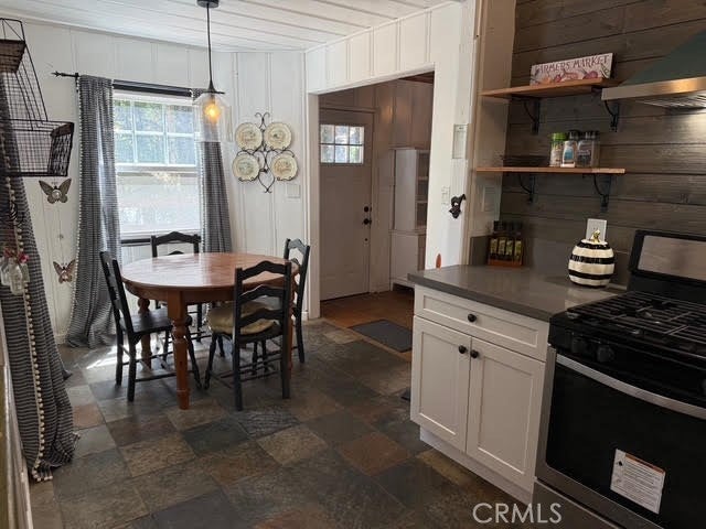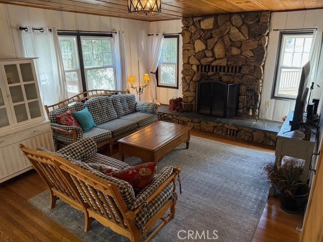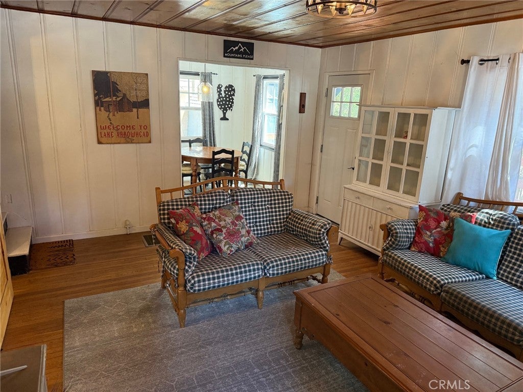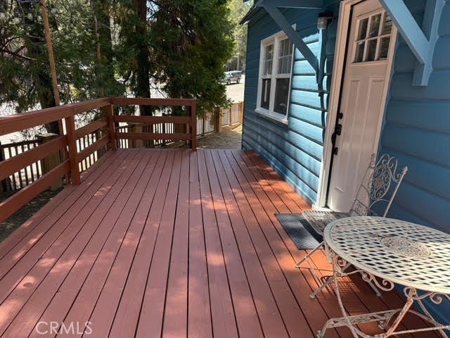 Charming Lake Arrowhead Home - Welcome to this adorable, remodeled cabin in Lake Rights of Arrowhead, walking distance to Jensons, Cedar Glen shops, across from the hottest coffee shop in town. Includes 2-bedrooms featuring 1 full bath on the main level, including a newly added 1/2 bath upstairs. Thoughtfully updated throughout, the home blends modern comfort with mountain charm. The main level offers an open living room with a cozy fireplace, hardwood floors, and a dining area off the remodeled kitchen, complete with slate tile, a coffee bar, and included appliances (refrigerator, gas stove, washer, and dryer). A convenient laundry room was added for convenience just off the kitchen. Upstairs, both bedrooms are light-filled, with one featuring the new half bath. Recent improvements include new windows, updated electrical and plumbing and replacement of the main line to the street, giving peace of mind for years to come. The large, flat lot is fully fenced, perfect for kids and pets, and provides ample off-street parking plus a parking deck. The home can also be offered fully furnished, making it move-in ready. Located in the Palisades of Lake Arrowhead, this property is ideal as a full-time residence, or vacation home.