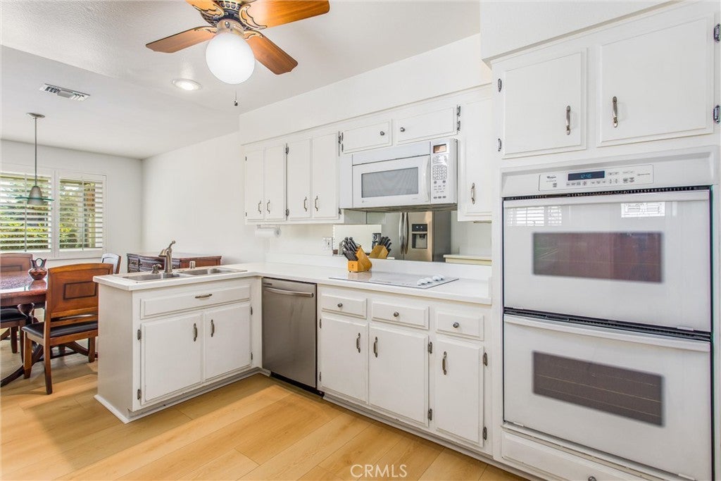 NEW! PRICE IMPROVEMENT!!! BEAUTIFUL SUMMIT VIEW "MINI MANSION" IS MOVE-IN READY! In desirable Summit View 55+ Community of only 28 MINI MANSIONS homes! NEWLY UPDATED! THIS SPACIOUS TWO BEDROOM TWO BATHROOM HOME WITH DINING ROOM BOASTS ALL NEW FLOORING THROUGH OUT. LOADS OF NATURAL LIGHT to BRIGHTEN UP your day EVERY DAY. Plantation shutters on all windows. Mostly all two-paned windows. THE NEWLY REMODELED MASTER BATHROOM FEATURES AN ALL WALK-IN SHOWER, ALL NEW CABINETRY WITH DOUBLE SINK, AND GRANITE COUNTER TOP. JUST SPARKLING! Second bathroom has been updated with new vanity and counter top, and newly reglazed tub/shower. LARGE SIZE laundry room with NEW WASHER AND DRYER, and tons of storage space. Ceiling Fans through-out. All interior and exterior freshly painted. The kitchen features a new dishwasher and refrigerator, newly installed garbage disposal, and a double wall oven. Very recently installed rain gutters. NEWLY ADDED AUTOMATIC WATER USAGE STUT-OFF INSTALLED AUGUST 2025, can be conveniently used from your smart phone. ALL ELECTRIC HOME. 4 Skylights thru out. Bonus 220 on back patio for your convenience. Beautiful views from nearly all windows. Conveniently located just steps from the community SWIMMING POOL! Condo comes with a one car garage with storage and one assigned parking spot. THIS LOVELY MINI MANSION WILL NOT DISAPPOINT!