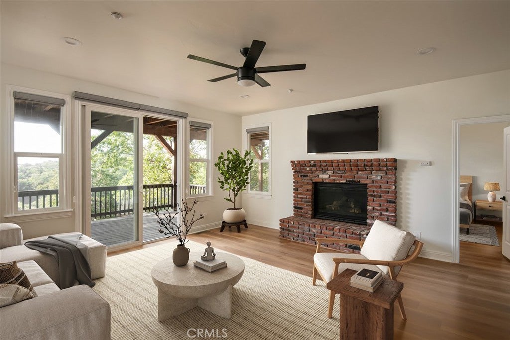 Surrounded by fruit trees that feel like your own private orchard, this 4 bedroom, 2.5 bath home offers comfort, convenience, and mountain charm. Level entry from both the driveway and two car garage makes everyday living simple. Inside, a sun filled living room centers around the updated marble fireplace, while the kitchen, dining, and living spaces open to panoramic mountain views. Step out onto the expansive deck to enjoy the fresh mountain air and take in the scenery. The main level includes the primary ensuite, complete with its own deck access. Downstairs, you’ll find three additional bedrooms and a second living space that flows out to a private deck, ideal for morning coffee, evening unwind, or hosting guests. Located just minutes from Tavern Bay Beach Club, Lake Arrowhead Village, McKay Park, and miles of forest trails, this home puts you in the heart of all the mountain lifestyle has to offer. Lake rights are included, making it an ideal place to enjoy year round.