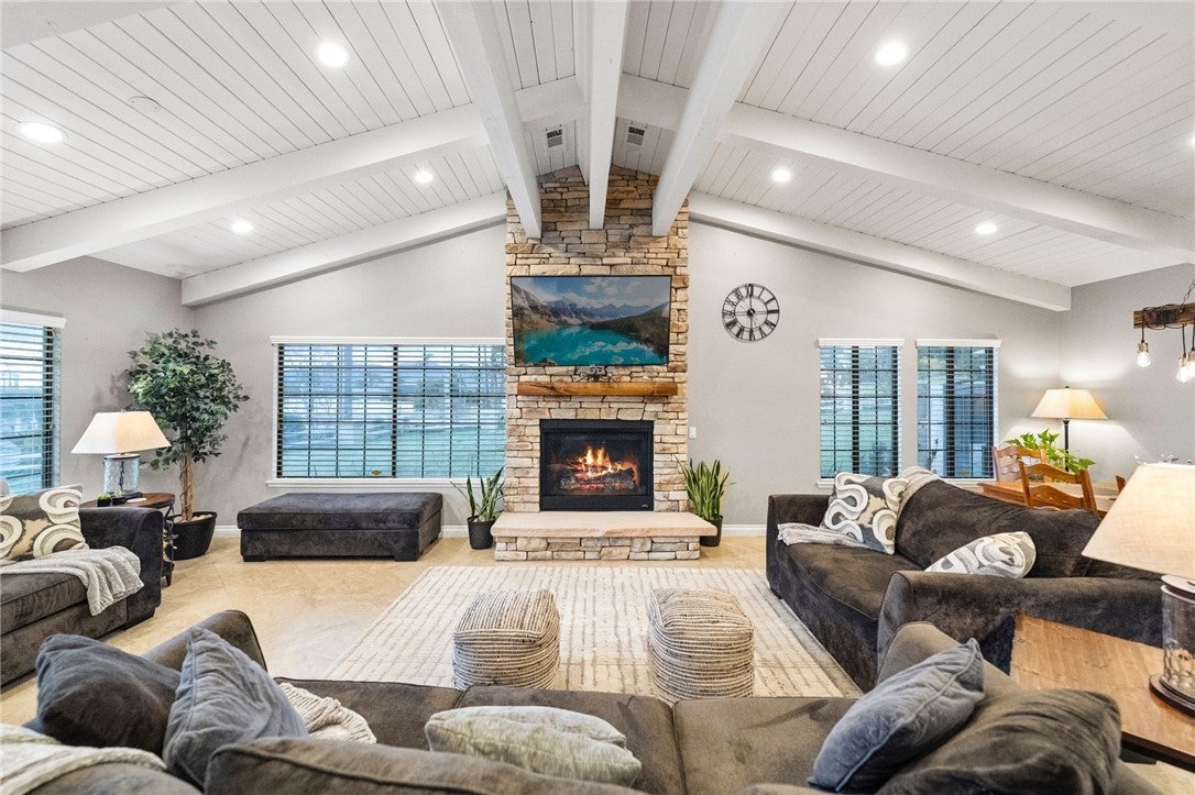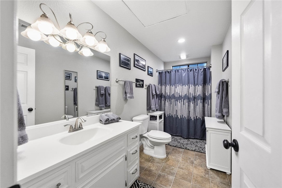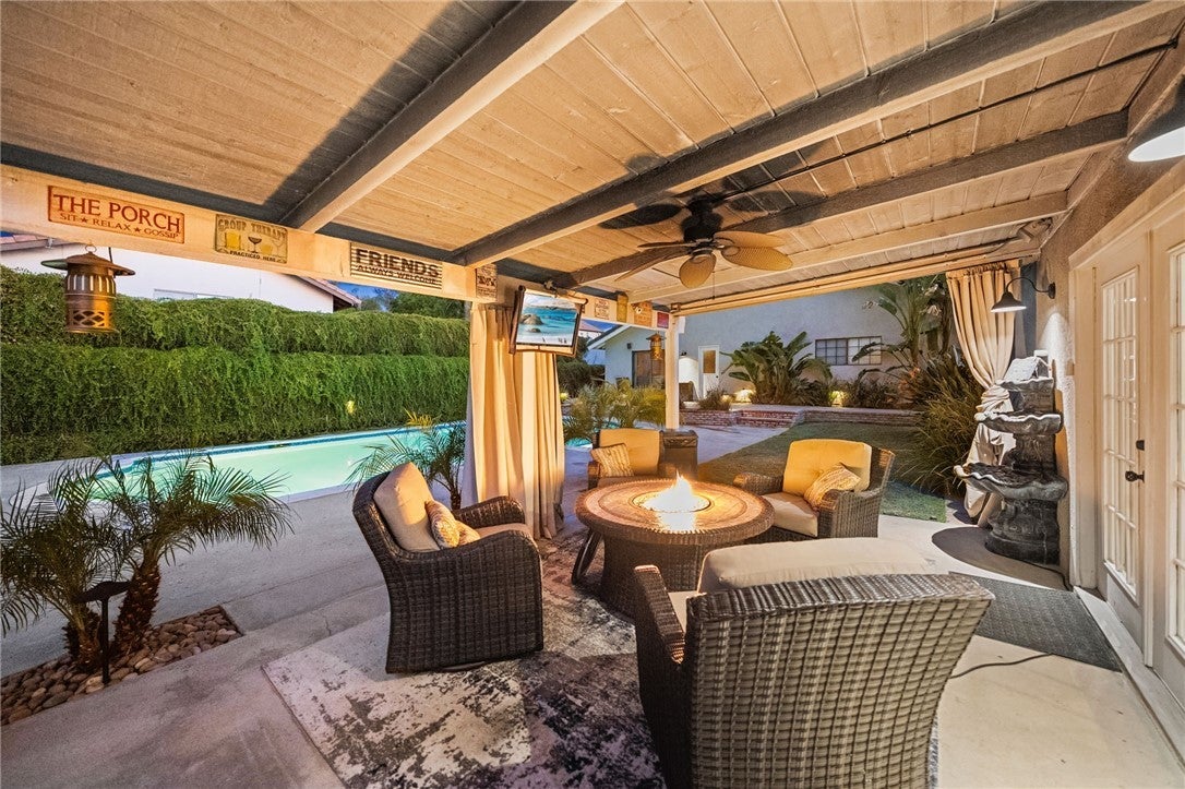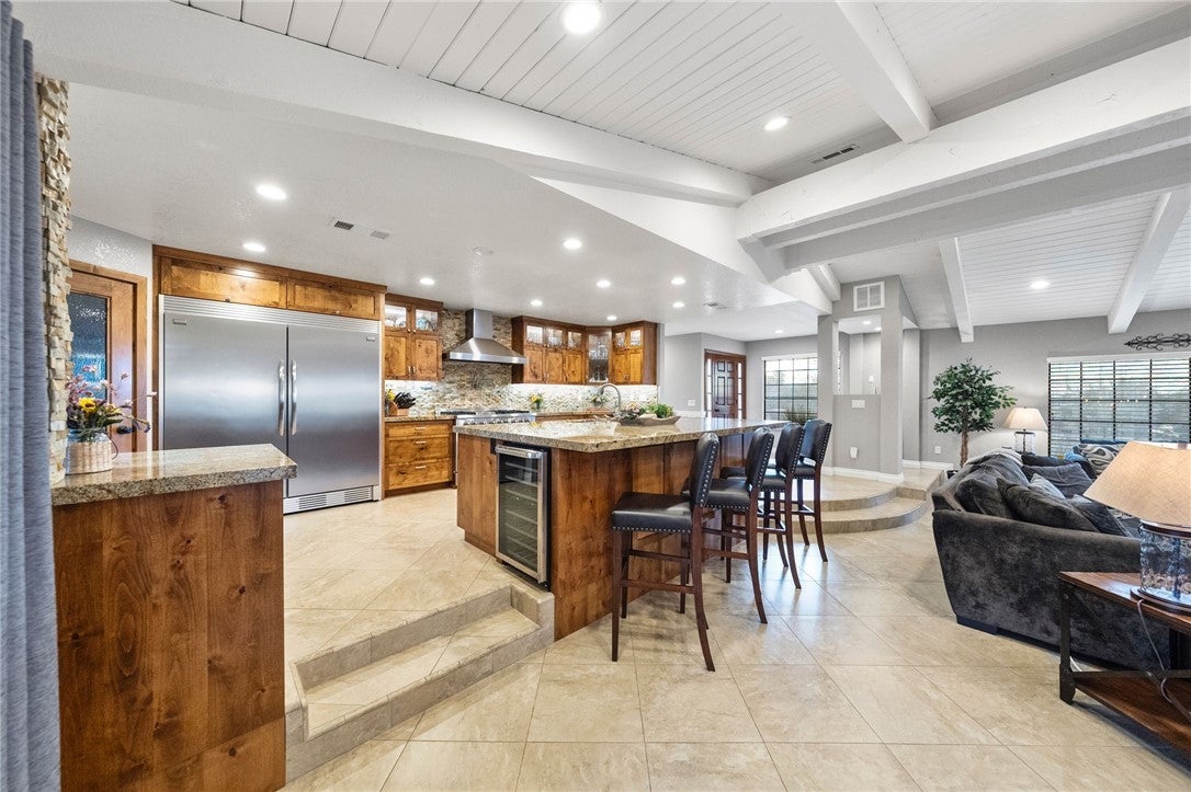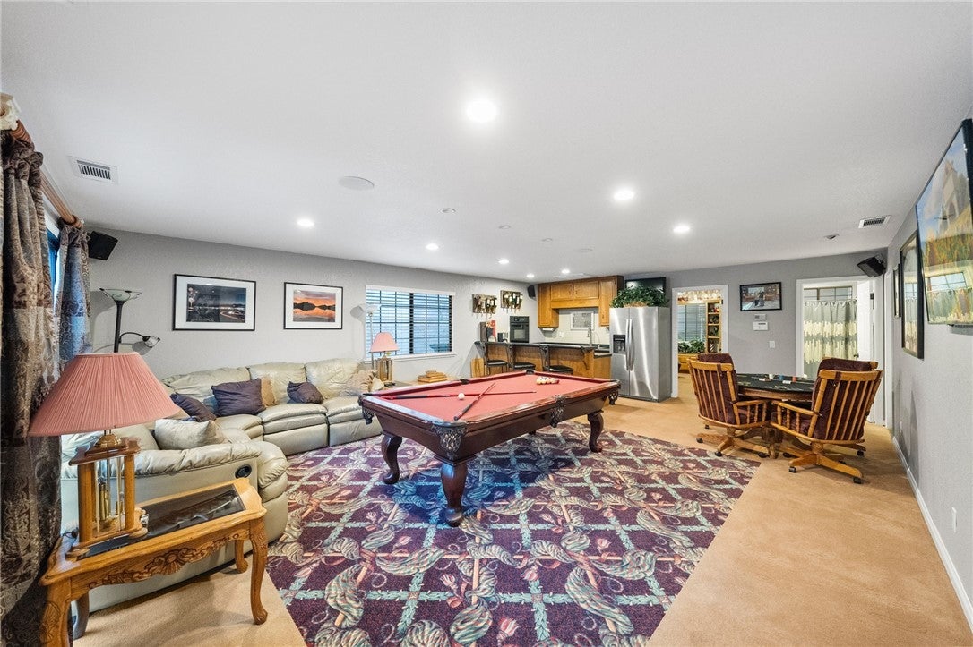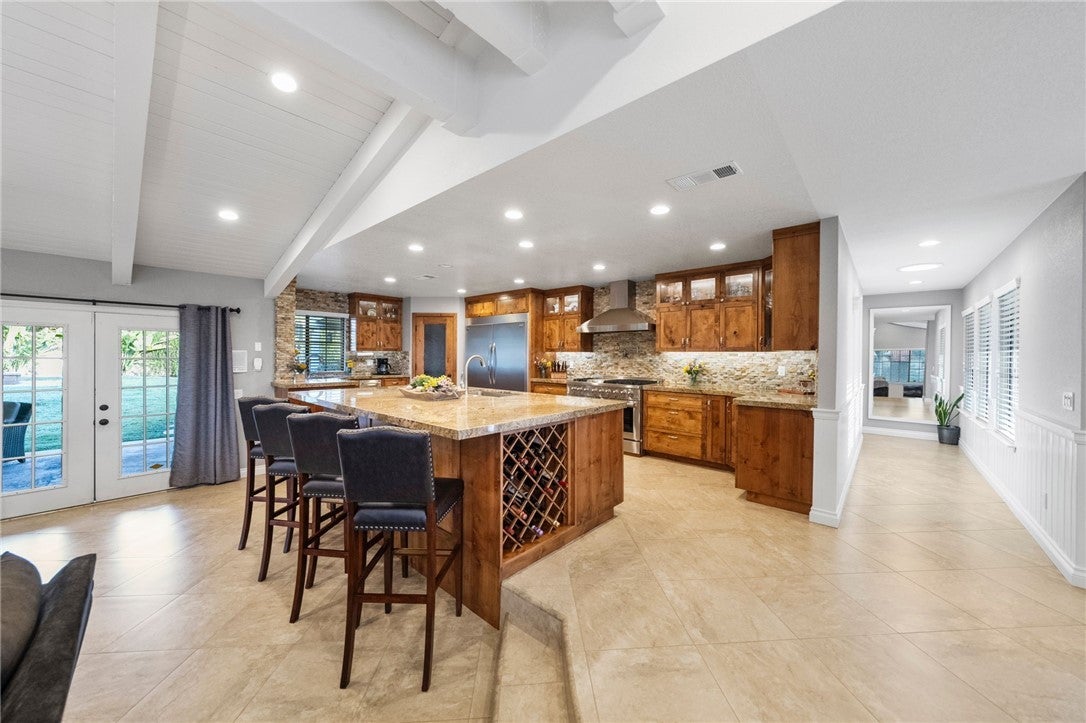 Welcome to this stunning and meticulously upgraded 3,007 sq. ft. custom estate located adjacent to the picturesque orange groves of East Hemet. Nestled on a spacious .46-acre corner lot, this property features four bedrooms, three bathrooms, and a thoughtfully designed ADU—perfect for multi-generational living. Step inside to be greeted by vaulted, beamed ceilings in the living room, creating an inviting and airy ambiance. The heart of the home is the chef’s gourmet kitchen designed for culinary enthusiast, featuring a seamless single-slab granite countertop, a large island with ample storage, custom soft-close cabinetry, a stylish rock backsplash, a pot filler, and premium stainless steel appliances, including a double oven range, two dishwashers, and a trash compactor. A turntable organizer maximizes storage efficiency, while under-cabinet lighting and upper glass cabinets with interior lighting add a touch of elegance. All bedrooms are generously sized, with ceiling fans, walk-in closets, and the capacity to comfortably accommodate king-size beds. The primary suite is a true retreat, boasting crown molding and a spa-like en-suite bath with dual vanities and an oversized shower featuring dual shower heads. Throughout the home, you’ll find a mix of plush carpet and 20” diagonally laid tile flooring, offering both comfort and style.This home is wired for modern convenience, with an intercom system that extends to the exterior ADU, ethernet wiring throughout, and a whole-house attic fan. Energy-efficient upgrades include a tankless water heater, a reverse osmosis system, and fully paid solar system. The ADU is approx. 800 sq. ft. and fully equipped with a kitchenette, bar area, oven, dishwasher, sink, full bathroom, bedroom, and a cozy living space—ideal for guests or extended family. The property’s exterior is equally impressive, featuring a four-car garage with epoxy flooring, built-in cabinetry, a workbench, dog washing station and Wi-Fi-enabled doors. A covered RV parking area includes remote gate access, 220V power, and full sewer and water hookups. Outdoor living is an entertainer's dream with a covered patio, a gas fire pit, and a sparkling salt water pool and Jacuzzi with app-controlled operation and newer equipment. Exterior landscape lighting enhances the ambiance, while the permanent holiday lighting package adds charm year-round. With modern upgrades completed recently, including updated plumbing, electrical, this home is truly move-in ready.