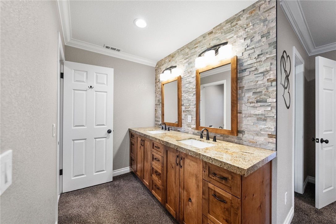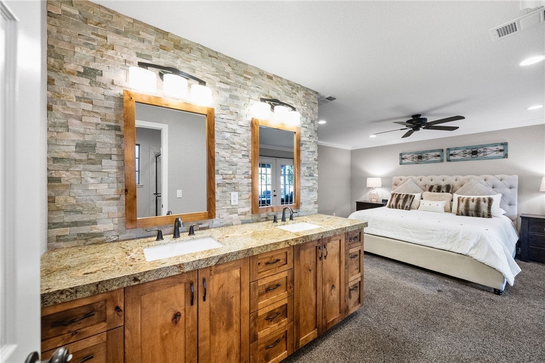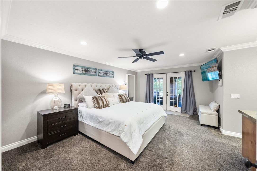Beamed Ceilings, Ceiling Fan(s), Crown Molding, Granite Counters, Intercom, Open Floorplan, Pantry, Pull Down Attic Stairs, Recessed Lighting, Storage, Wired for Data, All Bedrooms Down