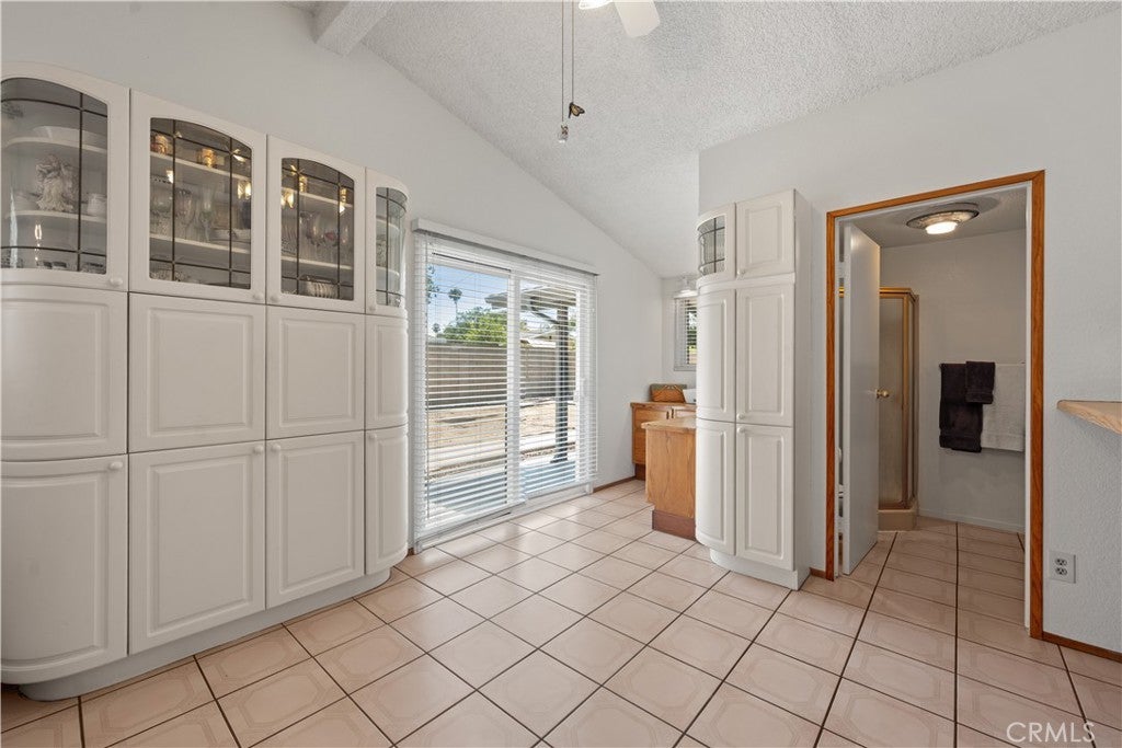 Breakfast Area, Ceiling Fan(s), Recessed Lighting, Bedroom on Main Level, Main Level Primary, Tile Counters