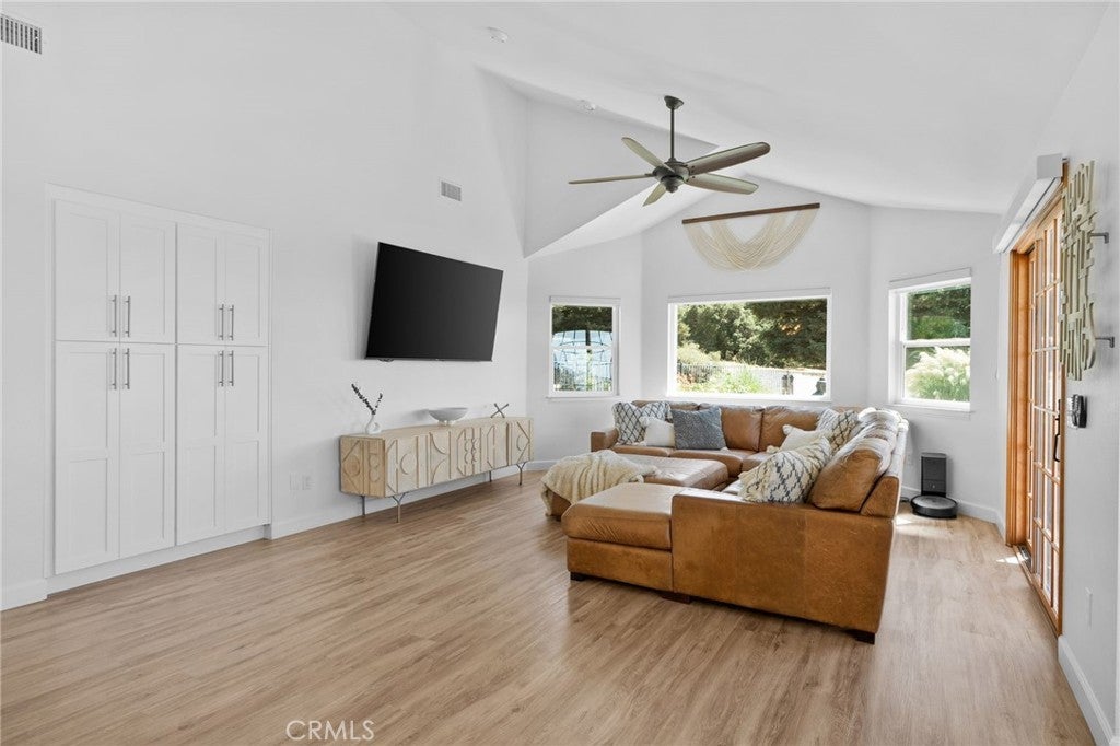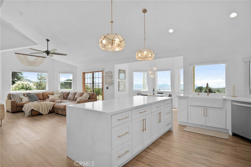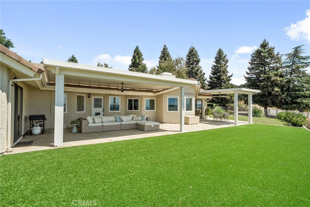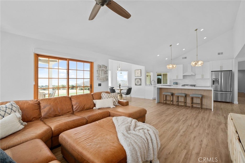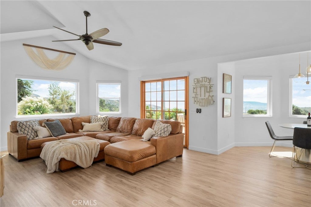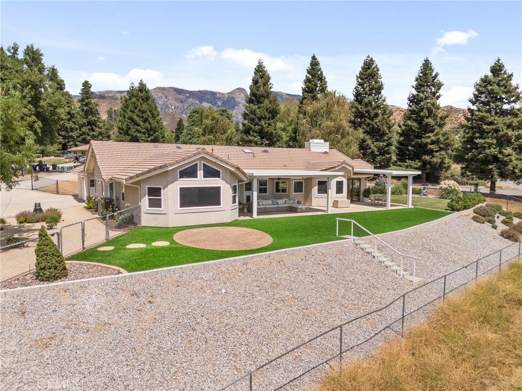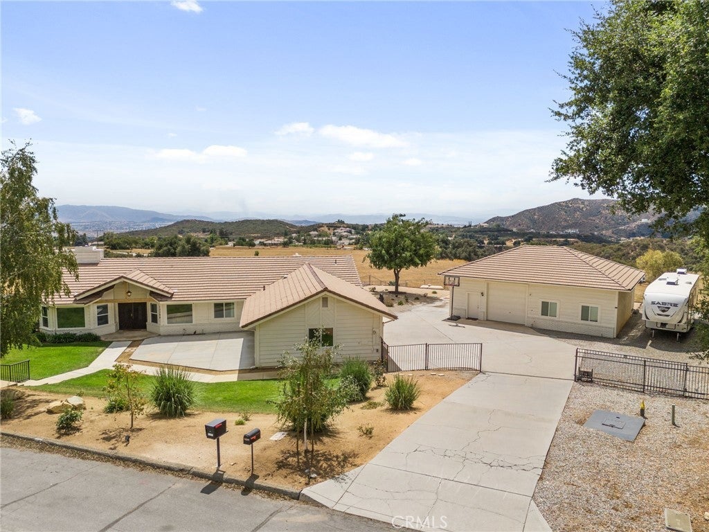Imagine your entire family on one lot! Allowing for togetherness yet offering independance. Now more than ever the need for multigenerational properties is prominent. This home is your solution! With an additional 1200 square foot bonus garage, it can be a game rom, home gym, or potential ADU for grandparents to retire or young adults to gain independance while they save up to fly the nest too. Serenity IS this single level home perched at the top of Yucaipa on the crest of Oak Glen apple country! You must EXPERIENCE Oak Crest in person to appreciate its magic! To feel the warm sun flooding the home with natural light and to hear the hum of nature as you soak in VIEWS of Magnificent Sunsets transcending to Magical Evening City Lights. Everyone will love this 4 bedroom 3 Bath, open-concept layout offering soaring ceilings and expansive windows with two living areas and modern fireplace. Custom blinds, electric sliders, ceiling fans, recessed lighting, new luxury vinyl flooring, windows, cabinetry, and fixtures create a move-in ready experience. The chef’s kitchen features striking quartz countertops with waterfall island, soft-close cabinets, a farmhouse sink, and upgraded appliances. The executive suite is a true retreat, with panoramic windows framing unforgettable sunsets. Its spa-like bathroom showcases elegant tilework, a soaking tub, walk-in shower, dual vanities, and a spacious walk-in closet. Three additional bedrooms feature fresh carpet, generous closets, and ceiling fans. Enjoy Two additional upgraded bathrooms inside as well as laundry room with built-ins, farmhouse sink, and backyard access add style and practicality. Step outside to your backyard oasis with new synthetic turf and two covered patios—perfect for enjoying sweeping sunrise-to-sunset views. Car enthusiasts will love the attached 3-car garage with custom cabinetry and tankless water heater, plus a detached 1,200 sq. ft. garage with epoxy floors, office, bathroom, and drive-through roll-up doors. RV and boat parking with hookups and a dump station, all privately gated, ensure every need is met. Pristine landscaping enhances curb appeal, while the expansive lot offers room to grow—whether adding an ADU, cultivating a garden, or creating your own farmstead. Located in prime Upper Yucaipa, minutes from Oak Glen’s apple country, this home offers elevated mountain living with modern convenience. Don’t miss your chance to call it your own—schedule a private showing today.