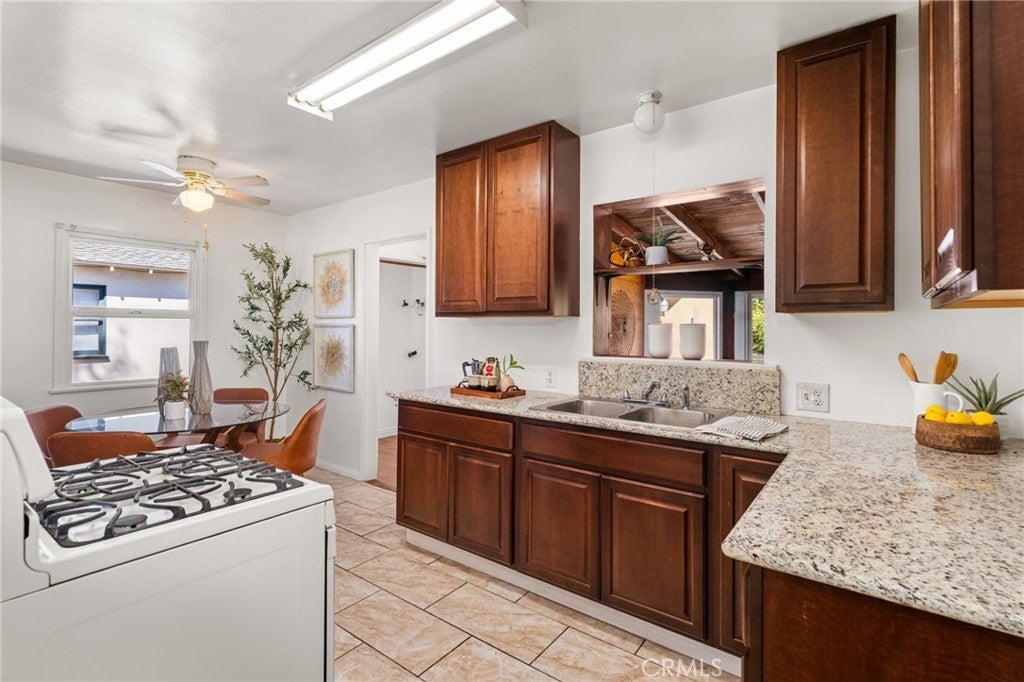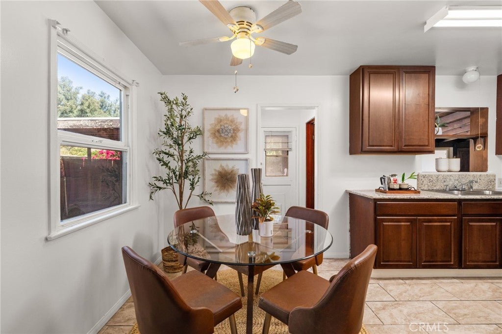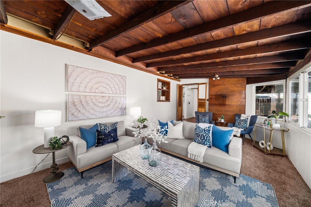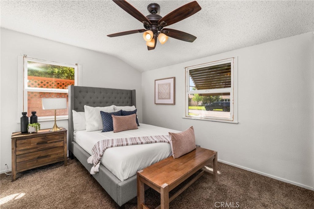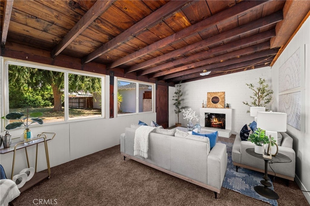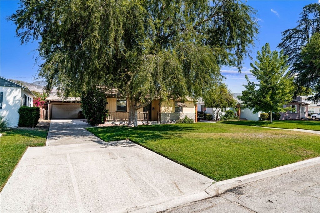 Charming post war home on a quiet, tree lined street with a sizable yard, detached two car garage, and carport - minutes from Starbucks and Stater Bros! Located in the Arrowhead neighborhood, just West of Arrowhead Country Club, this single story two bedroom home features a great layout. Enter past the front porch and into the living room - new paint and new carpets throughout. There is a dining area just off the kitchen with solid surface countertops. Bedrooms are opposite, and serviced by a full bathroom with vintage charm. There is indoor laundry, and a spacious family room off of the back with a fireplace. The large yard is fenced, and has great potential for an ADU in the back. There are mountain views as well. The water heater is brand new, and the windows were upgraded to dual pane vinyl.