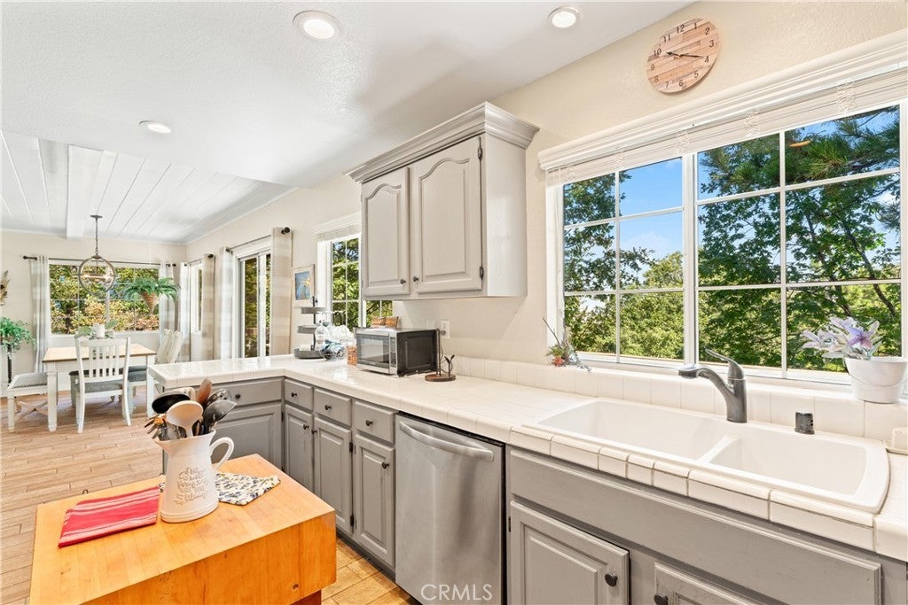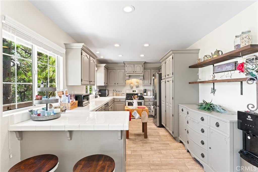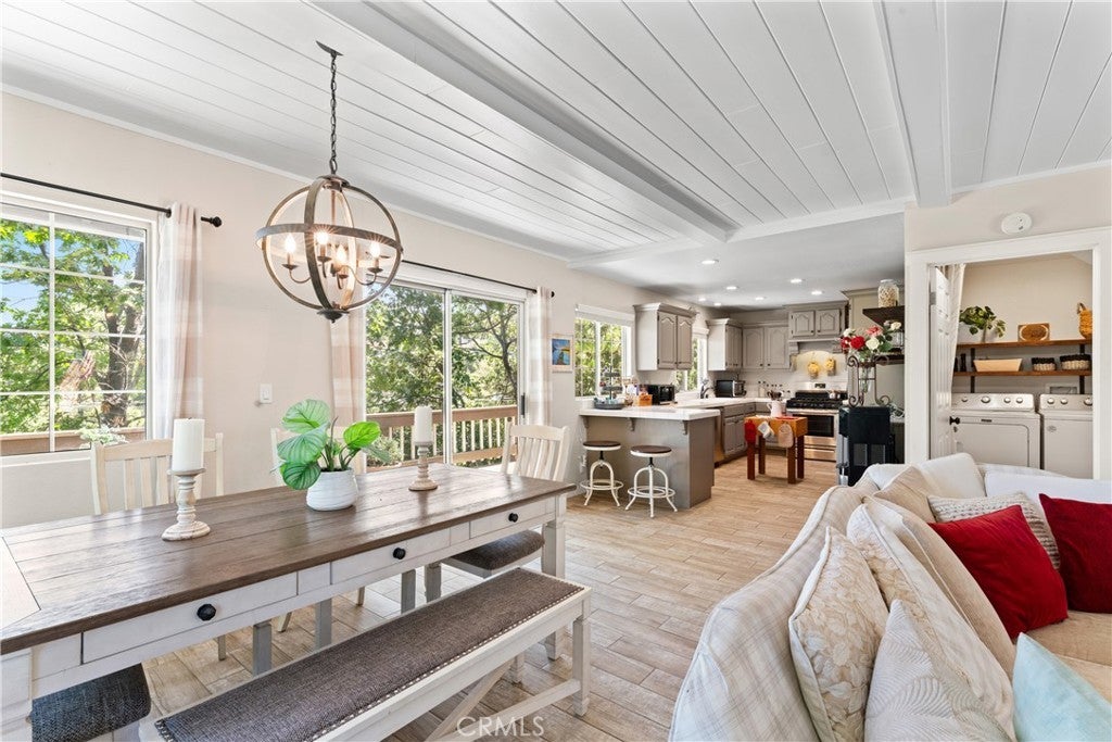 Pride of ownership throughout, as clean as they come!! Full lake rights to private Lake Arrowhead and remodeled in 2020 just before Sellers purchased. 1164 Klondike offers a light and bright ambiance with a uber functional floorplan: primary en suite and laundry room conveniently located on the entry level! The entire front of this 8,500 sq ft parcel is flat, boasting a massive 71’x31’ U shaped concrete driveway perfect for multiple guest parking, RV or boat parking! Enjoy family BBQs from a large rear deck beneath a canopy of Oak Trees and beautiful panoramic views of the North East high desert landscape. Plenty of storage via a shed directly accessed from driveway and basement currently set up as a workshop. Upon entry you are greeted with beautifully tiled flooring throughout the main living level. A soothing color palette blankets the walls and tongue and groove open beamed ceiling. Enjoy chilly winter nights nestled up next to a cozy river rock wood burning fireplace. Custom cabinetry offers plenty of storage within the spacious kitchen equipped with stainless appliances and breakfast bar top. LED lighting illuminates the tastefully selected hardware and lighting fixtures. Entry level offers a spacious primary en suite with ¾ bathroom, powder room bath/laundry room. Upstairs hosts 2 guest bedroom en suites(both with full baths) each with tall vaulted ceilings and cozy reading nook dormers. New roof and 96% HVAC system with central A/C installed when remodeled. Located off a quiet low traffic road Grass Valley Alley. There’s a staircase down to Klondike for more curbside parking/walk up access if needed. This property has been well loved by the Sellers and surely a front runner of its price range. Just in time for holidays in the mountains, schedule your private tour today!
