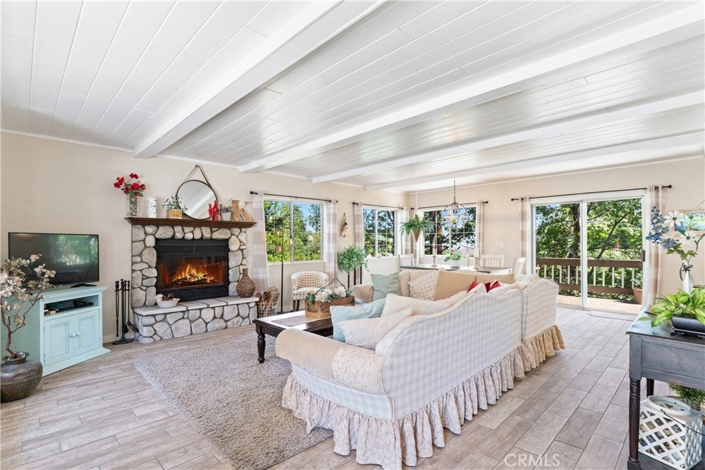 Beamed Ceilings, Breakfast Bar, Ceiling Fan(s), Living Room Deck Attached, Pantry, Storage, Bedroom on Main Level, Main Level Primary, Primary Suite