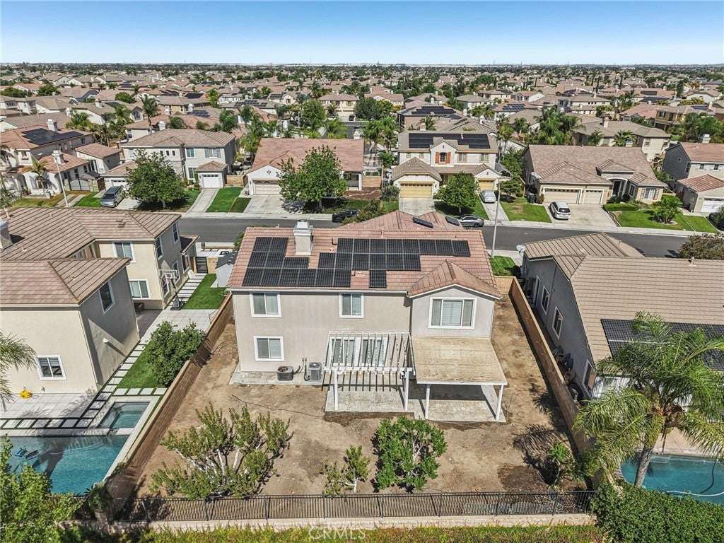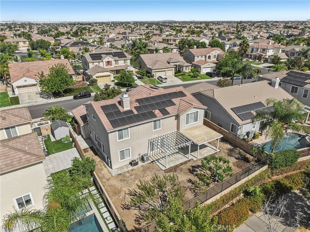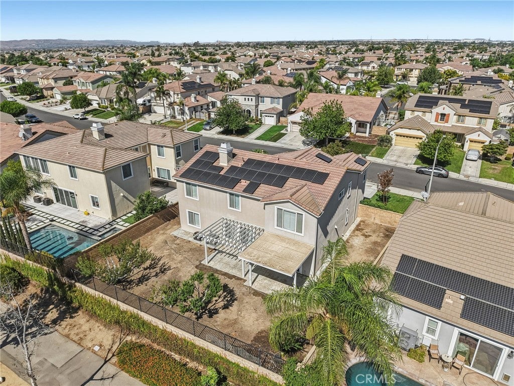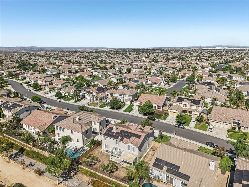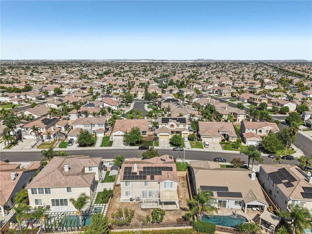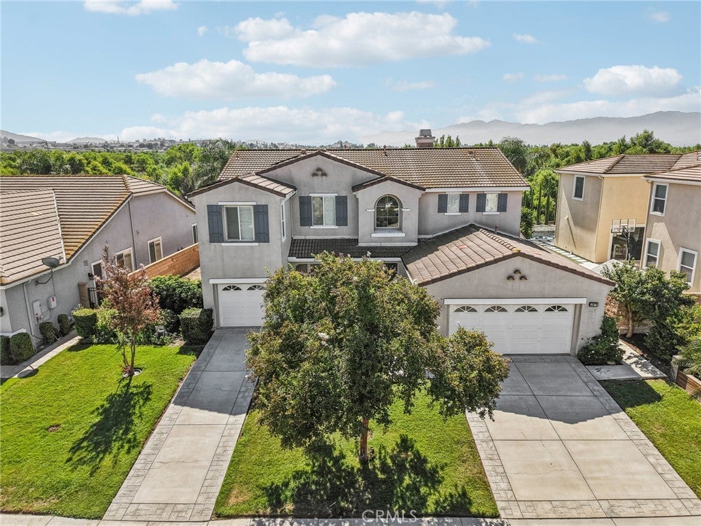Unmatched Views & Energy Independence! This Eastvale home is a true standout, offering style, space, VIEWS, and modern efficiency with paid-off solar panels and two Tesla backup batteries—providing peace of mind, energy savings, and reliable power. From the moment you arrive, the curb appeal impresses with a lush green lawn and manicured landscaping. Inside, you’re welcomed by a tiled entry and an open-railing staircase. To the left is a formal dining room that can double as a home office or playroom, and to the right, a formal living room. At the heart of the home is the expansive family room with a cozy fireplace and media niche, seamlessly connected to the open kitchen. The chef’s kitchen offers abundant cabinetry, granite countertops, a built-in cooktop, double oven, large center island, and breakfast nook. Sliding glass doors lead to the backyard for effortless indoor-outdoor living. The main floor also includes a bedroom and full bathroom, and a laundry room with a sink and cabinetry. Upstairs, the primary suite captures sweeping views of the Santa Ana River and surrounding greenbelt. The spa-inspired bathroom includes dual sinks, a soaking tub, walk-in shower, and a spacious walk-in closet. Four additional bedrooms and two more bathrooms provide plenty of room for family and guests. Plantation shutters throughout add a touch of elegance. The backyard is designed for both relaxation and entertaining, with a covered patio, stamped concrete, a large grassy area, and breathtaking greenbelt views that make every day feel serene. With its unobstructed views, fully paid-off solar system, and two Tesla Powerwall batteries, this home combines natural beauty with energy-smart living—a rare find that delivers comfort, savings, and sustainability.
