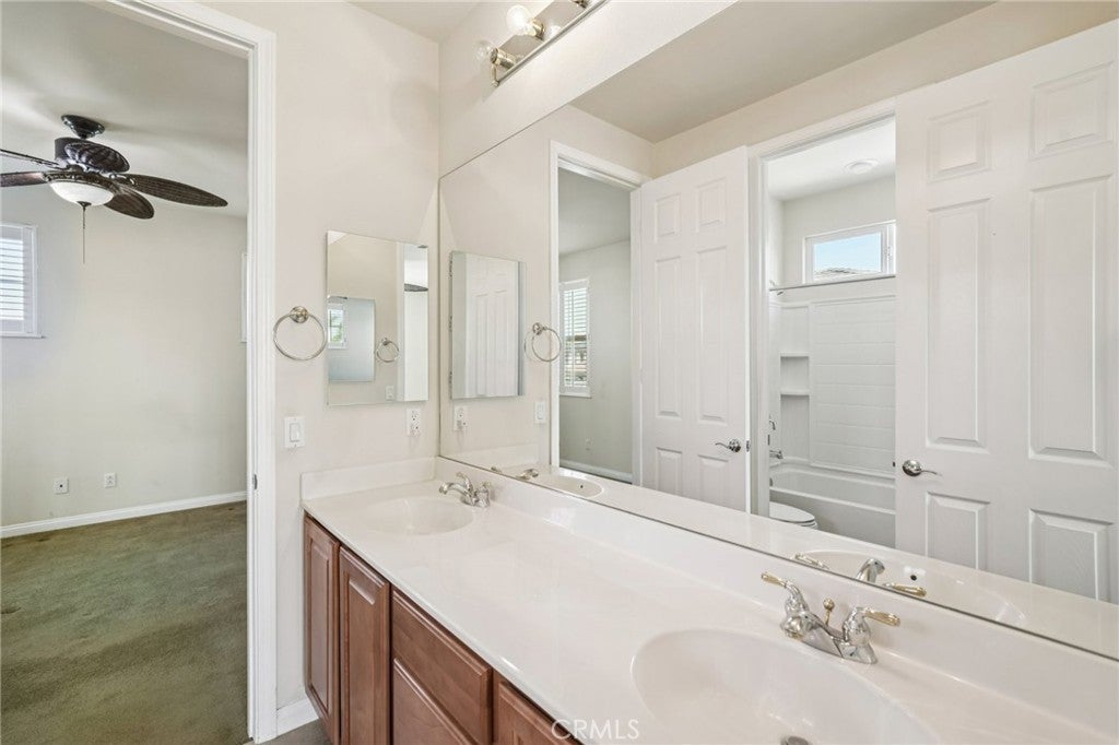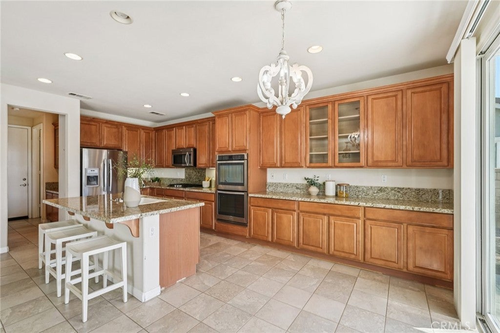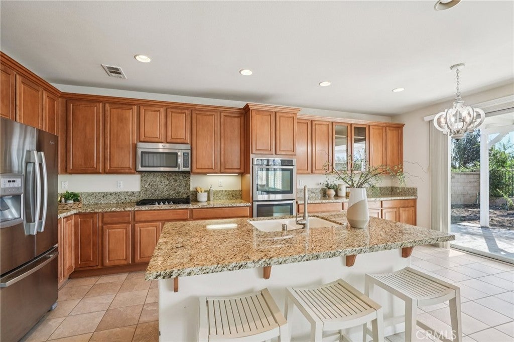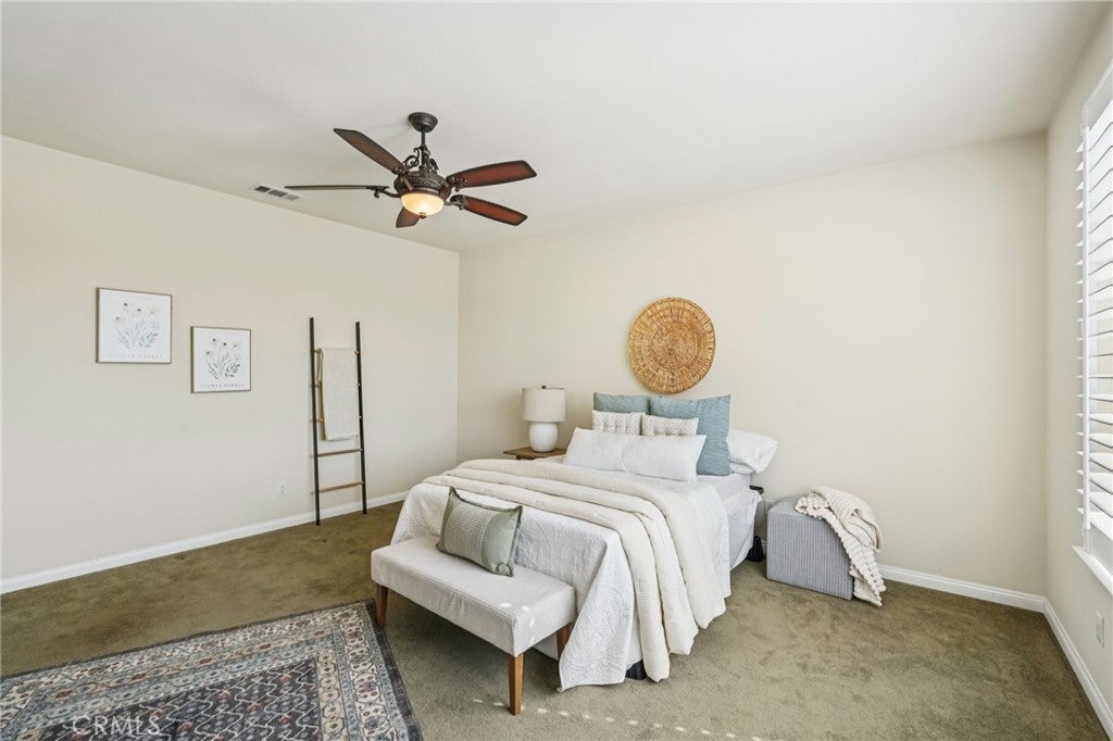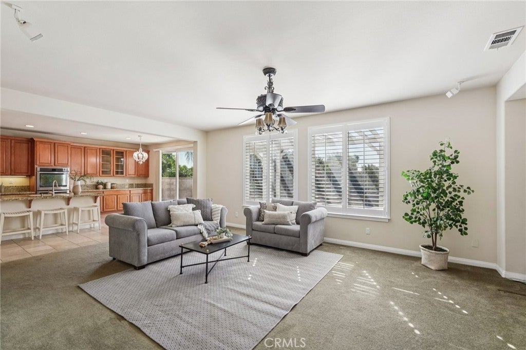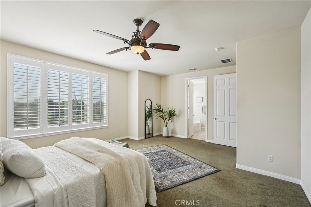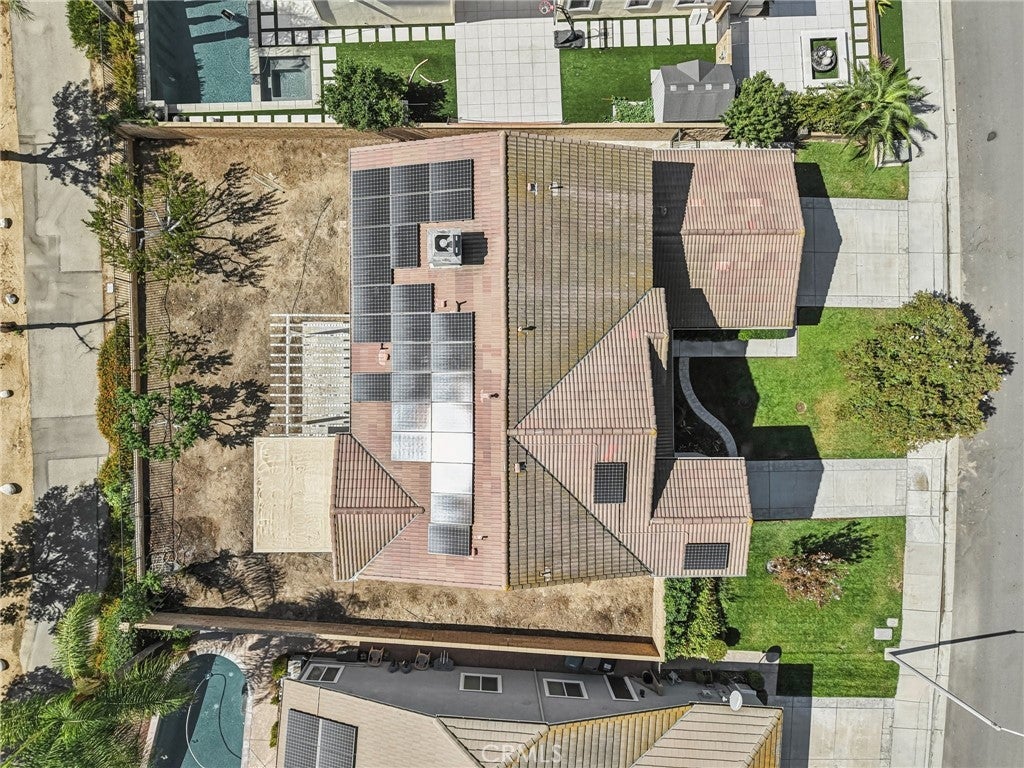 Unmatched Views & Energy Independence! This Eastvale home is a true standout, offering style, space, VIEWS, and modern efficiency with paid-off solar panels and two Tesla backup batteries—providing peace of mind, energy savings, and reliable power. From the moment you arrive, the curb appeal impresses with a lush green lawn and manicured landscaping. Inside, you’re welcomed by a tiled entry and an open-railing staircase. To the left is a formal dining room that can double as a home office or playroom, and to the right, a formal living room. At the heart of the home is the expansive family room with a cozy fireplace and media niche, seamlessly connected to the open kitchen. The chef’s kitchen offers abundant cabinetry, granite countertops, a built-in cooktop, double oven, large center island, and breakfast nook. Sliding glass doors lead to the backyard for effortless indoor-outdoor living. The main floor also includes a bedroom and full bathroom, and a laundry room with a sink and cabinetry. Upstairs, the primary suite captures sweeping views of the Santa Ana River and surrounding greenbelt. The spa-inspired bathroom includes dual sinks, a soaking tub, walk-in shower, and a spacious walk-in closet. Four additional bedrooms and two more bathrooms provide plenty of room for family and guests. Plantation shutters throughout add a touch of elegance. The backyard is designed for both relaxation and entertaining, with a covered patio, stamped concrete, a large grassy area, and breathtaking greenbelt views that make every day feel serene. With its unobstructed views, fully paid-off solar system, and two Tesla Powerwall batteries, this home combines natural beauty with energy-smart living—a rare find that delivers comfort, savings, and sustainability.