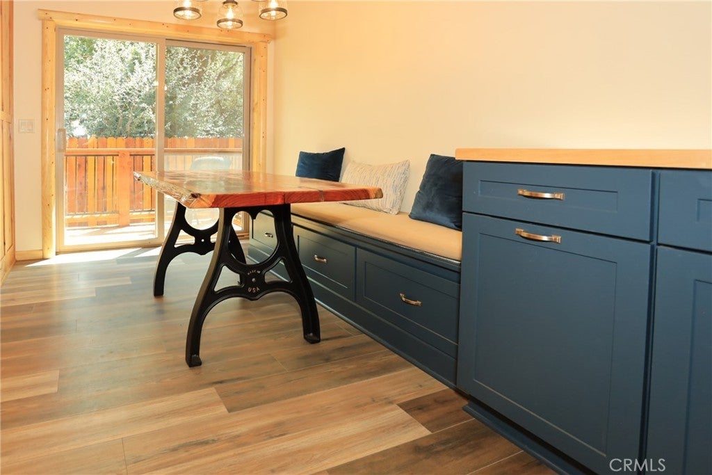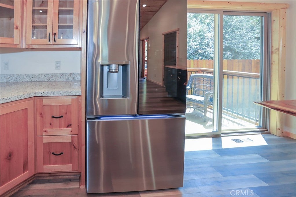 Welcome to this beautifully crafted 3-bedroom, 2-bath mountain home located in the peaceful Big Bear Pine Wood subdivision, one of the area’s most desirable residential neighborhoods. Thoughtfully designed to blend rustic mountain charm with modern upgrades, this home features an inviting open-concept floor plan ideal for both full-time living and entertaining. The spacious kitchen is a true centerpiece, offering stainless steel appliances, custom cabinetry, and granite countertops, perfect for hosting après-ski gatherings or family meals. An artisan-built redwood dining table with custom seating adds a unique, handcrafted touch that complements the mountain aesthetic. Both bathrooms are generously sized and upgraded with Bluetooth-enabled exhaust fans, adding modern convenience and comfort. A 2-car attached garage provides ample parking, storage, and easy winter access. The fully fenced property features a 6-foot redwood privacy fence, creating a serene and secure outdoor retreat. A thoughtfully planned combination of hardscape and landscaping allows for a rare 360-degree walk-around, ideal for enjoying Big Bear’s fresh mountain air year-round. Located just minutes from Big Bear Lake, ski resorts, hiking trails, shopping, and dining, this home is perfect as a primary residence, vacation getaway, or investment property. Don’t miss this exceptional opportunity to own a move-in-ready home offering the best of Big Bear mountain living with modern comfort.