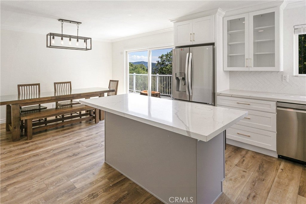 Welcome to 27535 St. Bernard Lane, where mountain charm meets modern comfort. Purchased last year for $995,000, the seller is now offering this home at $925,000—below their purchase price, making it one of the best values in Lake Arrowhead! This spacious retreat features 4 bedrooms, 3 bathrooms, and 2,834 sq. ft. of living space on a generous 9,000 sq. ft. lot with an attached 2-car garage. Best of all, it comes with lake rights to enjoy the private shores of Lake Arrowhead. The home offers the ease of a level-entry design with a flat front yard, making access simple year-round. Located on a quiet, less-traveled street, it provides a sense of privacy while still being in a central location—just minutes to the grocery store, schools, hospital, the lake, and Lake Arrowhead Country Club. Outdoor enthusiasts will also love the proximity to scenic hiking trails and the surrounding national forest. Plus, this side of the lake is known for being bright and cheery year-round thanks to ample sunshine. Step inside to discover warm wood floors, recessed lighting, and abundant natural light throughout. The inviting living room centers around a striking stone fireplace, perfect for relaxing with family and friends. The open flow leads seamlessly into the dining area and a beautifully updated chef’s kitchen with quartz countertops, modern appliances, and a stylish island with breakfast bar and microwave drawer. The home offers four spacious bedrooms and three updated bathrooms, including a primary suite with peekaboo lake views. The lower-level primary bath boasts a step-in shower with dual shower heads, designed for spa-like relaxation. Upstairs, a large family room provides extra space for leisure, games, or a media lounge. Outdoor living shines here—step onto the deck to take in serene views, cozy up around the firepit under the stars, or enjoy wintertime lake views from your own backyard. Nestled near the peaceful North Bay, this property combines serenity, accessibility, and adventure—all in one. Don’t miss this rare opportunity to own a lake-rights home at such incredible value—schedule your private showing today and experience the lifestyle that 27535 St. Bernard Lane has to offer!