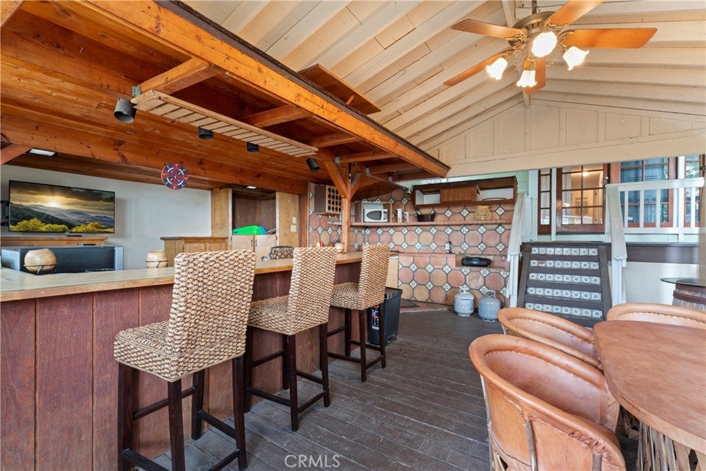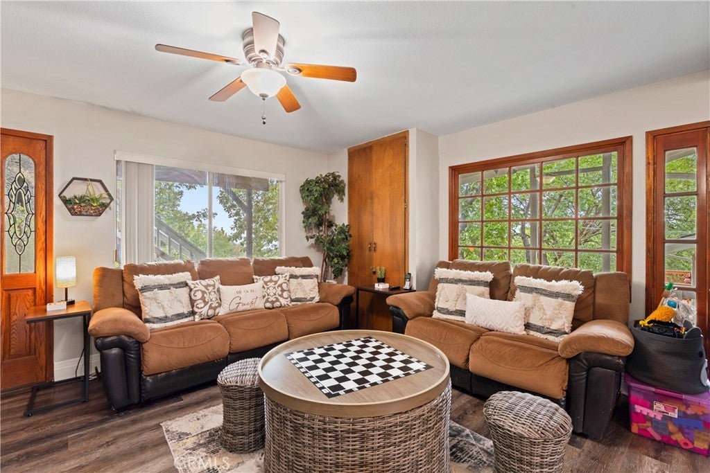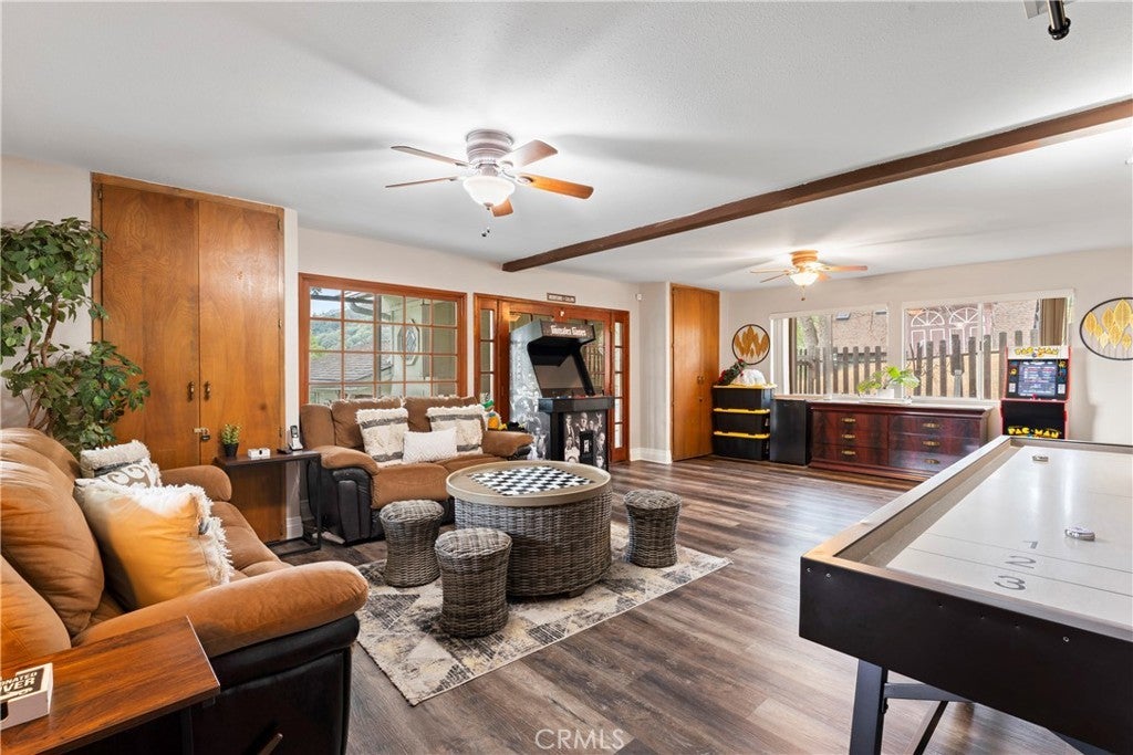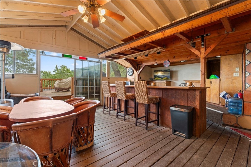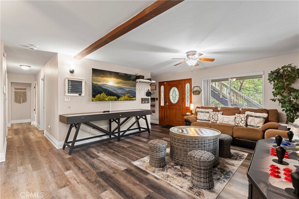 Your Mountain Retreat Awaits. Dreaming of a peaceful mountain getaway with room for everyone? This inviting home blends warmth, comfort, and breathtaking views. Step inside and unwind by the cozy brick fireplace, the perfect spot for winter evenings after a day outdoors. The main level offers a spacious game room, three bedrooms, one and a half baths, and brand new laminate flooring - ideal for family gatherings or weekend guests. Upstairs, light floods into the expansive living and dining area, designed with sweeping vistas to frame your every day. The master suite opens onto a private deck, where you can sip your morning coffee while soaking in the mountain air. A guest room and additional full bath add even more flexibility for family and friends. The heart of the home, the kitchen, features freshly painted cabinets, granite countertops, and a generously sized eating island, perfect for both casual meals and entertaining. Recent upgrades include a new deck, roof and paint. Outdoor living truly shines here with a large entertainment area complete with an outdoor kitchen, bar, and multiple balconies - your own private setting for unforgettable summer evenings under the stars. Centrally located near Lake Gregory, Lake Arrowhead, and popular mountain attractions, this home delivers the serene mountain lifestyle you’ve dreamed of, with convenience never far away.
