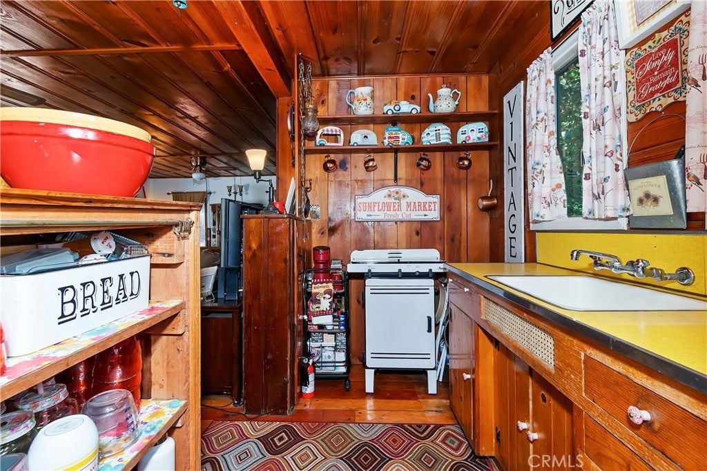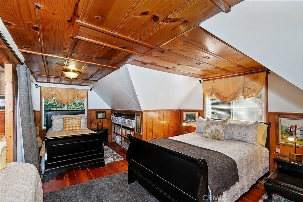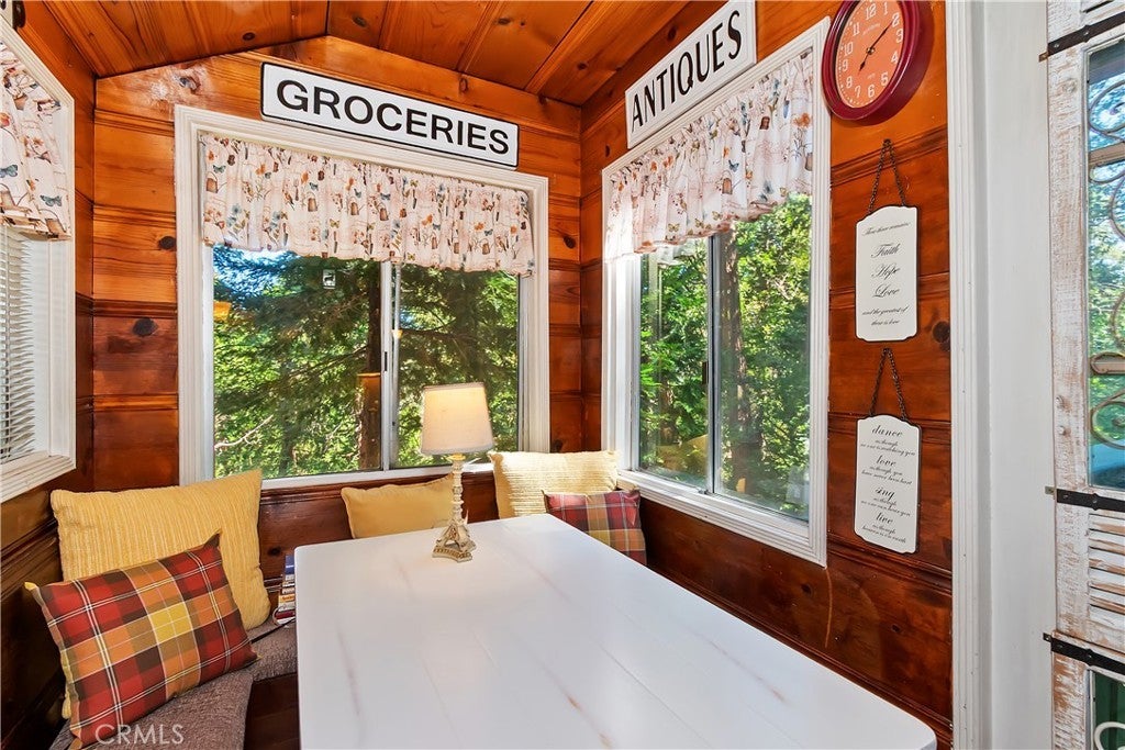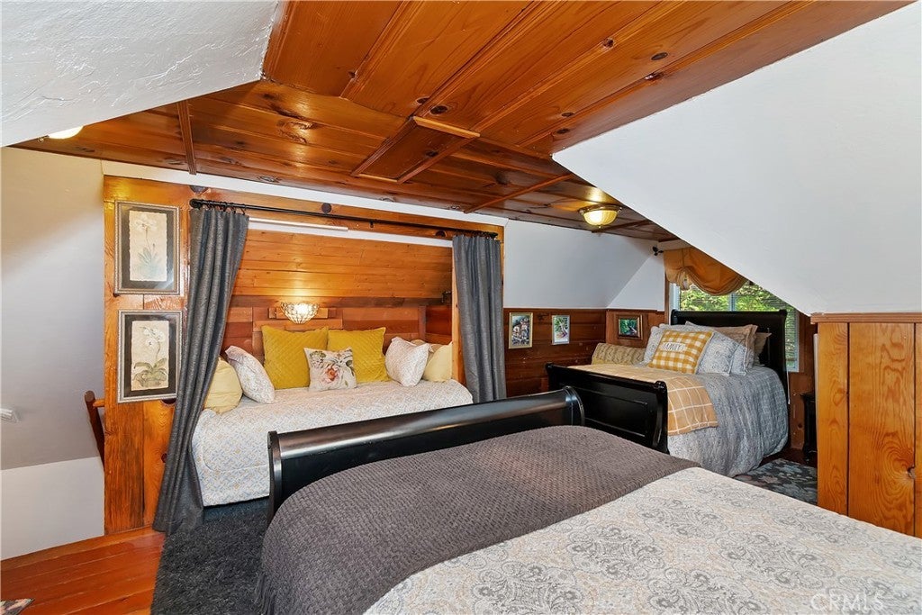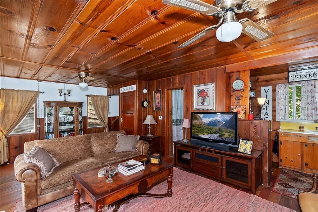 Discover this vintage mountain charmer—a cozy one-bedroom, one-bath cottage with original hardwood flooring, as well as cedar walls and ceilings, that bring warmth and character throughout. Plenty of large windows in the living room and dining area allow you to enjoy the inviting outside views. Upstairs is a large 1 bedroom space. Perfect as a mountain getaway or full-time retreat, this home offers the charm of yesteryear with the convenience of a great location. Just minutes from downtown Crestline, Lake Gregory, shopping, dining, and the beautiful Lake Gregory Regional Park, you’ll enjoy easy access to all the area has to offer. This vintage cabin sits on a generous, gently sloping wooded lot. Whether you’re seeking a weekend escape or a quaint year-round residence, this cottage is the mountain retreat you’ve been looking for!