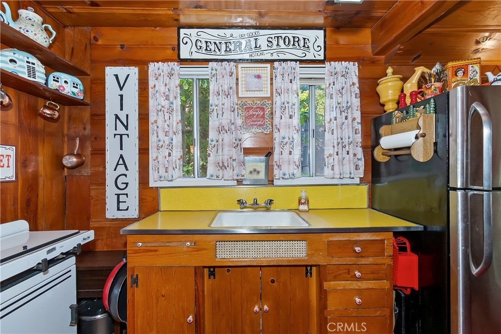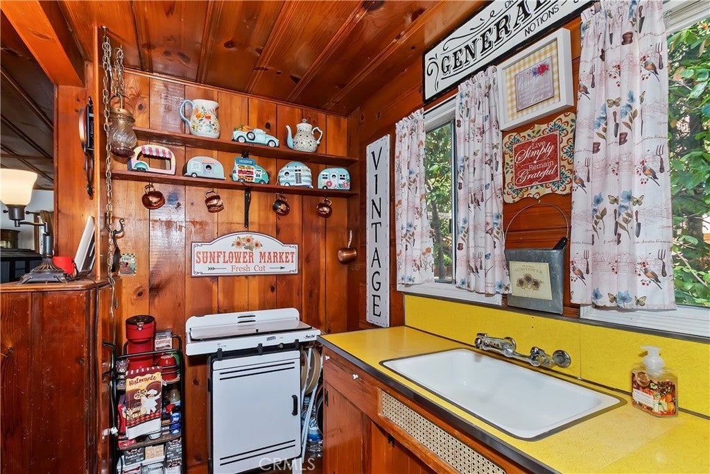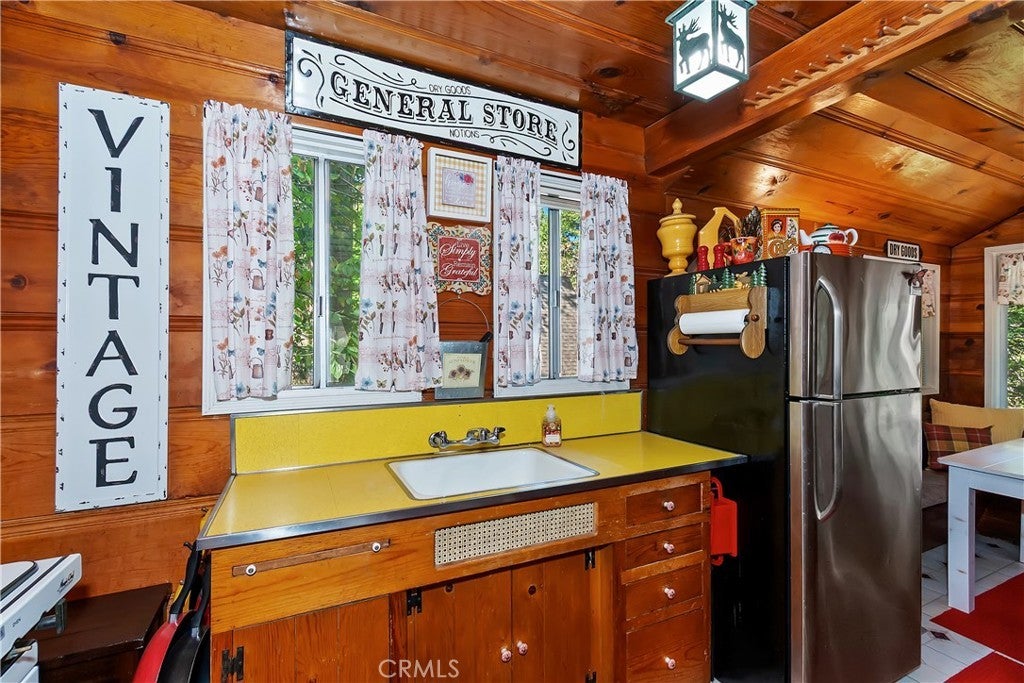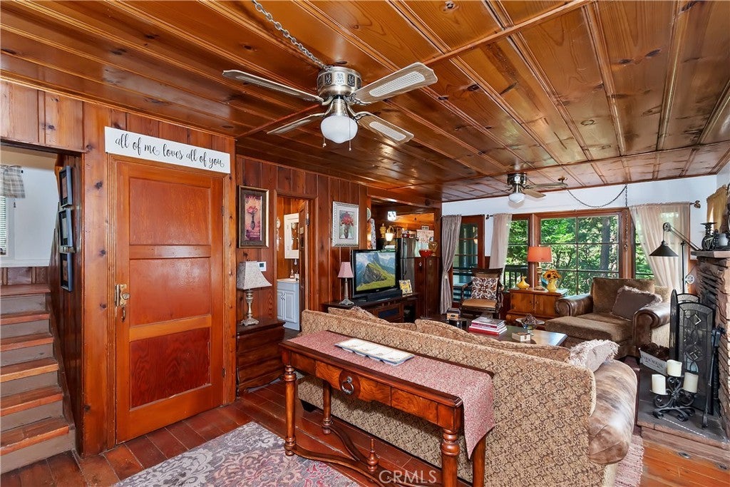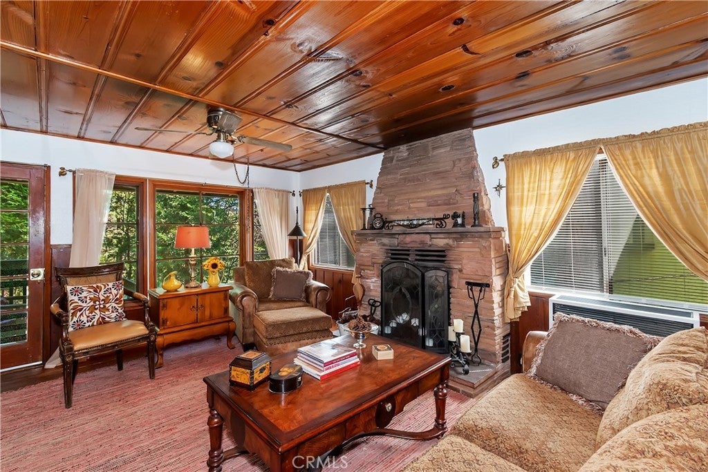 Discover this vintage mountain charmer—a cozy one-bedroom, one-bath cottage with original hardwood flooring, as well as cedar walls and ceilings, that bring warmth and character throughout. Plenty of large windows in the living room and dining area allow you to enjoy the inviting outside views. Upstairs is a large 1 bedroom space. Perfect as a mountain getaway or full-time retreat, this home offers the charm of yesteryear with the convenience of a great location. Just minutes from downtown Crestline, Lake Gregory, shopping, dining, and the beautiful Lake Gregory Regional Park, you’ll enjoy easy access to all the area has to offer. This vintage cabin sits on a generous, gently sloping wooded lot. Whether you’re seeking a weekend escape or a quaint year-round residence, this cottage is the mountain retreat you’ve been looking for!