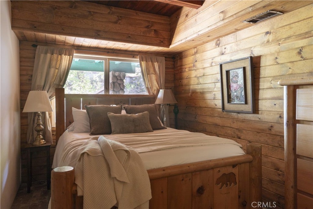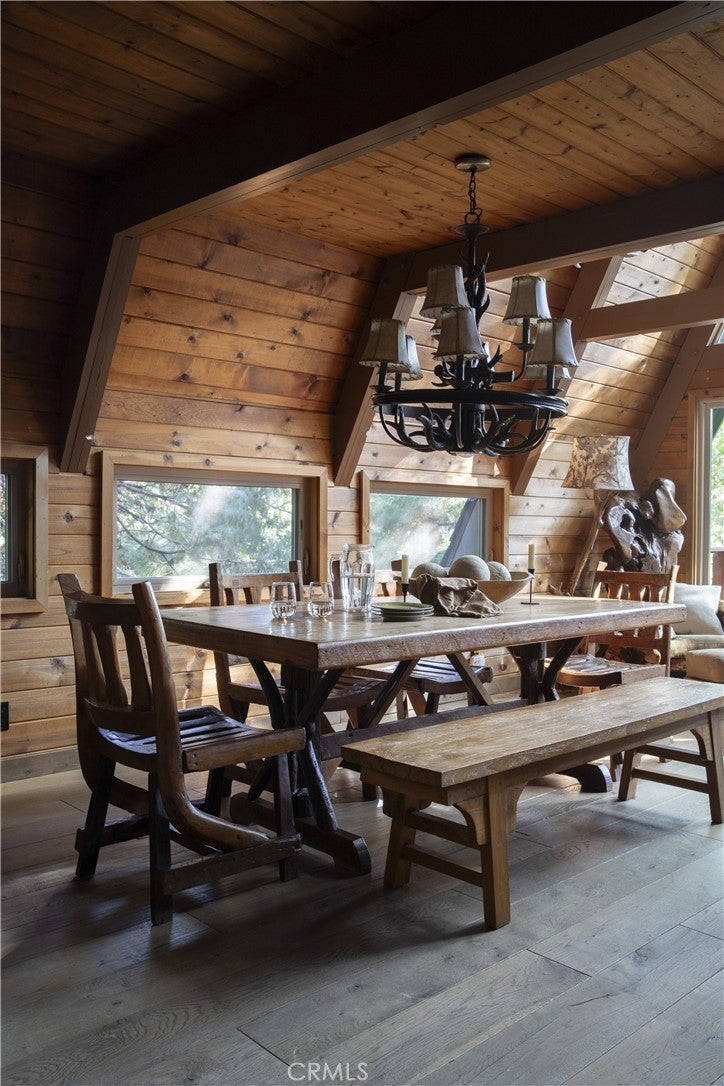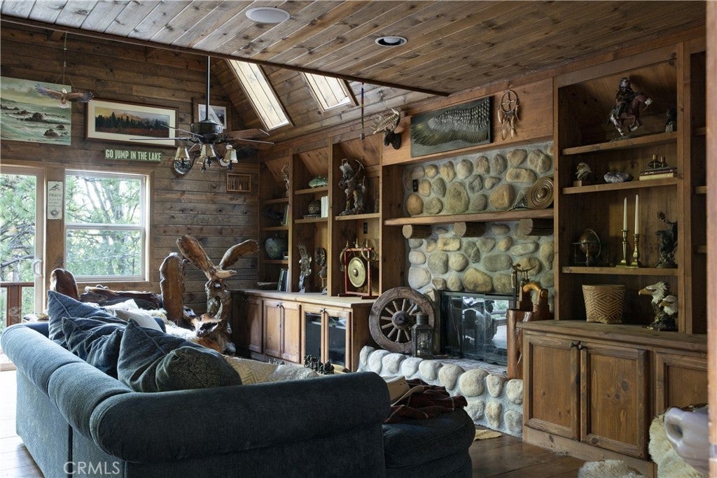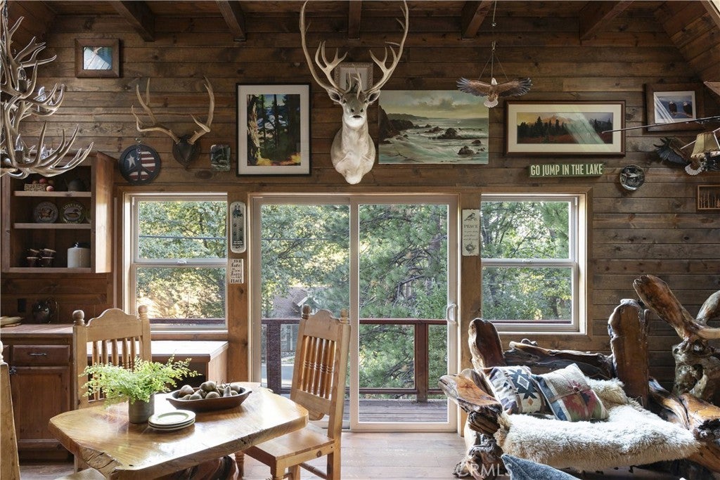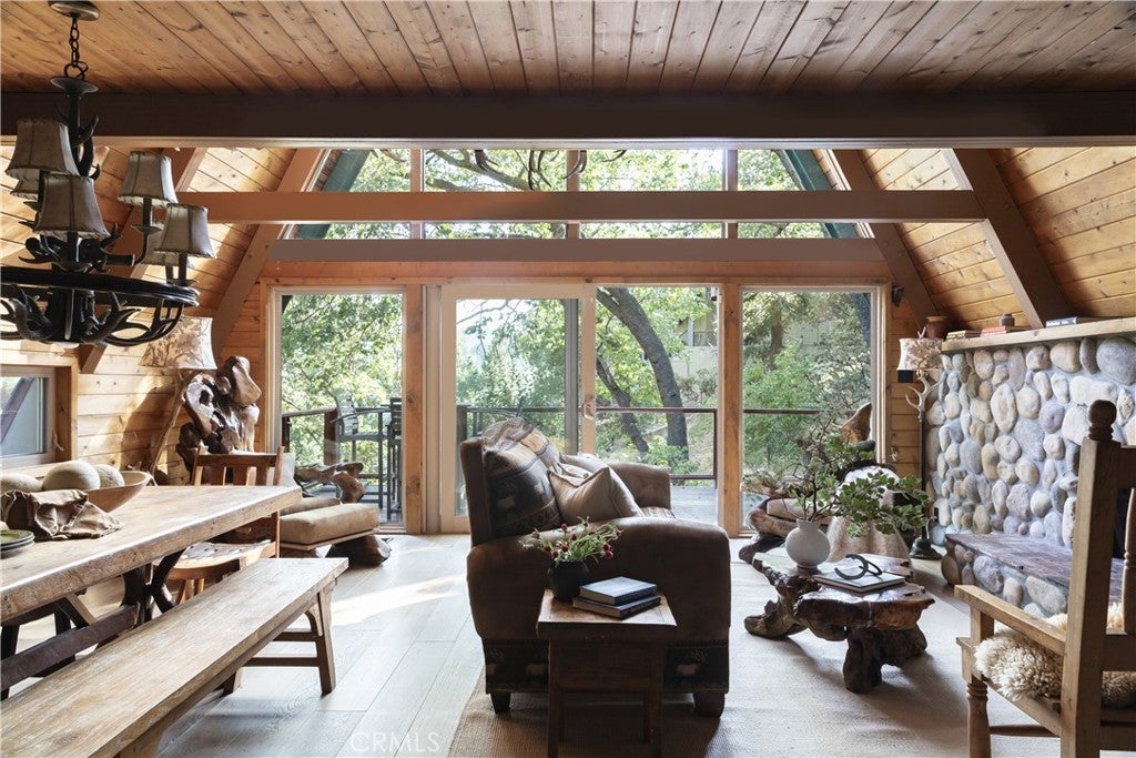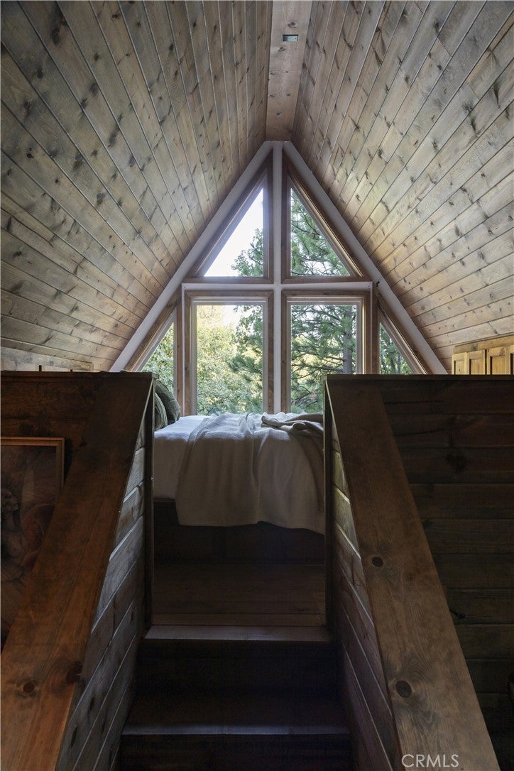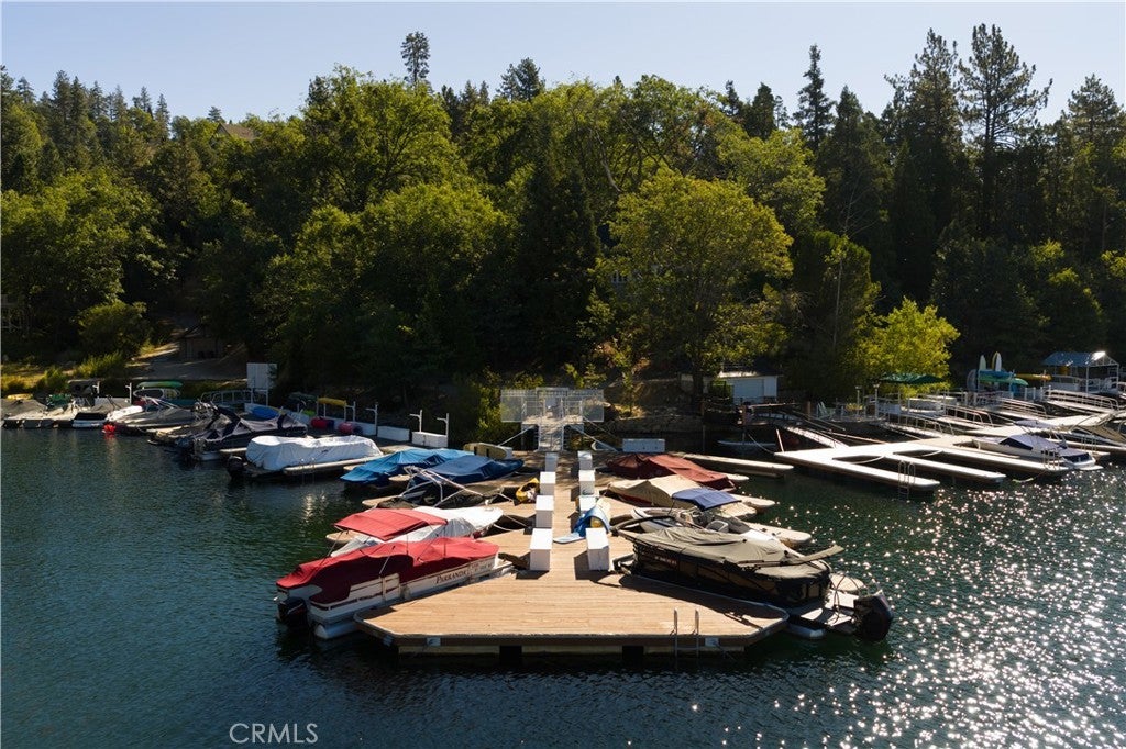 Two iconic A-frames on one property, nestled just off the waters of coveted North Bay. A seasonal creek winds between the cabins, with a treehouse tucked out back, creating a setting that feels private yet keeps you close to everything the lake has to offer. This first tier home comes with the ultimate lake package: a multiple dock slip (end slip), boat, and rare level access straight to the water. No endless stairs, just an easy walk to the dock. Step inside the main house and you’re in a true mountain lodge. Rustic wood paneling, walls of glass, exposed beams, and stone accents bring the outdoors in. The home offers 3 bedrooms, 2 baths, decks on both sides, and a jacuzzi with a peek of the lake, perfect for tranquil evenings. Follow the stairs down through the expansive outdoor patio to the guest A-frame, where you’ll find 1 bedroom, 1 bath, a cozy living space, and a two-car garage underneath for convenience. With wood paneling, large windows, a small deck off the living room, and a loft-style bedroom, it carries the same rustic charm. Outdoors, a spacious patio and outdoor kitchen set the scene for entertaining or simply slowing down and taking in the mountain air under the trees. Iconic architecture. Rare lake access. A lifestyle package that doesn’t come along often. This is Lake Arrowhead at its best.