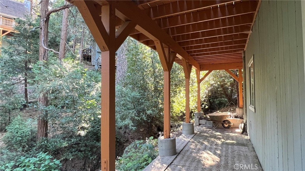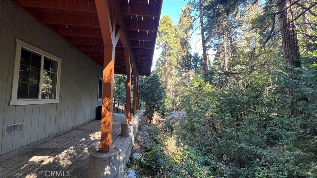 Charming Cabin-Style Home Near Lake Gregory This beautiful hillside home is just minutes from Lake Gregory and offers the perfect mountain retreat. Situated on a spacious lot with potential for an ADU, the property is surrounded by tall, mature pines and younger trees, creating a serene natural setting. From the driveway, a set of beautifully crafted stairs leads to the second-floor entrance. Inside, the living room features an elegant, high-end wood-burning fireplace. Decks wrap around the east and south sides, ideal for relaxing or entertaining. The third floor includes all three bedrooms, decks leading to outside close to tall trees, providing comfort and privacy. Additional features include a large one-car garage, a large storage room, and a cabin-style design that blends seamlessly with the forested surroundings. Conveniently located near downtown Crestline, Lake Gregory, Lake Arrowhead, and only 30 minutes to Big Bear.
