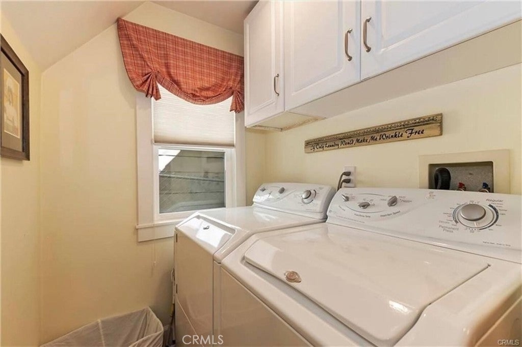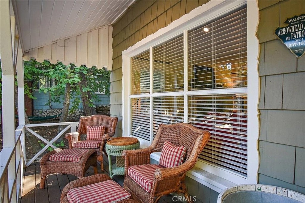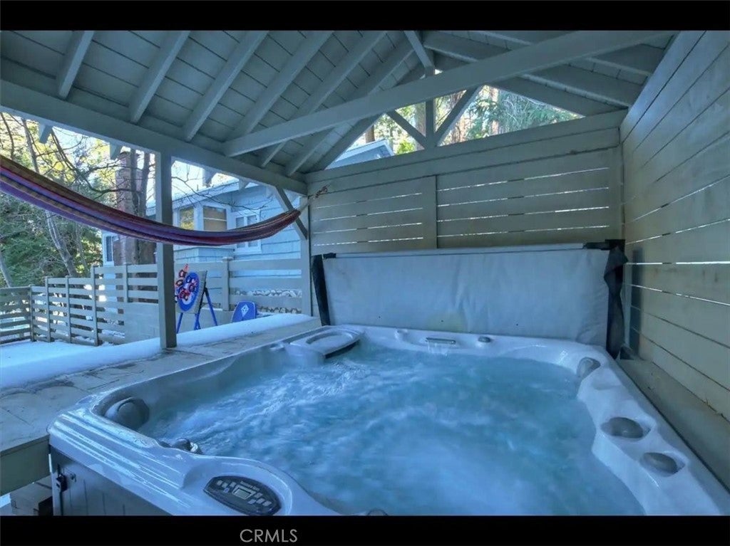 For Rent! Welcome to a charming fully furnished oasis located in the Arrowhead Villas of Lake Arrowhead. This delightful getaway is situated on a corner lot, offering plenty of parking and convenient walking distance to the Tudor House, known for its concerts, plays, and events. The main floor features a cozy living room, a well-equipped kitchen, a dining area, one bedroom, a 3/4 bath, and a laundry room. Upstairs, you'll find two beautiful rooms, each with a full bath en suite, providing comfort and privacy. The custom-fenced yard is perfect for relaxation and entertainment, boasting a newly built gazebo and spa. Equipped with an on-demand water heater, there is no shortage of hot water. Enjoy the serene surroundings and the convenience of modern amenities in this charming Arrowhead Villas home. Photos of Lake Arrowhead are drone shots and do not reflect a view from the property.