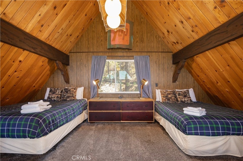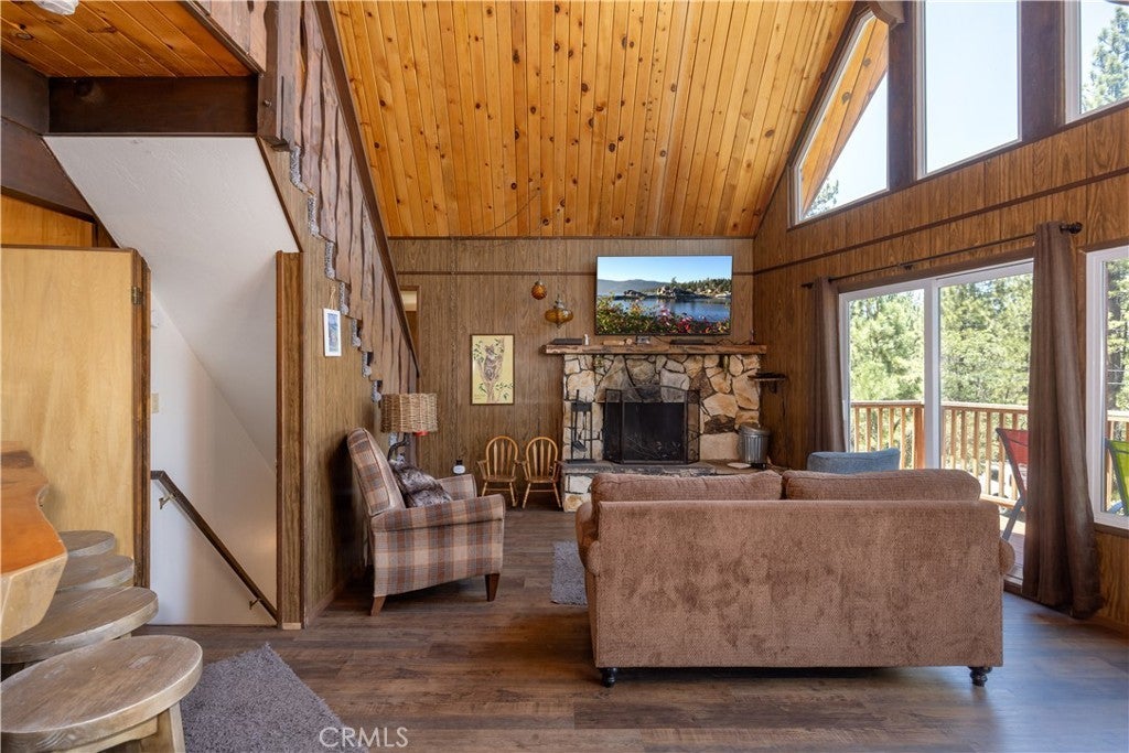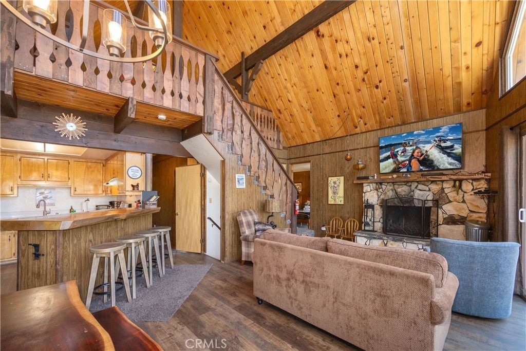 A classic mountain A-frame with a touch of chalet charm, this 3-bedroom, 2-bath home is positioned just west of Big Bear Village, putting the lake, dining, shopping, and four-season adventure within easy reach. Vaulted ceilings and a dramatic wall of windows bring in natural light and frame tree-filled views, while the stone fireplace adds a cozy focal point for the main living area. The open loft overlooks the living room and serves as a versatile flex space, ideal as a fourth bedroom, reading nook, or lounge. On the lower level, a den currently set up as a game room provides even more room to gather or host overnight guests. The floor plan is designed with privacy in mind: bedrooms are set apart, and both the primary and second bedrooms open to their own private decks, perfect for quiet mornings or evenings under the stars. Multiple entertaining spaces make it easy to host family and friends, with plenty of room to spread out or come together. 661 Modoc is more than a cabin, it’s a mountain lifestyle opportunity, whether as a personal getaway, full-time residence, or rental opportunity retreat in one of Big Bear’s most desirable locations.