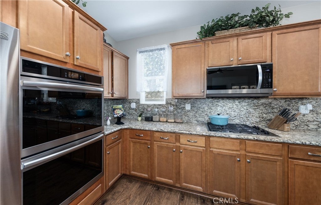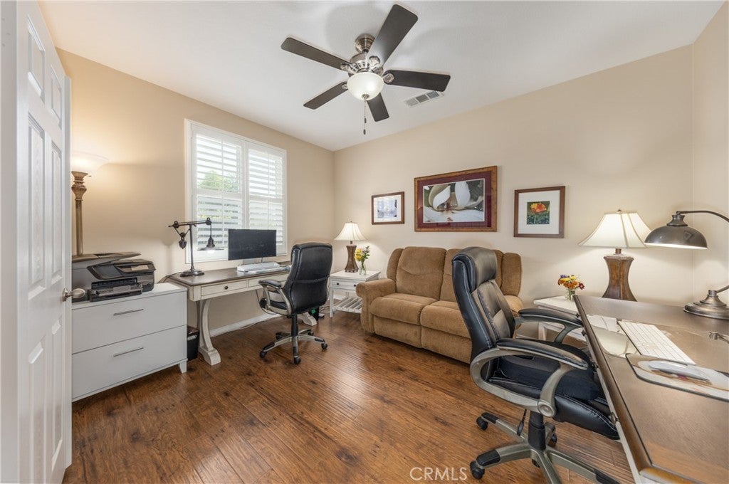 HUGE PRICE REDUCTION! You have to see this beautiful upgraded home in the desirable Reserve at Crafton Hills. This residence features an open floor plan with 3 bedrooms (plus a study that can serve as a 4th bedroom) and 2.5 bathrooms. Inside, you’ll find custom shutters, custom-designed bookcases flanking the gas fireplace, and a matching built-in credenza in the dining area with lighting and pull-out shelving. The kitchen features granite, newer stainless steel appliances: a microwave, double oven, and dishwasher. The master suite has been refreshed with new counters, sinks, flooring, and freshly painted cabinets. The exterior was freshly painted, and the backyard is designed for easy enjoyment with artificial turf, expanded concrete covered patio - the side yard includes raised, auto-drip grow boxes and a mini-orchard with a variety of fruit trees all supported by an updated smart watering system. Additional highlights include: 220V outlet for EV charging, Pre-wired for solar, Motion-sensor garage lighting and abundant storage, Digitally controlled watering system, Custom-designed security screen door. The Reserve offers exclusive amenities including a clubhouse, pool and spa, BBQ areas, and lighted tennis and pickleball courts. Conveniently located near Crafton Hills College, shopping, dining, Yucaipa Regional Park, and with easy access to the 10 Freeway — this home truly has it all!