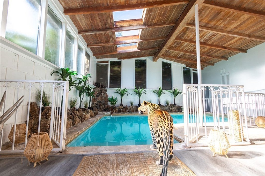 An exceptional value in BHPO. Attention Mid-Century modern enthusiasts and developers: Discover the perfect blend of architectural heritage and development potential at 9924 Beverly Grove Drive, a historic mid-century modern home for sale in Beverly Hills, perched atop a scenic knoll in the prestigious Beverly Hills Post Office. Surrounded by some of LA's most high-profile residents, including LeBron James, Lisa Kudrow, and Kylie Jenner, this star-studded enclave offers both prestige and privacy. Privately tucked away on a private road, this rare single-story residence offers breathtaking panoramic city views, exceptional privacy, and timeless design. Spanning approximately 2,582 square feet, the home features three spacious bedrooms, three bathrooms, and a striking indoor pool that creates a peaceful, spa-like atmosphere at the center of the home. The expansive living room was thoughtfully designed to take full advantage of the sweeping city views, offering a bright and open space ideal for both everyday living and entertaining. Set on nearly half an acre of prime Beverly Hills real estate, this historic mid-century property offers endless potential, whether for restoration or transformation. A pre-development study by a renowned Los Angeles architect outlines plans for a 5,300-6,000 sq ft estate across three levels. Developers may also benefit from the potential to lift current deed restrictions, opening the door to merging with adjacent parcels for expanded development opportunities. The current layout also presents cost-effective opportunities to expand the home's footprint and bedroom count, making it ideal for a developer or end user looking to maximize value in a highly sought-after location. Whether you're looking to restore a classic or build a luxurious custom estate, 9924 Beverly Grove Drive presents a rare opportunity to own a mid-century modern home with panoramic city views, exceptional privacy, and one of the few indoor pools found in Beverly Hills real estate offering a truly unique blend of architectural charm and lifestyle potential in the prestigious BHPO.