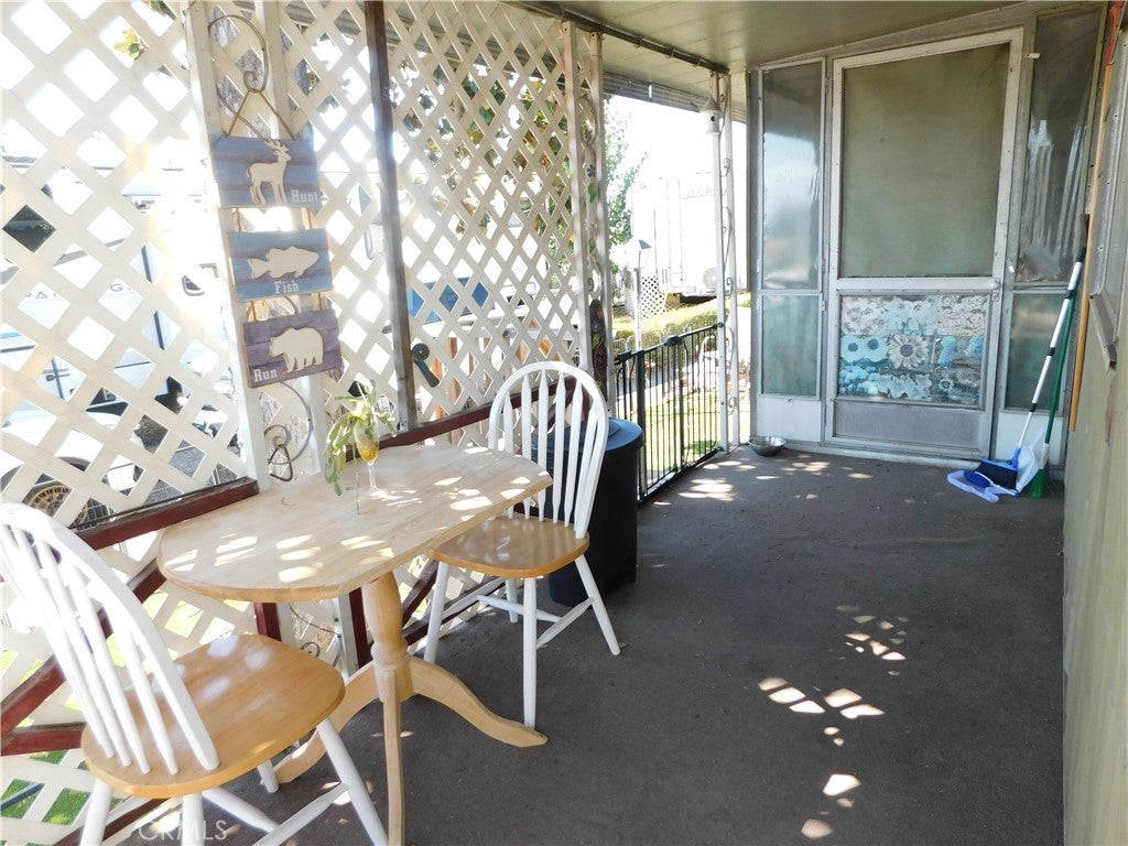 ~Newly updated single wide situated in Yucaipa’s desirable 55+ community Skyline Village!~Low space rent! Only $347!~Recent upgrades include brand new water heater in August 2025, new vinyl flooring throughout in 2024, new ductless heating and air unit (mini split) in 2024, and metal roof re-coated in 2022!~Bright and welcoming living room, open to kitchen and spacious dining area~Kitchen with included fridge and new microwave, with plenty of storage space plus updated cabinet hardware!~Full bath with tub/shower and updated vanity!~Queen size primary bedroom with new blinds and lots of built-ins!~Bonus room for storage, hobby room, gym, etc, connects to converted 2nd bedroom (currently being used as a workshop)!~2nd bedroom with electricity recently ran to it, and updated panel box to accommodate, is also queen size, with dual pane window and huge amount of closet space!~Laundry area conveniently located directly across the street from home!~Low maintenance yard, recently fenced, with artificial turf added in 2024!~Shed in backyard~Gated front porch with privacy and re-built front steps in 2024!***Call for a tour today, you will definitely be impressed!***