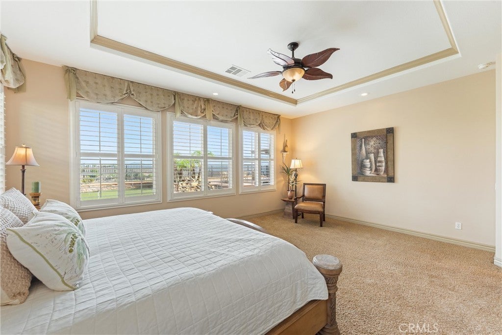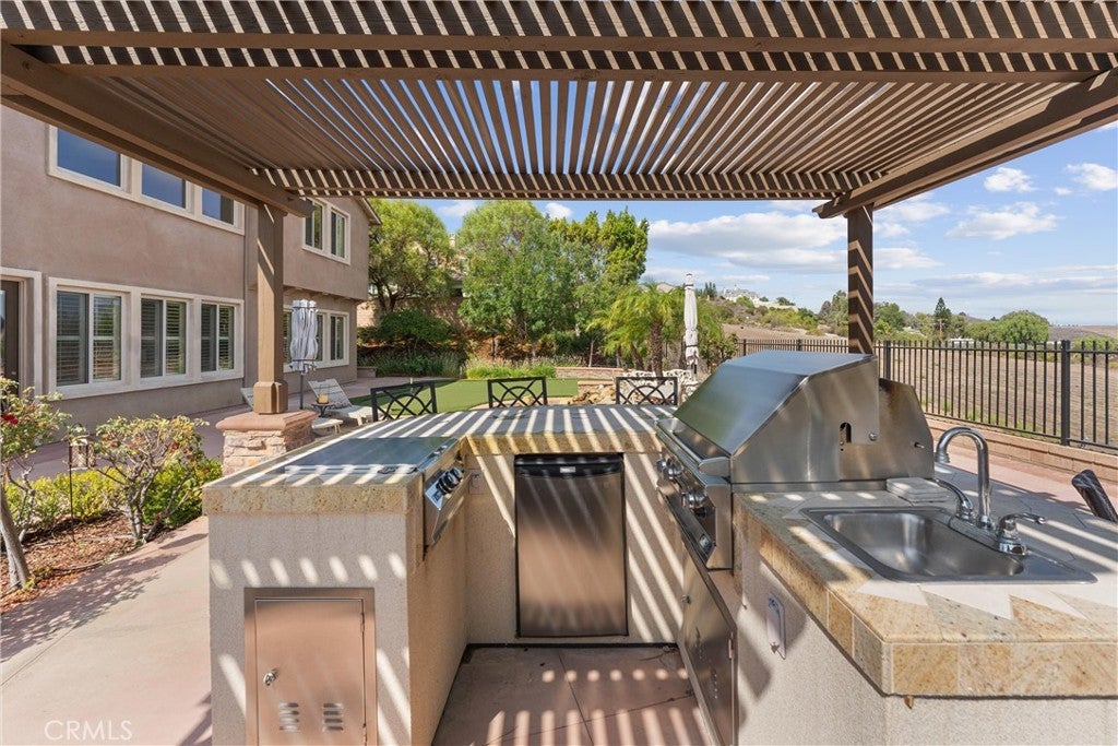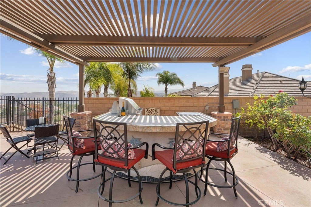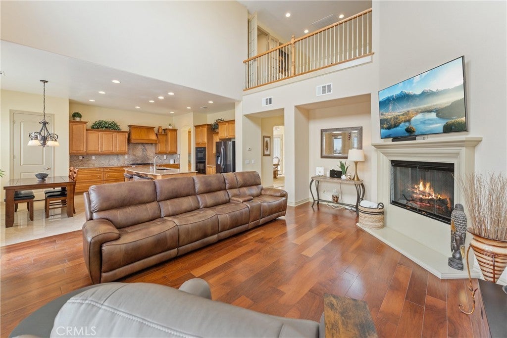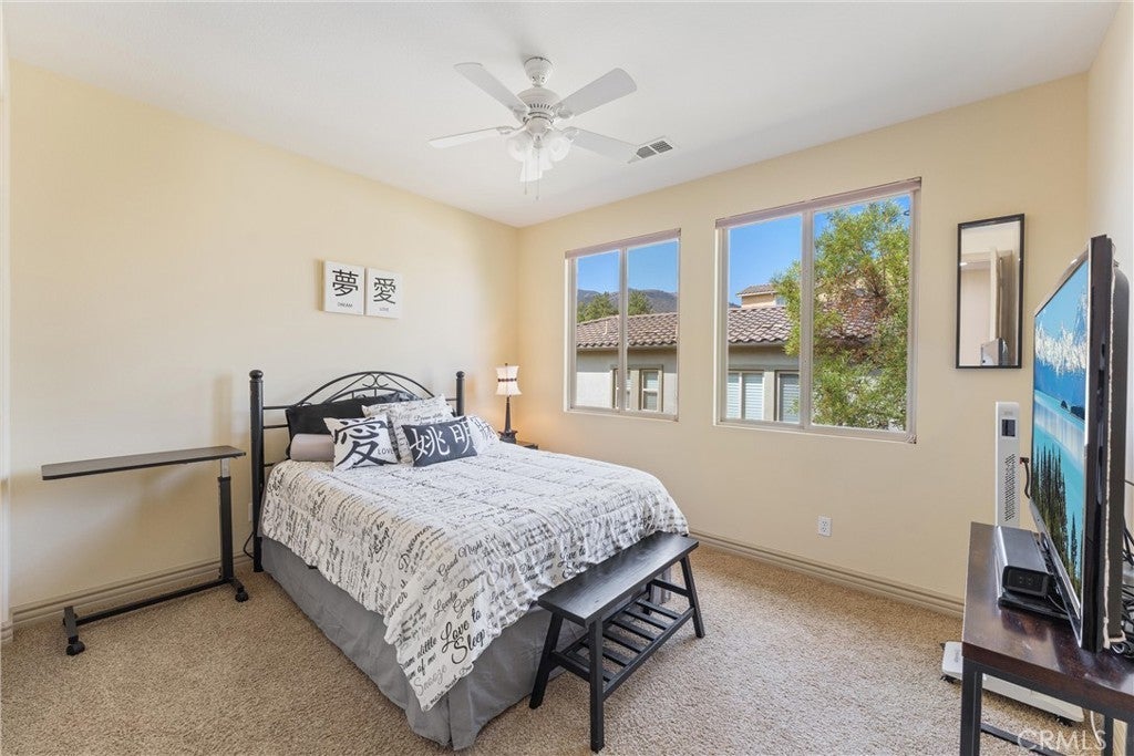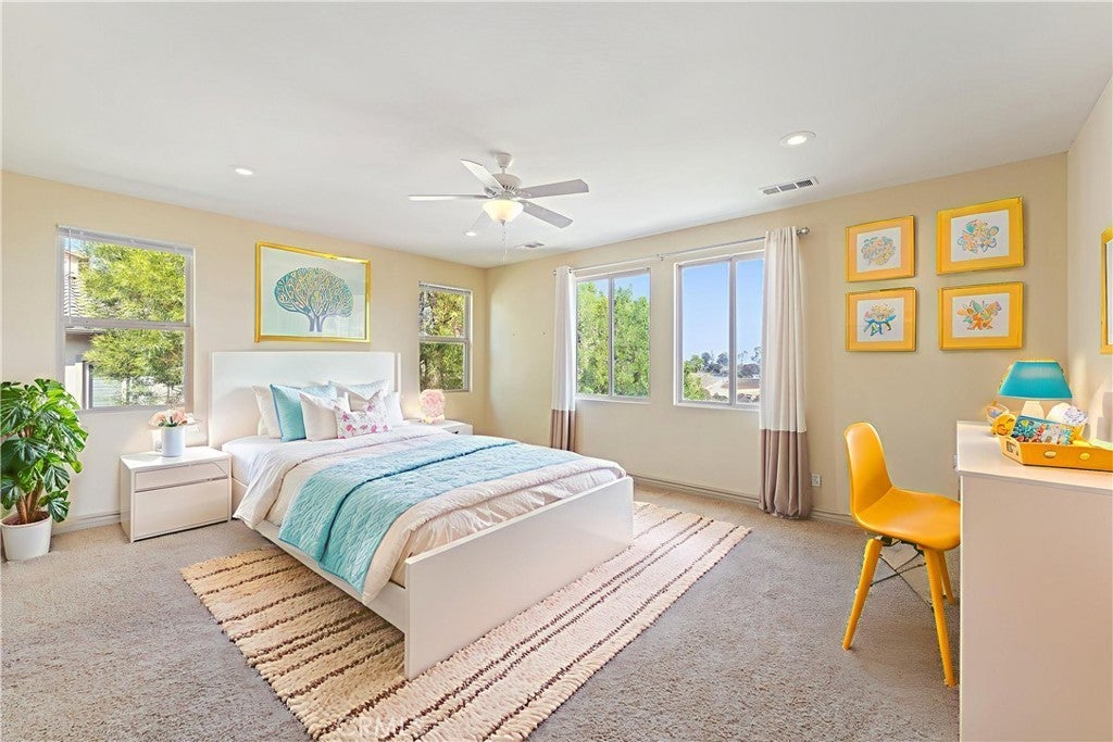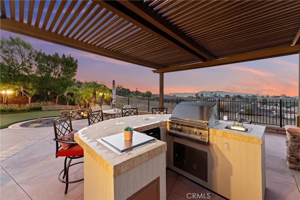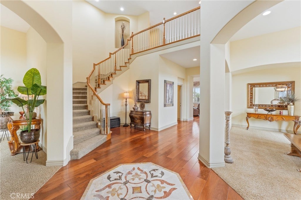 5 BEDROOMS (INCLUDING DOWNSTAIRS PRIMARY + 3 SUITES) | 3-CAR GARAGE | Welcome to this prestigious executive estate, nestled in the sought-after Retreat Community where privacy, elegance, and refined living define everyday life. Enter through the oversized private courtyard and step into the grand formal entry, where soaring ceilings, custom mosaic tile, art display niches, wood flooring, and a sweeping staircase set the tone for timeless sophistication. The open-concept Family Room is both inviting and refined, boasting a gas fireplace, custom drapes, plantation shutters, and seamless access to the backyard. The chef’s Kitchen is designed for the culinary enthusiast, featuring an oversized island with breakfast bar seating, pantry, granite countertops, stainless steel appliances, butler’s pantry, pot and pan drawers, and coffee station, all flowing into the formal Dining Room. French doors from the formal Dining Room open to front courtyard for effortless entertaining. A bonus Living Room offers versatility as a music room, office, or more gathering space. The main-level Primary Ensuite Bedroom is a true retreat, highlighted by coffered ceilings, private sitting area, and serene views. The spa-inspired Primary Ensuite Bathroom features dual vanities, a deep soaking tub, oversized walk-in shower with bench, make-up vanity, and a custom walk-in closet with center island. Upstairs, 4 additional bedrooms offer unparalleled comfort. Bedroom #2 is oversized with its own bathroom and walk-in closet. Bedroom #3 features French doors and a full bath with granite counters. Bedroom #4, currently an office, includes its own ensuite and private balcony with sunrise views. Bedroom #5 completes this wing, ideal for multi-generational living. A separate Laundry Room with sink, cabinetry, and folding station adds convenience. The backyard is an entertainer’s paradise, complete with custom hardscape, stone waterfall, artificial turf, four-hole putting green, built-in BBQ with sink, refrigerator, and bar seating, all framed by low Maintenace wrought iron and block fencing. ENERGY EFFICIENCY: Solar panels, recessed lighting, & ceiling fans add efficiency to unmatched elegance. AMENITIES: Community pool, playground, basketball court, & fireplace. LOCATION: Quick access to 15 Expressway, 91 & 71 Freeways, & 241 Toll Road. This home is more than a residence—it’s a statement of luxury living.