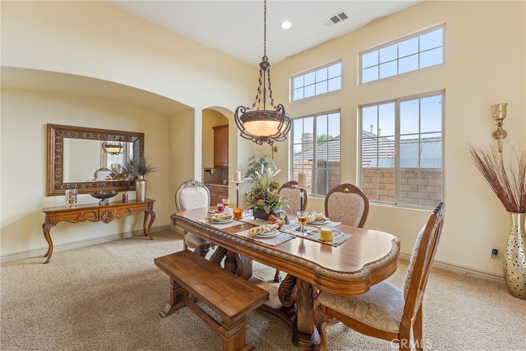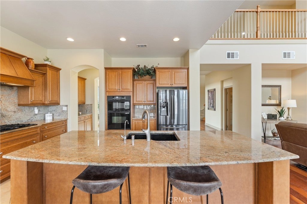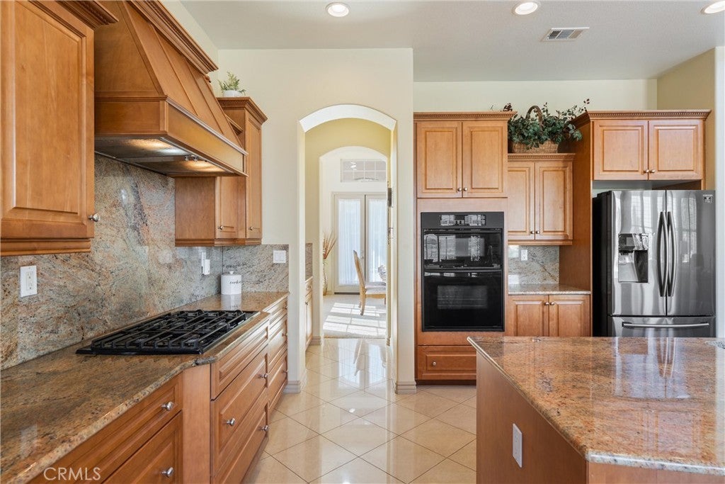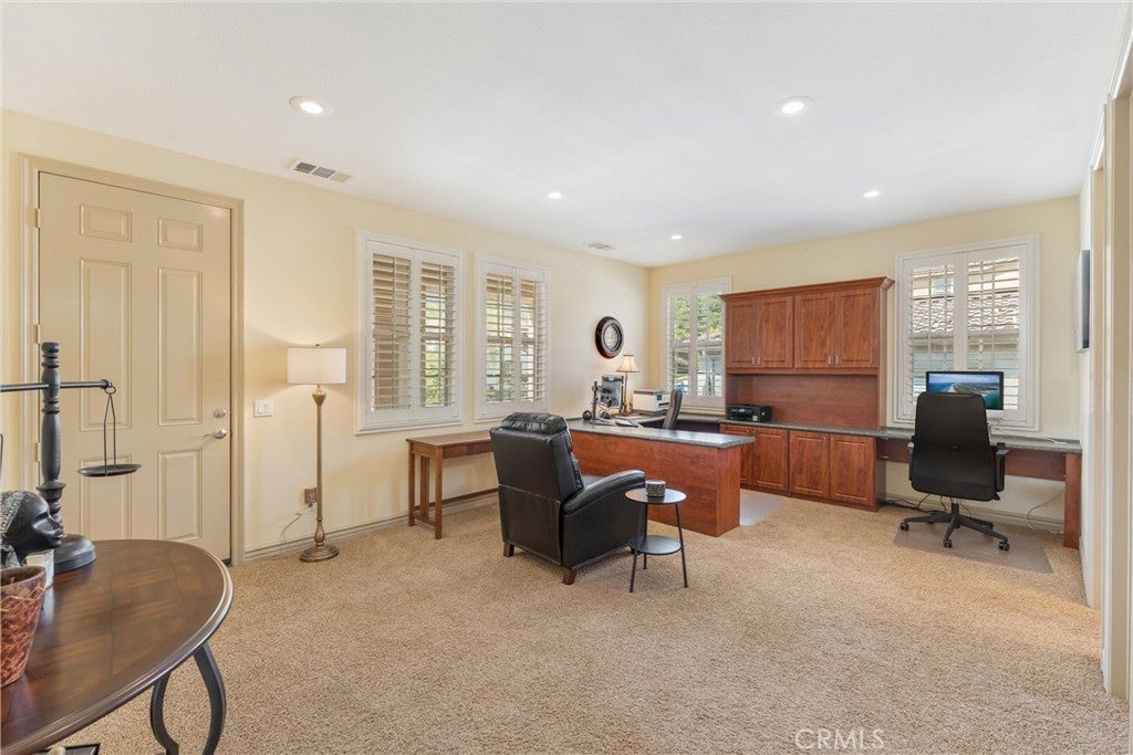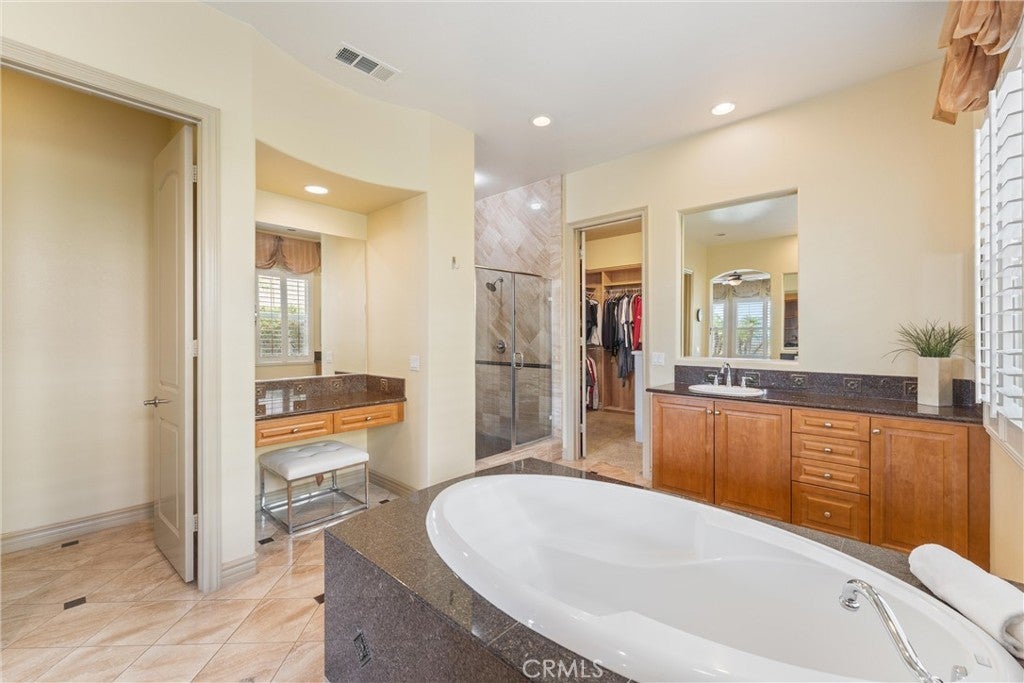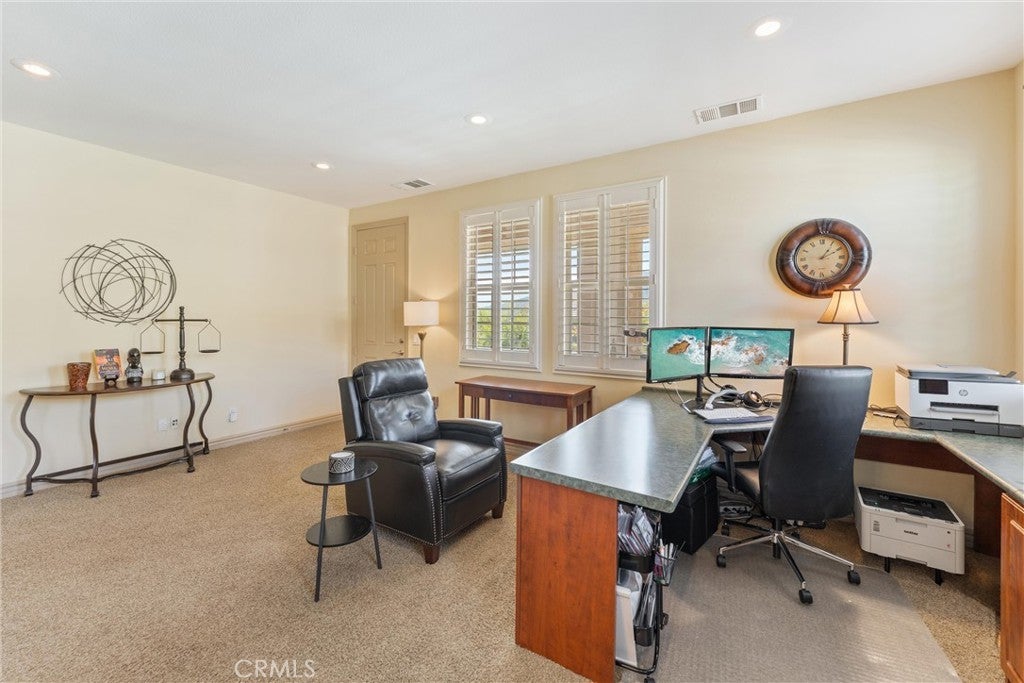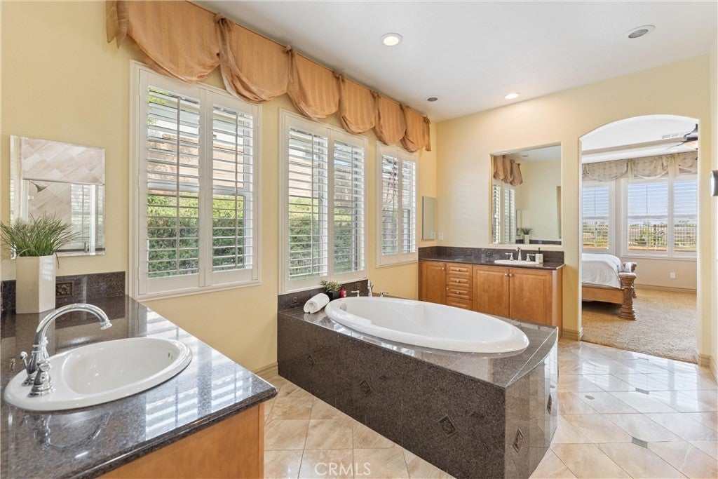 5 BEDROOMS (INCLUDING DOWNSTAIRS PRIMARY + 3 SUITES) | 3-CAR GARAGE | Welcome to this prestigious executive estate, nestled in the sought-after Retreat Community where privacy, elegance, and refined living define everyday life. Enter through the oversized private courtyard and step into the grand formal entry, where soaring ceilings, custom mosaic tile, art display niches, wood flooring, and a sweeping staircase set the tone for timeless sophistication. The open-concept Family Room is both inviting and refined, boasting a gas fireplace, custom drapes, plantation shutters, and seamless access to the backyard. The chef’s Kitchen is designed for the culinary enthusiast, featuring an oversized island with breakfast bar seating, pantry, granite countertops, stainless steel appliances, butler’s pantry, pot and pan drawers, and coffee station, all flowing into the formal Dining Room. French doors from the formal Dining Room open to front courtyard for effortless entertaining. A bonus Living Room offers versatility as a music room, office, or more gathering space. The main-level Primary Ensuite Bedroom is a true retreat, highlighted by coffered ceilings, private sitting area, and serene views. The spa-inspired Primary Ensuite Bathroom features dual vanities, a deep soaking tub, oversized walk-in shower with bench, make-up vanity, and a custom walk-in closet with center island. Upstairs, 4 additional bedrooms offer unparalleled comfort. Bedroom #2 is oversized with its own bathroom and walk-in closet. Bedroom #3 features French doors and a full bath with granite counters. Bedroom #4, currently an office, includes its own ensuite and private balcony with sunrise views. Bedroom #5 completes this wing, ideal for multi-generational living. A separate Laundry Room with sink, cabinetry, and folding station adds convenience. The backyard is an entertainer’s paradise, complete with custom hardscape, stone waterfall, artificial turf, four-hole putting green, built-in BBQ with sink, refrigerator, and bar seating, all framed by low Maintenace wrought iron and block fencing. ENERGY EFFICIENCY: Solar panels, recessed lighting, & ceiling fans add efficiency to unmatched elegance. AMENITIES: Community pool, playground, basketball court, & fireplace. LOCATION: Quick access to 15 Expressway, 91 & 71 Freeways, & 241 Toll Road. This home is more than a residence—it’s a statement of luxury living.