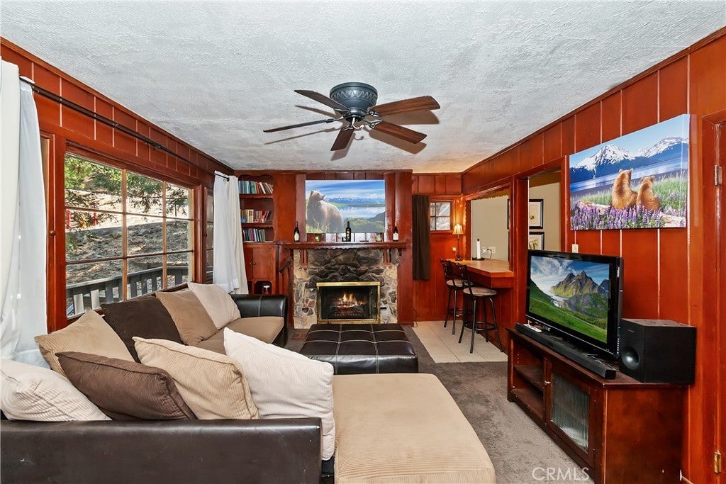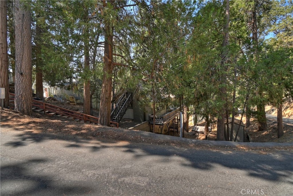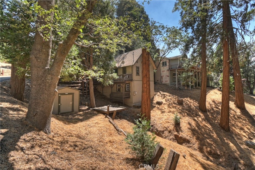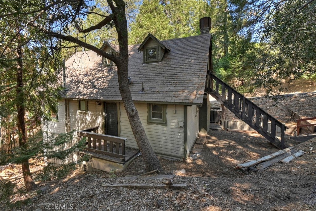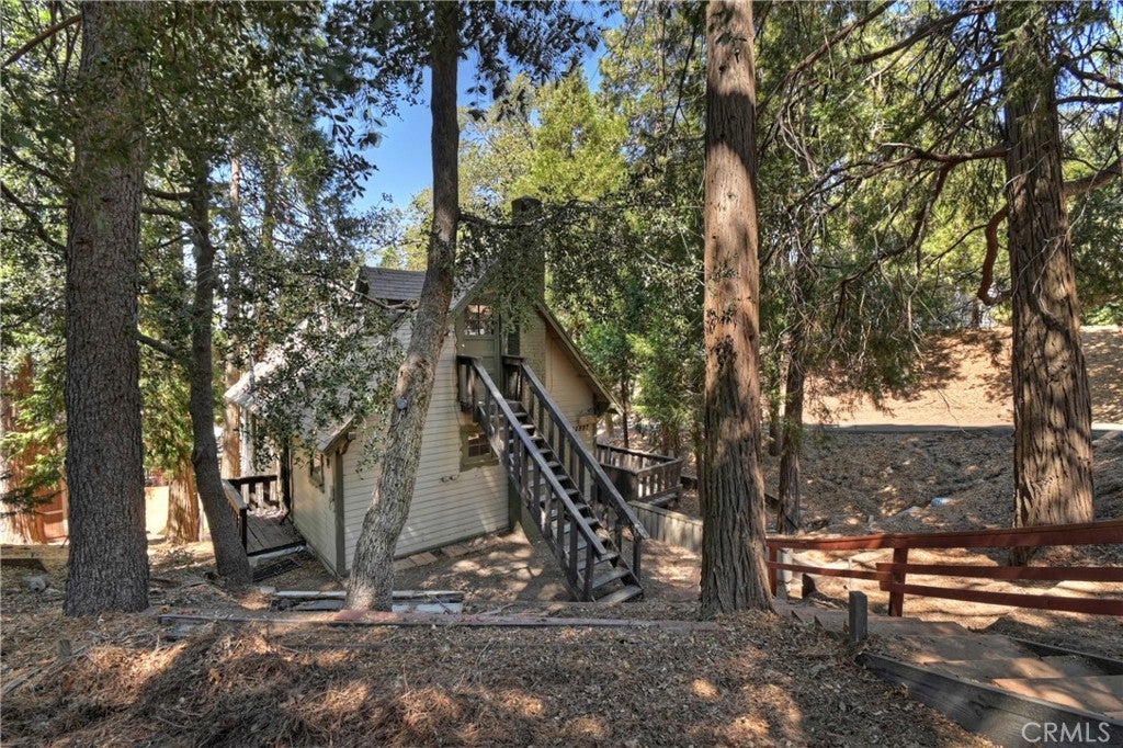Charming Crestline Mountain Retreat on a Corner Lot. Within walking distance to Lake Gregory. Live above the clouds. This inviting mountain home offers the perfect blend of vintage character and thoughtful updates. Step inside and you’ll be welcomed by warm wood accents, a striking rock fireplace, and a cozy layout that instantly feels like home. The kitchen has been refreshed with updated countertops and is ready for your next gathering. The main-level bedroom features a generous closet, while upstairs you’ll find two additional sleeping areas and a convenient half bath—accessible by a private exterior staircase, making it a unique space for guests or family. Outside, the deck area is waiting for your personal touch. Below the main living space, the buildup includes the laundry area and plenty of storage. With the floor furnace replaced in 2013. Here is an opportunity for its next owners to enjoy mountain living at its best.