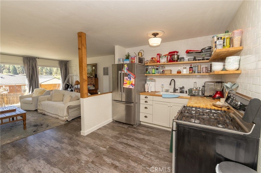 42897 Encino is a charming, vintage-inspired home located within walking distance to the Moonridge Zoo, Bear Mountain's shuttle and parking lot, as well as some of Big Bear's favorite local restaurants and coffee shops. The Moonridge area has been upgraded with new sidewalks and street lights, enhancing the neighborhood's charm and safety for evening strolls. This inviting retreat features an open-concept floor plan with 2 spacious bedrooms and a full bath, situated on a generous 5,369 sq ft lot. Inside, you're welcomed by a bright and cheerful atmosphere, highlighted by a stylish subway tile backsplash in the kitchen and sleek tile flooring for easy cleaning. Savor stunning ski slope views of Bear Mountain and Snow Summit, and begin enjoying them while relaxing with a warm cup of tea by the fireplace, stargazing under a clear mountain sky, or sharing a warm meal with loved ones as the sun sets after a long week. If you're searching for the perfect place to call home, your search ends here!