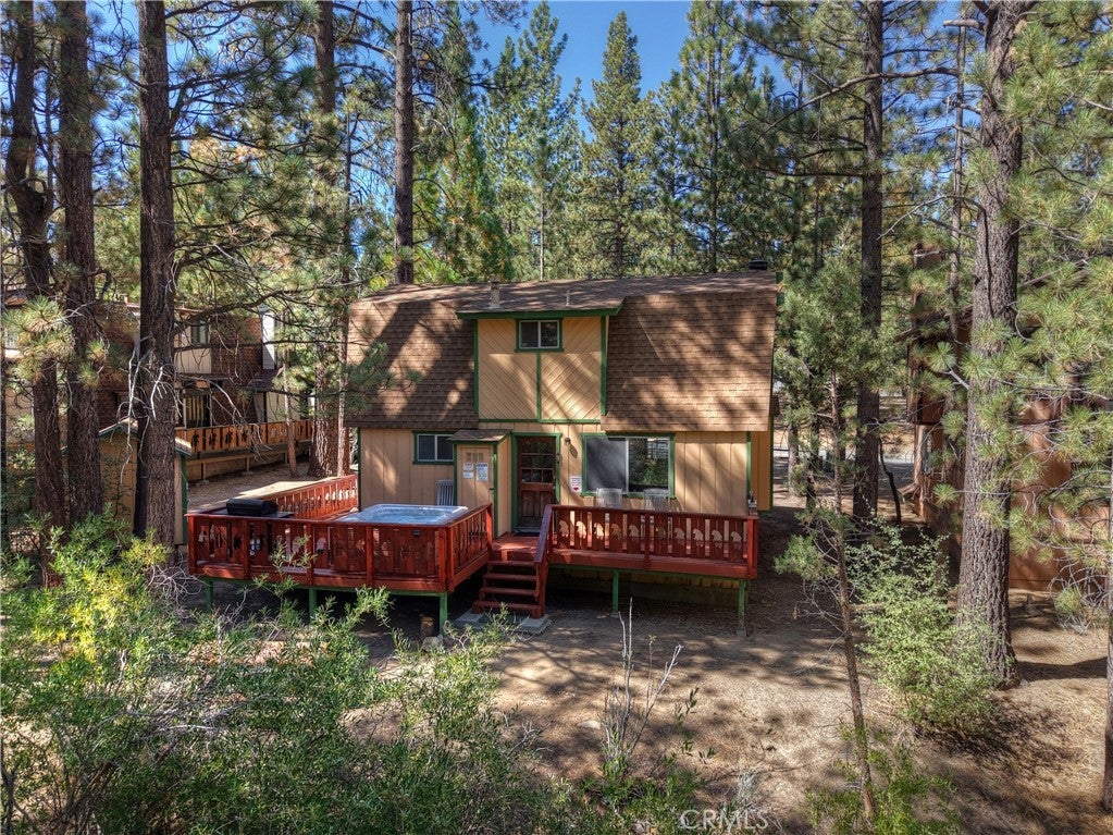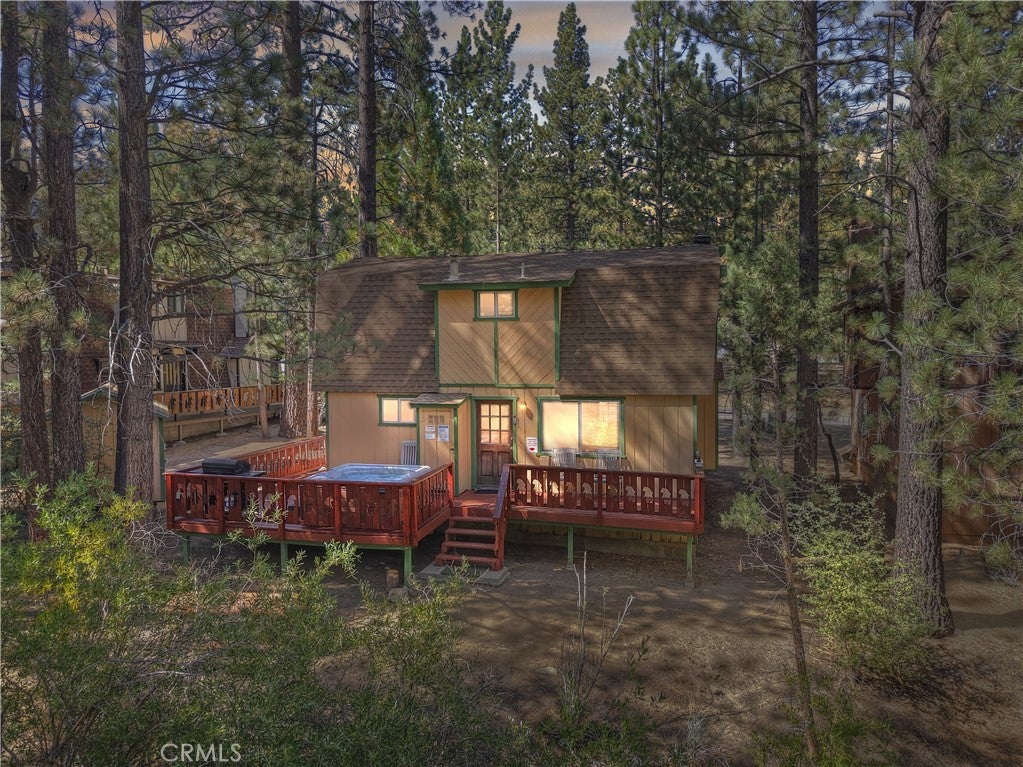 Welcome to this adorable mountain cabin ~ Located in the Pinewood Estates and backing to residential acreage ~ Imagine yourself relaxing in the hot tub on the back deck soaking in the peace and quiet feeling as though you are in the forest all by yourself ~ Enjoy picnics in the backyard listening to the sounds of the seasonal stream babbling along ~ Spend those chilly winter evenings cuddled up with your loved ones in front of the wood burning fireplace, basking in real quality time together ~ As you pull up you feel lighter as the stressors of everyday life are washed away with each deep breath of the clean mountain air ~ The 2 bedrooms and 1.5 bathrooms with over 1,000 sf. ft. of living space affords you room to gather with family and friends creating lifelong memories ~ Whether you are an outdoor adventurer, snow sports enthusiast or someone looking for a quiet retreat, this cabin is where you will want to put your roots!