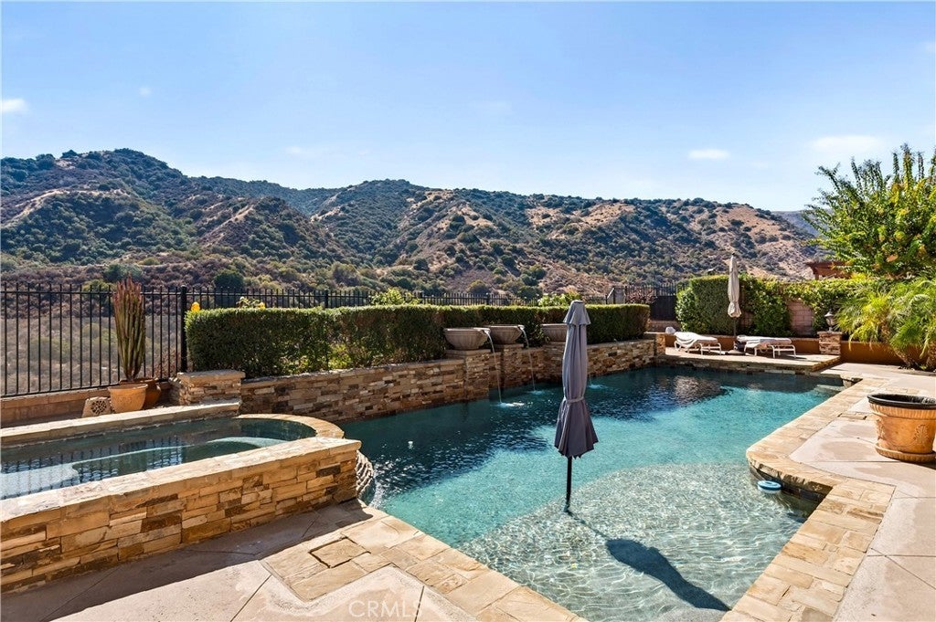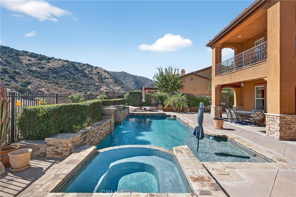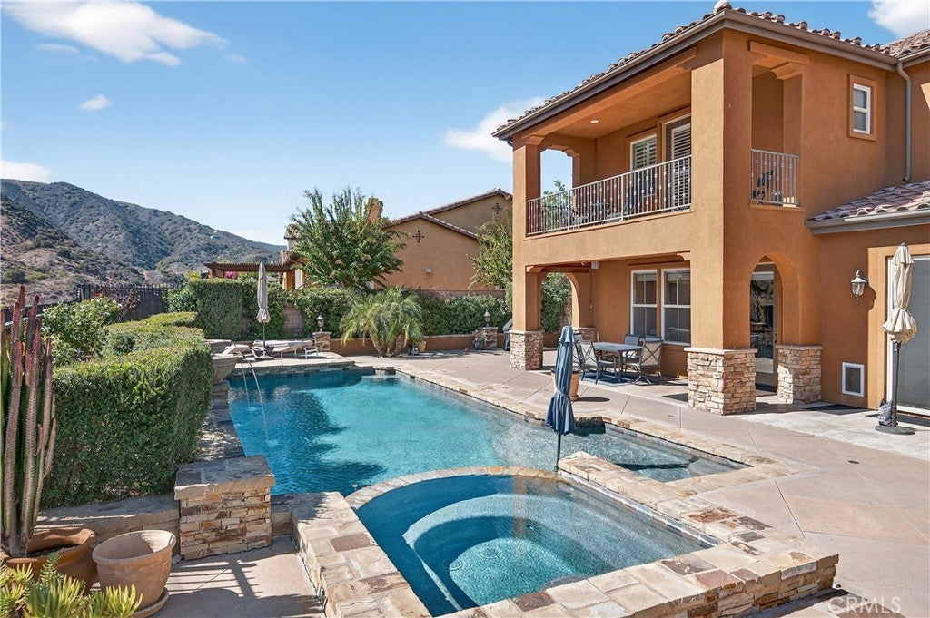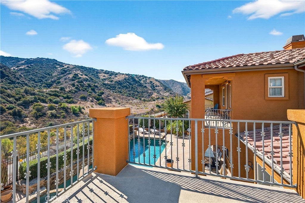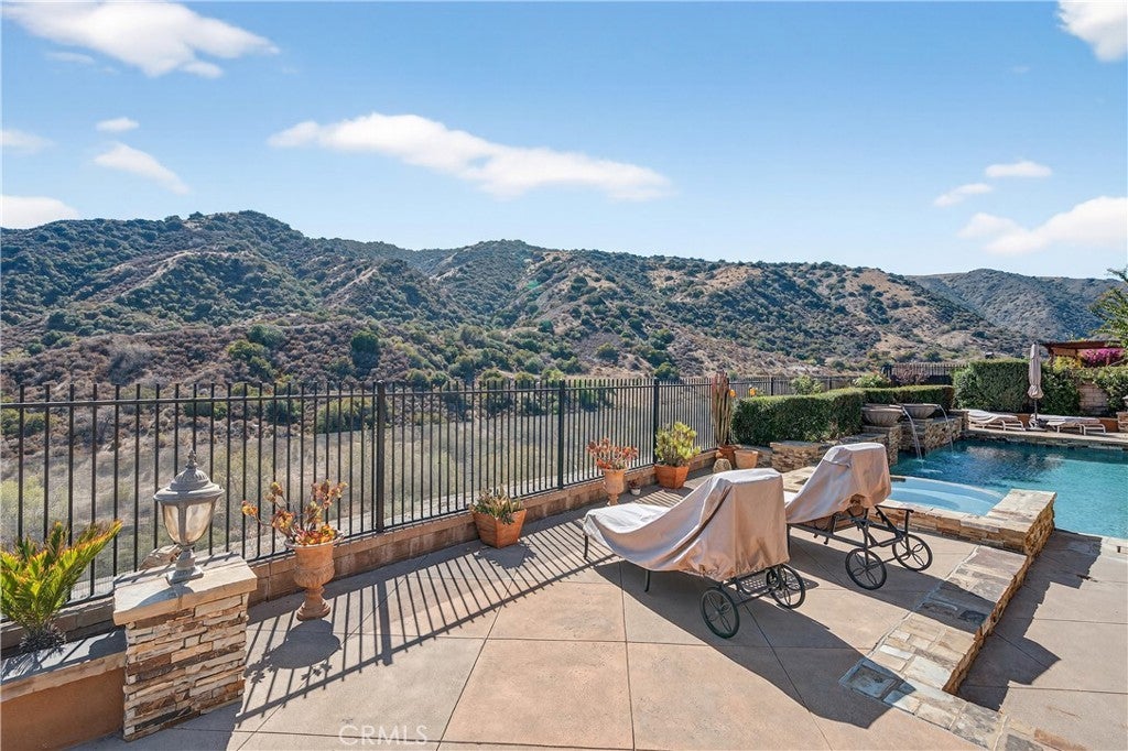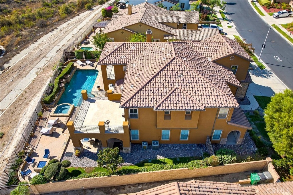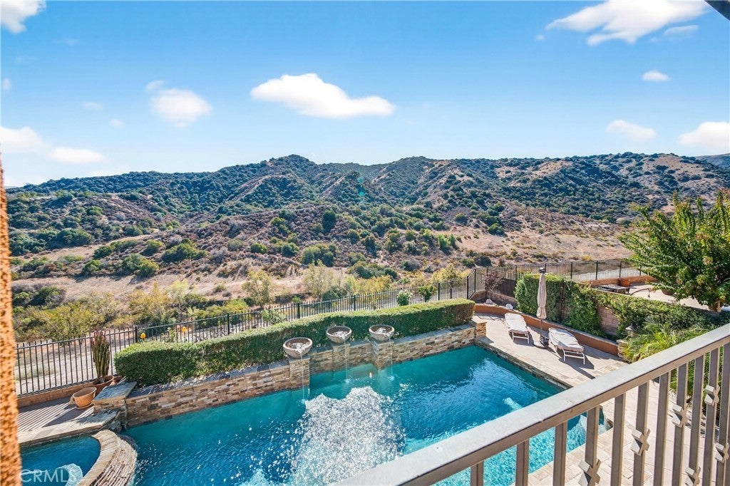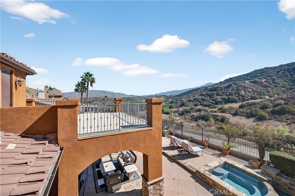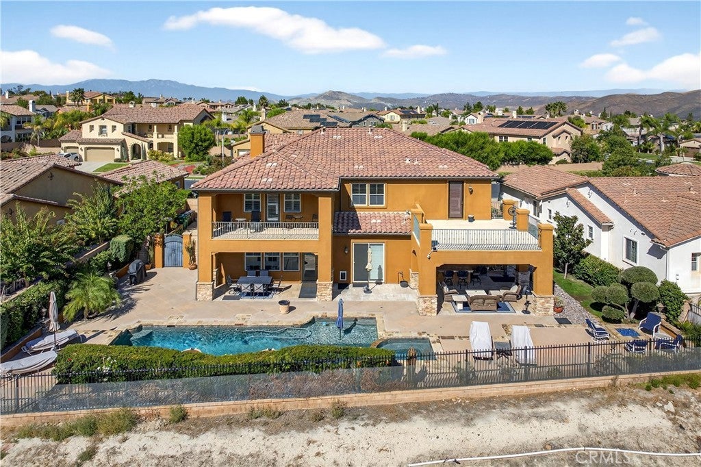 Located in the prestigious Retreat Community, this stunning K&B Luxury highly sought home features views of beautiful Cleveland national forest. This spacious open floor plan, with a gourmet kitchen and large pantry, featuring 5 spacious bed rooms, 4.5 bath rooms, dual walk in his and her closets. An entertainer paradise, the back yard includes a private heated pool and spa, natural gas fire pit and multiple areas for relaxing or hosting guest. Has a covered patio with a outside bar. The primary suite complete with a private balcony, over looking the Cleveland National Forest, and total privacy. A cozy family room off the kitchen with a beautiful brick fireplace. Additional highlights include window coverings throughout, plantation shutters and a tandem 3 car garage. The perks of this amazing location is minutes away from Dos-Lagos restaurants, theaters, shopping and entertainment. The Retreat community also features a pool, parks, and scenic hiking trails for out door enjoyment. This beautiful Luxury home is amazing, come by and see for yourself.