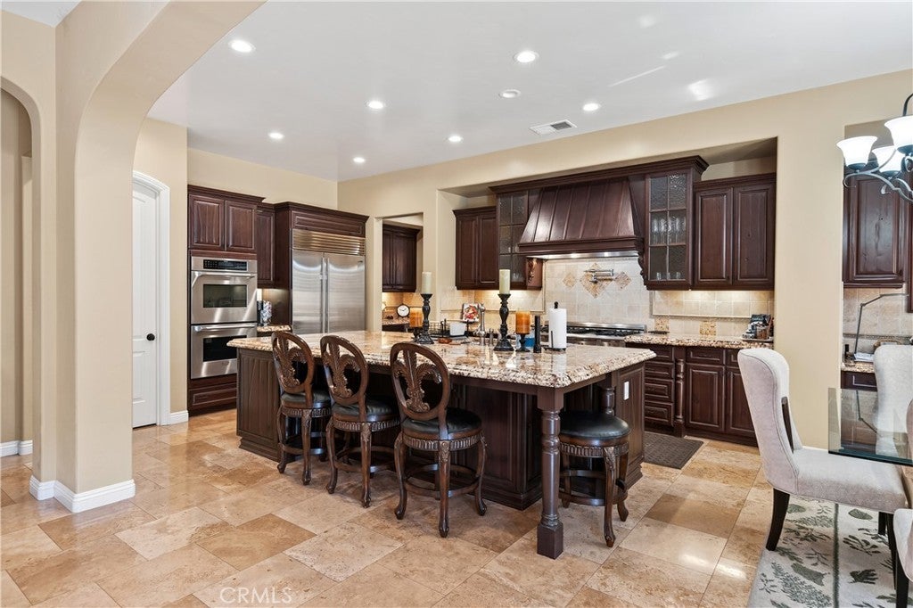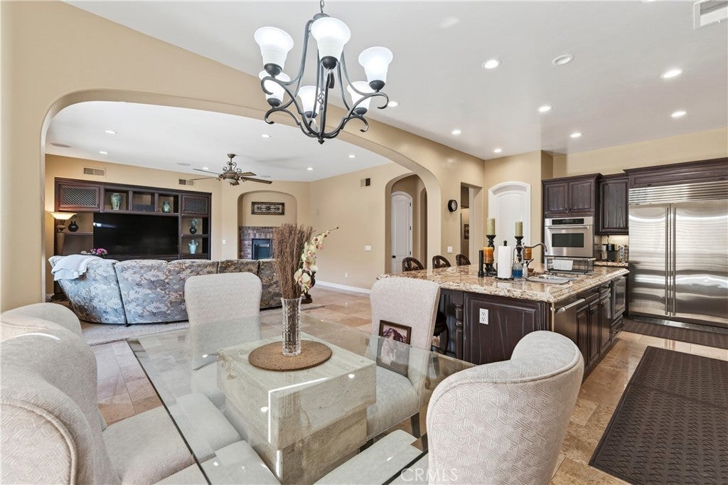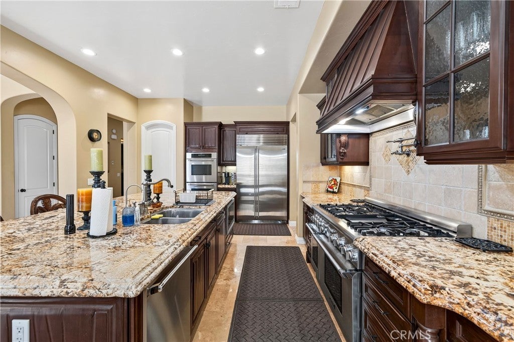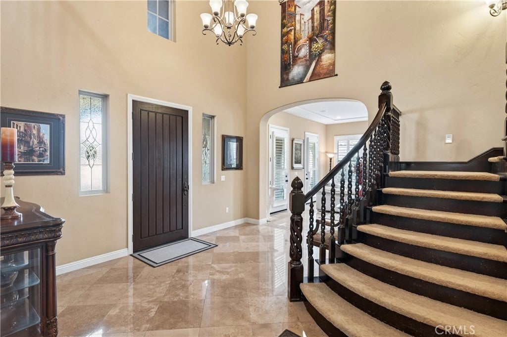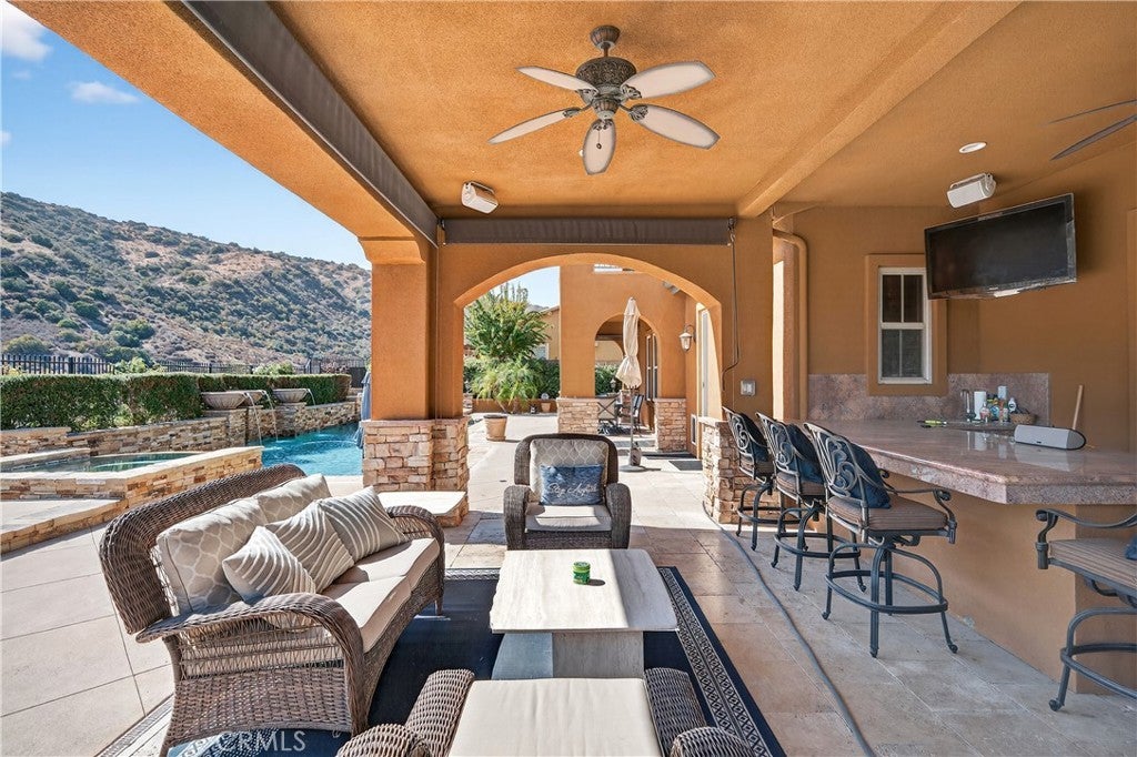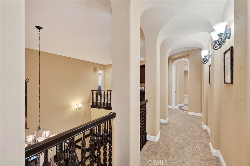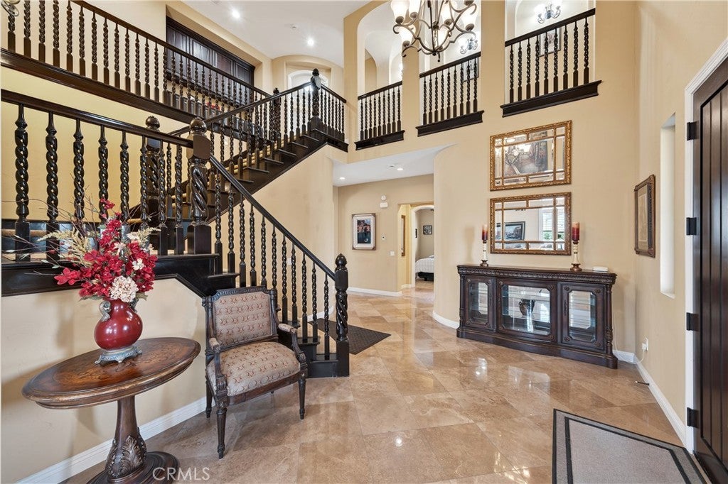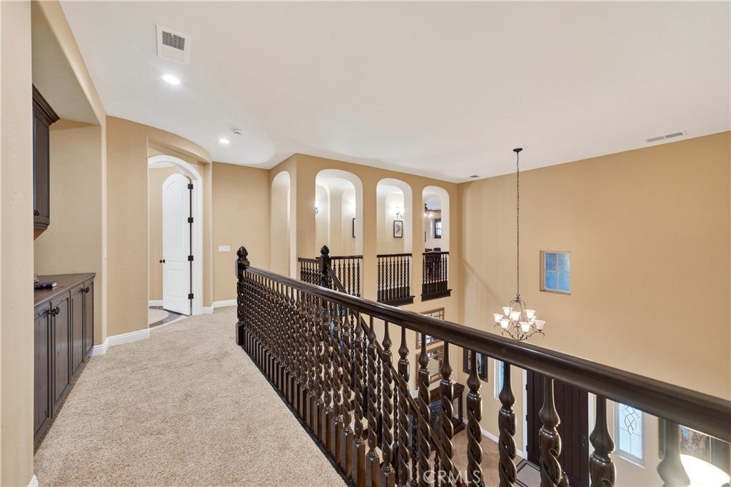 Located in the prestigious Retreat Community, this stunning K&B Luxury highly sought home features views of beautiful Cleveland national forest. This spacious open floor plan, with a gourmet kitchen and large pantry, featuring 5 spacious bed rooms, 4.5 bath rooms, dual walk in his and her closets. An entertainer paradise, the back yard includes a private heated pool and spa, natural gas fire pit and multiple areas for relaxing or hosting guest. Has a covered patio with a outside bar. The primary suite complete with a private balcony, over looking the Cleveland National Forest, and total privacy. A cozy family room off the kitchen with a beautiful brick fireplace. Additional highlights include window coverings throughout, plantation shutters and a tandem 3 car garage. The perks of this amazing location is minutes away from Dos-Lagos restaurants, theaters, shopping and entertainment. The Retreat community also features a pool, parks, and scenic hiking trails for out door enjoyment. This beautiful Luxury home is amazing, come by and see for yourself.