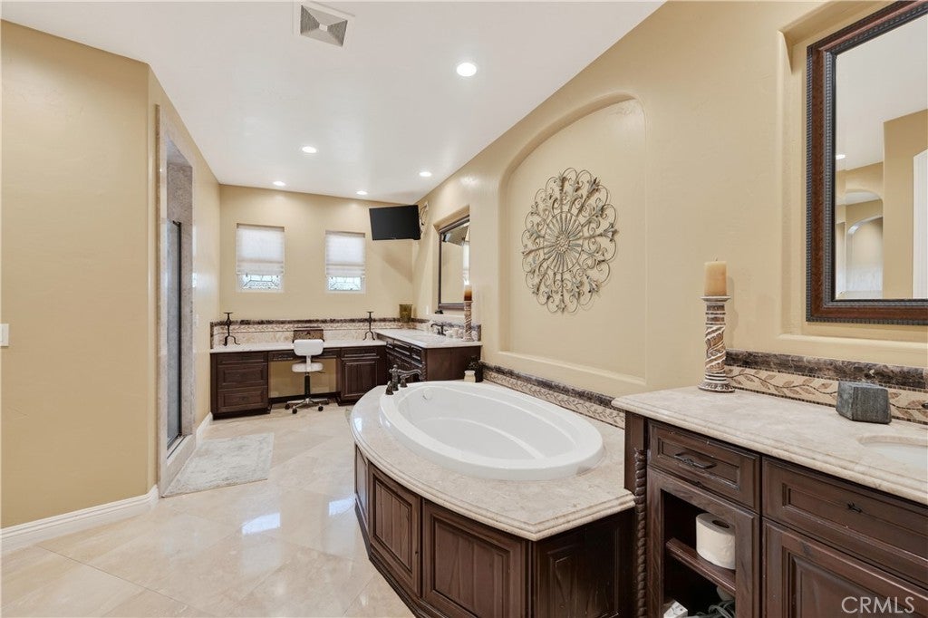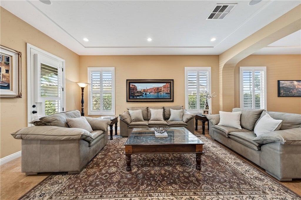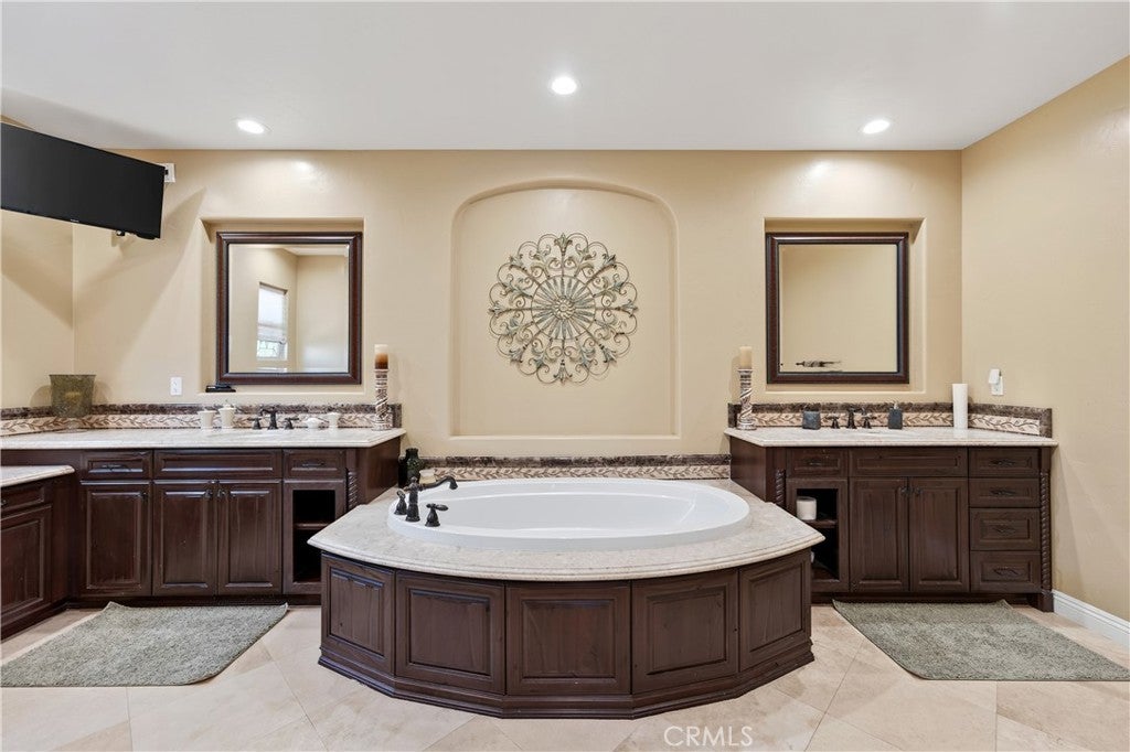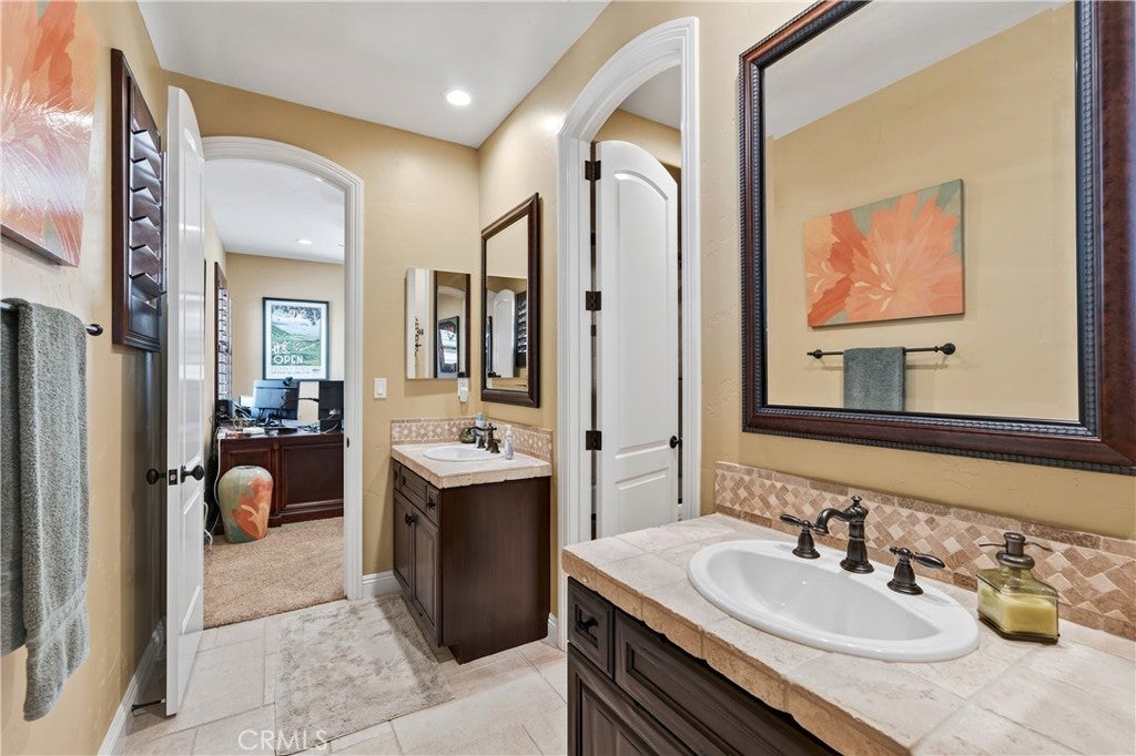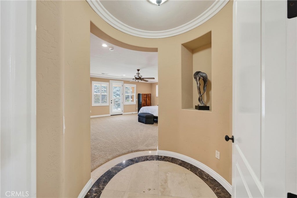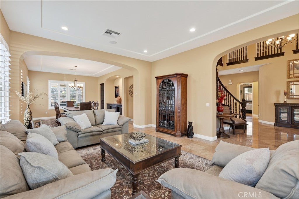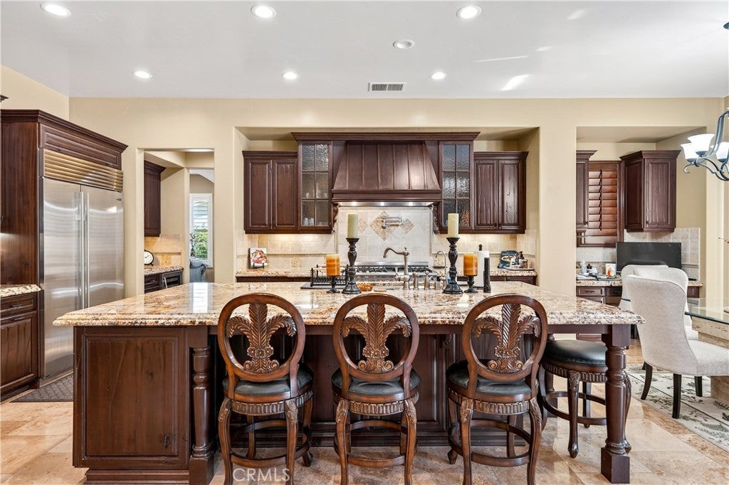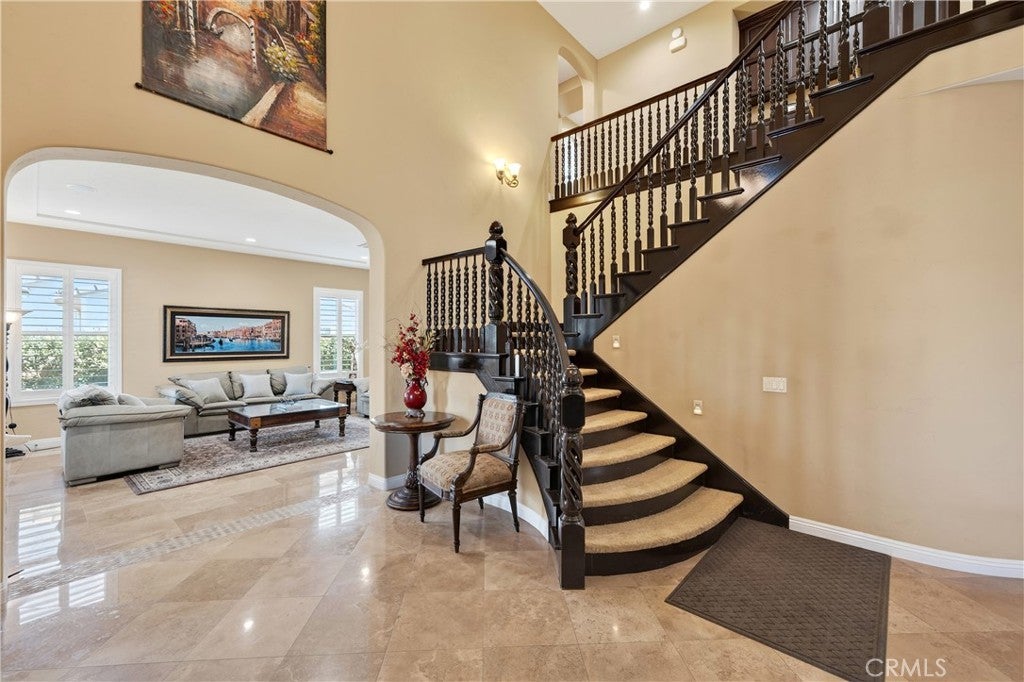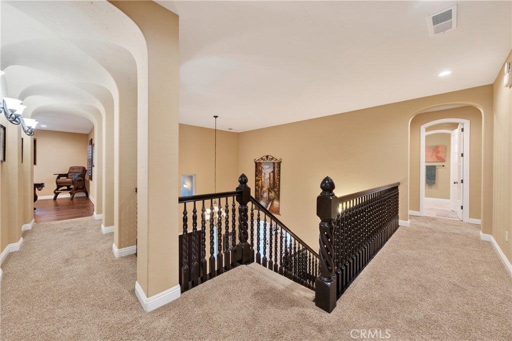 Located in the prestigious Retreat Community, this stunning K&B Luxury highly sought home features views of beautiful Cleveland national forest. This spacious open floor plan, with a gourmet kitchen and large pantry, featuring 5 spacious bed rooms, 4.5 bath rooms, dual walk in his and her closets. An entertainer paradise, the back yard includes a private heated pool and spa, natural gas fire pit and multiple areas for relaxing or hosting guest. Has a covered patio with a outside bar. The primary suite complete with a private balcony, over looking the Cleveland National Forest, and total privacy. A cozy family room off the kitchen with a beautiful brick fireplace. Additional highlights include window coverings throughout, plantation shutters and a tandem 3 car garage. The perks of this amazing location is minutes away from Dos-Lagos restaurants, theaters, shopping and entertainment. The Retreat community also features a pool, parks, and scenic hiking trails for out door enjoyment. This beautiful Luxury home is amazing, come by and see for yourself.