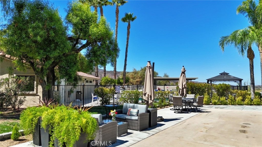 Welcome to your corner RV lot with expansive views of open space and surrounding hillside. This lot is located near pool 5 and main club house. A lighted stone capped column with golf cart parking is a touch of convenience. A crushed granite planter bed and drought tolerant plants adds a clean, fresh look to enjoy. Additional poured concrete creates large seating and entertaining areas. South side of property is lined with a recently planted hedge, landscape rock and stone boarder. Beyond the property line, common area with a large shade tree and grass area provides separation from neighboring RV lots. The resort itself is not age restricted and offers the best in southern California vacation living. Located 45 minutes outside of Palm Desert and with an elevation of almost two thousand feet, provides pleasant temperatures year round. For enjoyment of owners and guests a 14 hole par 3 golf course, 5 pools, spas, fishing lake, market, laundry/shower facilities, dog park, recently remodeled tennis/pickleball courts, horse shoe pit and acres of room to roam.