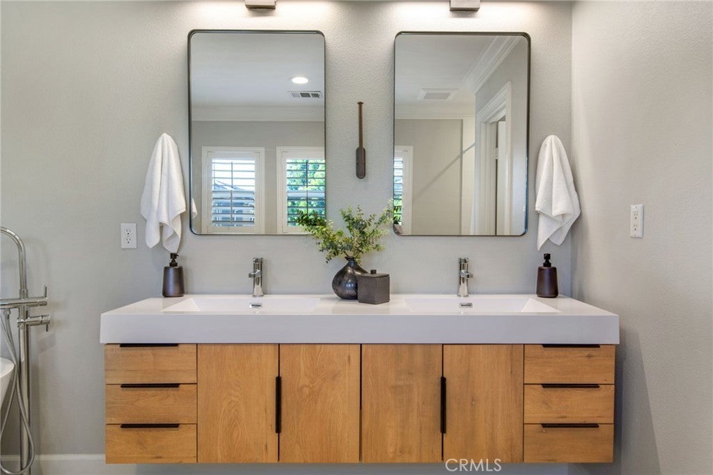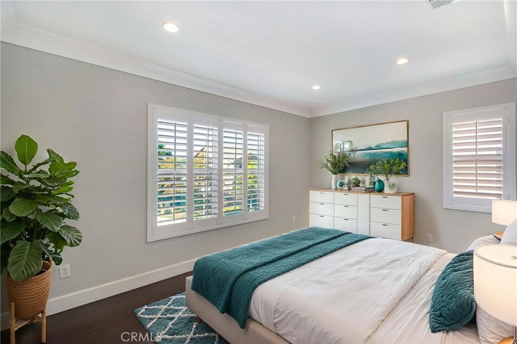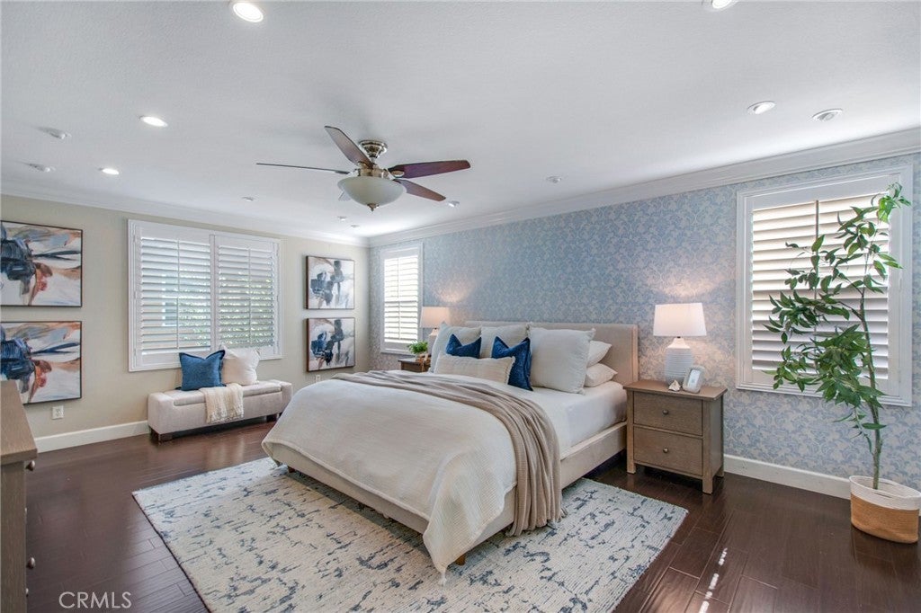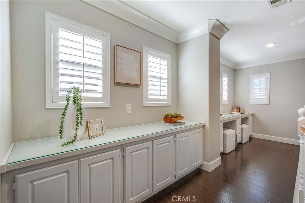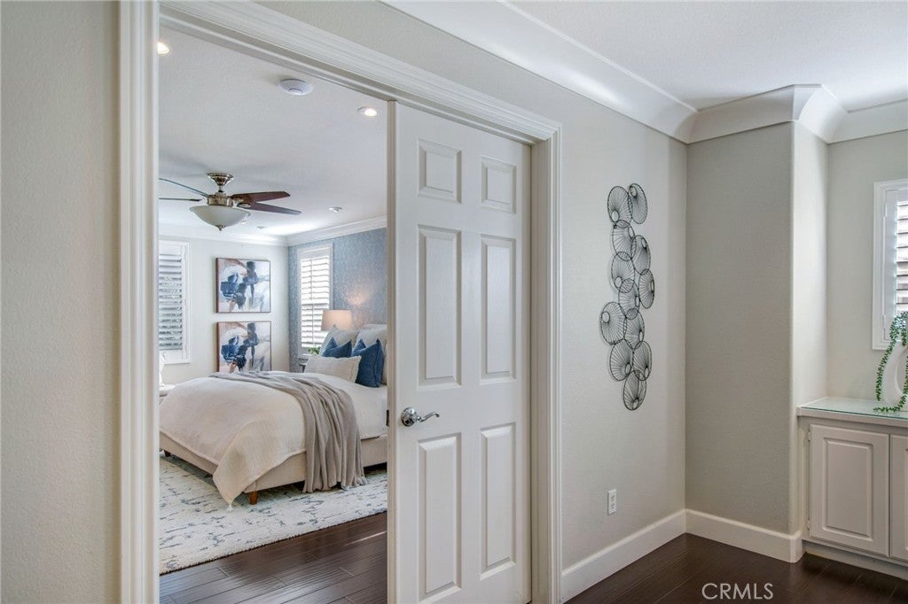 Spacious 5-Bedroom Home in Founders Square, Anaheim. Welcome to this beautifully updated 5-bedroom, 3 bath home offering 2,544 sq. ft. of comfortable living in the highly desirable Founders Square of Anaheim. Step inside to find a bright, open layout featuring a beautiful kitchen with modern finishes, sleek stone countertops, and ample storage-perfect for home chefs and entertaining alike. You will enjoy the beautiful polished travertine flooring downstairs and the cozy laminate floors throughout the upstairs and bedrooms. This amazing home also has gorgeous crown molding and plantation shutters throughout! The updated bathrooms provide a fresh, contemporary feel with stylish upgrades including a freestanding tub in the primary bath. This home is designed for today's lifestyle, complete with a dedicated tech center, making remote work or study both easy and efficient. With 5 generous sized bedrooms, there's plenty of space for family, guests, or flexible use such as a home gym or hobby room. One bedroom and bath are conveniently located on the first floor. This home was built with copper plumbing and has a whole house soft water system and solar that are paid off. Outside, enjoy your private backyard while relaxing on the deck or gardening in the raised bed planters. You will love the convenience of this prime Anaheim location- close to the 5 and 91 Freeways, Disneyland, parks, shopping, dining, and great schools, all while being nestled in a wonderful community. Don't miss the opportunity to call this updated and spacious property your new home!