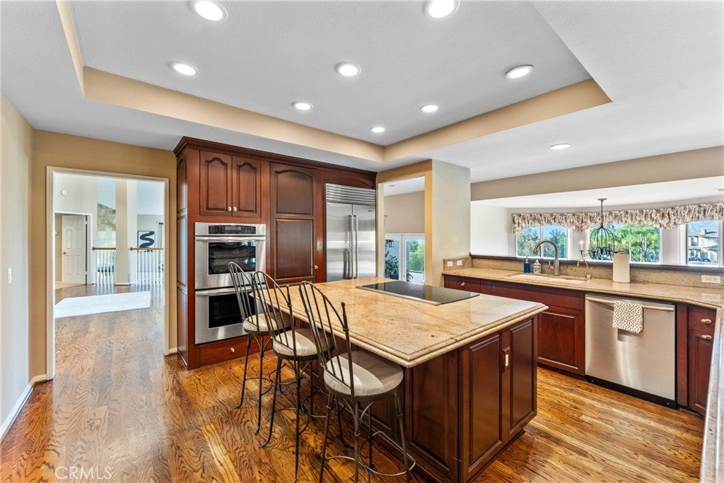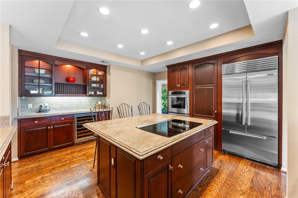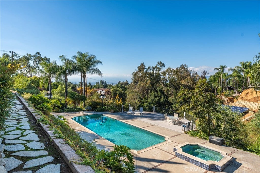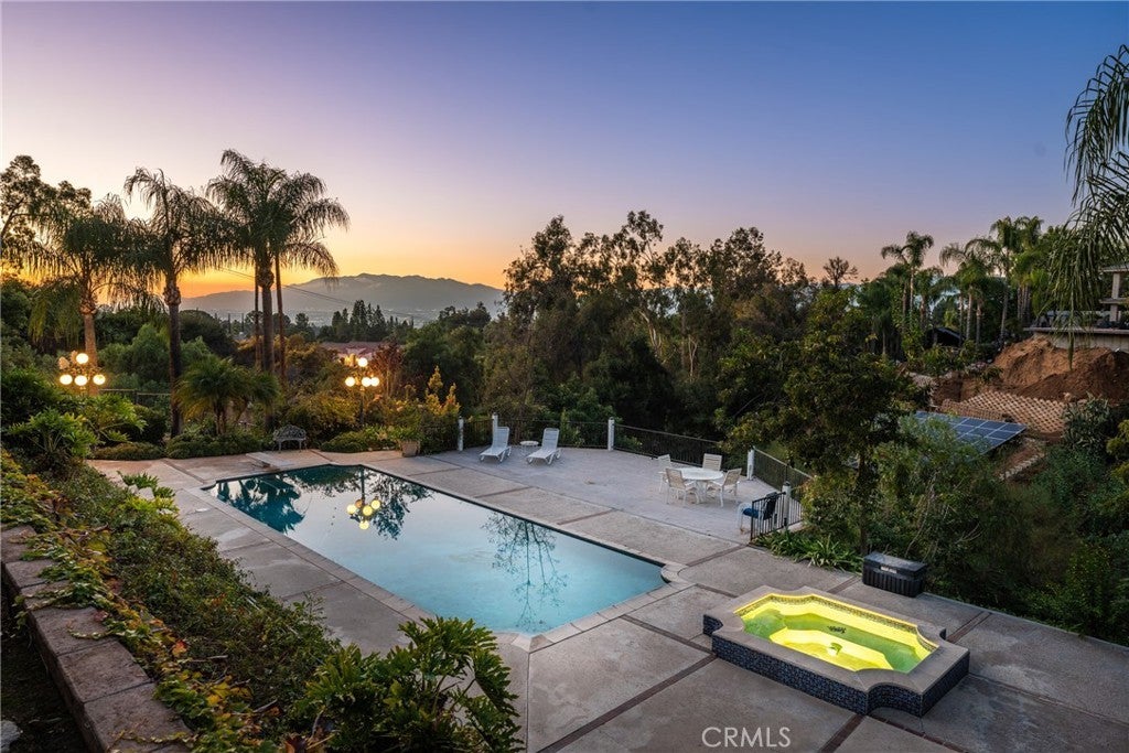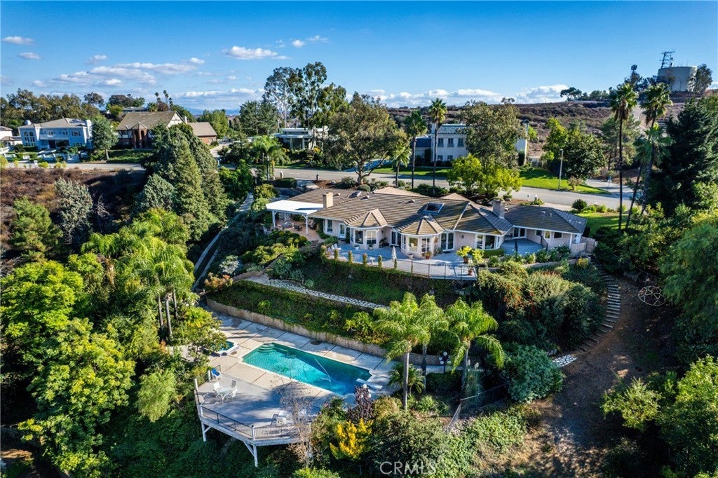 Single-Story Redlands Estate with Pool, Spa & 180° Views on 1.5 Acres. Discover one of Redlands’ most stunning homes, an expansive single-story estate on 1.47 acres with sweeping 180-degree views of sunsets, mountains, and lush greenery. Enter through a contemporary grand portico with double leaded-glass doors into a formal entry with soaring cathedral ceilings, a refurbished skylight, and picture windows that flood the home with natural light, making the elegant crystal chandeliers shimmer. Several rooms have been freshly repainted, enhancing the home’s timeless appeal. The entertainer’s floor plan flows effortlessly with open living and dining spaces, a handsome turret-style formal dining room, and a bright breakfast nook. The chef’s kitchen boasts granite counters, a large island, walk-in pantry, sliding drawers, and Sub-Zero appliances including a refrigerator and dual-zone wine cooler. The in-law floor plan features two east-wing bedrooms, while the private west-wing primary suite offers a true retreat with a fireplace, walk-in closets, ensuite spa-style bathroom, and French doors opening to a private patio with a built-in spa. Step outside to a resort-inspired backyard designed for unforgettable gatherings. Highlights include a massive Trex deck, an oversized gated pool and spa, and a sunken courtyard with gazebo—the perfect setting for outdoor dining, weddings, or private events. The grounds also feature upgraded landscaping, a circular driveway, generous RV parking with hookups, and a flourishing orchard with avocado, blood orange, grapefruit, peach, cherry, tangerine, and pomegranate trees. Located near the prestigious Redlands Country Club, with access to nearby Teddy’s Trail and Oak Ridge Trail and the top-rated Redlands Unified School District, this estate offers the ultimate blend of luxury, privacy, and convenience. A rare opportunity to own a multi-generational entertainer’s dream home in Redlands, CA.
