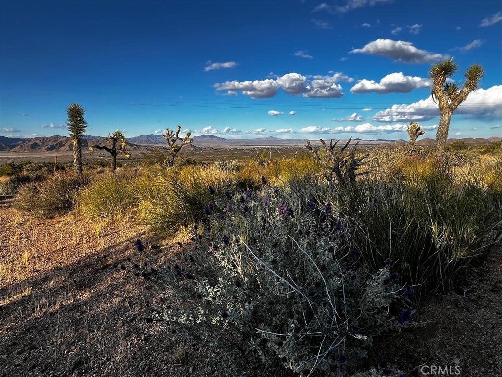 Lovely acerage overlooking Apple Valley and Lucerne Valley. Covered with beautiful shrubs and flowering bushes. Privacy abounds. Electrical power is nearby. Paved road is less than a mile from property. Ready for your home or ranch. The possibilities are endless.