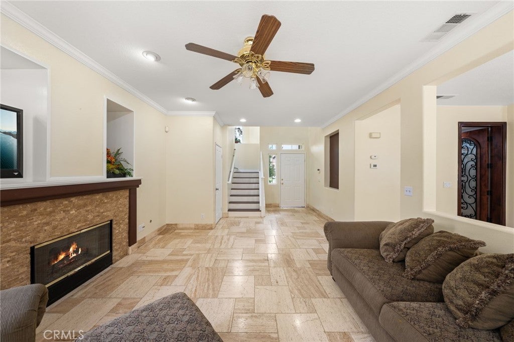 **PAID OFF SOLAR + NO HOA and a guest suite on the first floor!** Welcome to 4395 Saint Andrews, a breathtaking oasis in the vibrant heart of Chino Hills! This stunning residence has been beautifully updated and is primed for its new owner to fall in love. Spanning over 2,000 square feet, this home offers 4 spacious bedrooms and 3 elegantly remodeled bathrooms, including a full guest suite on the first floor with an ADA-compliant shower—perfect for visiting family, long-term guests, or multigenerational living. Step inside and be captivated by the open-concept great room, anchored by a cozy gas-burning fireplace and designed for both relaxation and entertaining. The brand-new remodeled kitchen is a true showstopper, featuring quartz countertops, a large stainless steel sink, sleek stainless steel appliances, and crisp white cabinetry. A generous center island provides the perfect gathering spot for family and friends. The downstairs guest suite is thoughtfully separated by a custom solid wood, glass, and iron door, leading to a private retreat with its luxurious bathroom. Upstairs, you’ll find a sprawling bonus room—ideal for game nights or movie marathons. The fully remodeled master bathroom is a spa-inspired escape, complete with a deep soaking tub, quartz-topped vanity, and spacious walk-in closet, all set beneath soaring cathedral ceilings and picturesque backyard views. Two additional bedrooms share a fully upgraded hall bath, ensuring comfort for everyone. Additional conveniences include an upstairs laundry area with a custom pull-out cabinet and a built-in workspace with desk, making this home as functional as it is stylish. With elegant stone and bamboo flooring throughout, plus plush new carpet in the bonus room, every detail has been thoughtfully curated. Outside, enjoy your newly built covered redwood patio—perfect for future relaxation with a jacuzzi—overlooking a lush backyard retreat with manicured grass, a stunning waterfall feature, and a mini forest for added privacy. And with paid-off solar, rising utility costs are no concern. Located near award-winning schools, 4395 Saint Andrews offers the perfect blend of luxury, comfort, and practicality. Don’t miss your chance to call this extraordinary property home—schedule your tour today!